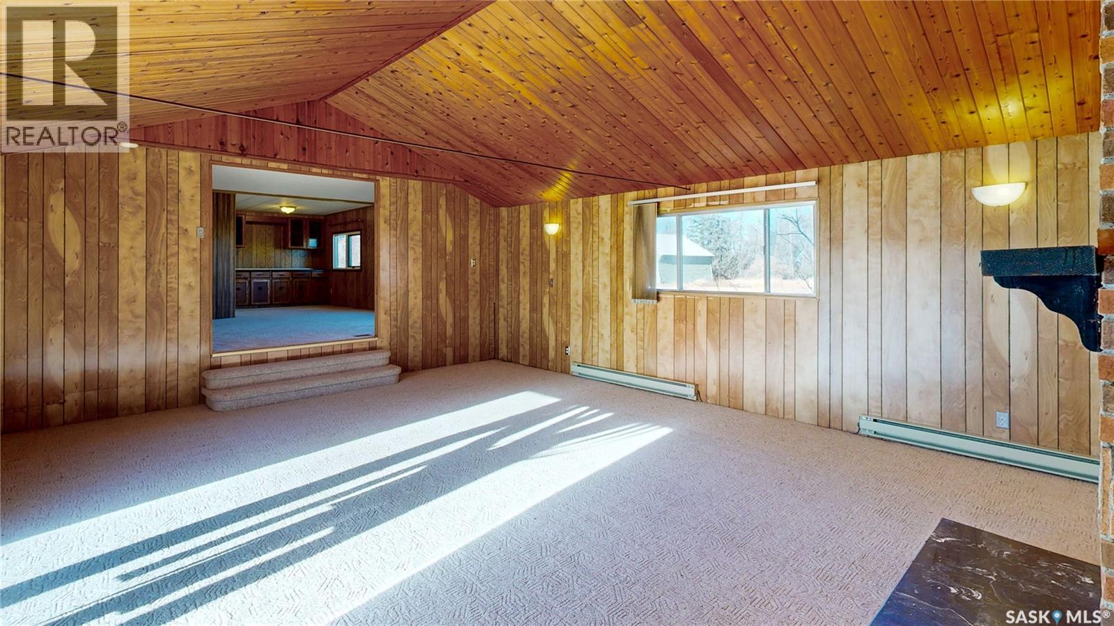 Welcome to the Lakness Acreage nestled in the picturesque Last Mountain Valley. This 1977 built double wide mobile home has both a porch and family room addition bringing its total size to 2,160 square feet. The home has 3 bedrooms, 2 bathrooms and sits on a massive 13.97 sprawling acres of land close to the town of Govan Saskatchewan. The property is well-equipped for farming, storage, and working featuring a 26 x 36 barn, a shed, a 28 x 36 heated workshop, a double attached 24 x 26 garage and a single 14 x 26 garage! You enter the home into the huge mud room with two closets for your outdoor wear, access to the garage and handy storage cabinets. This will also be your future laundry room! Down the staircase is the partial, unfinished basement that houses the owned furnace and gas water heater. The kitchen has ample room for a smaller table and chairs, an island with bar eating and the fridge, stove and dishwasher are all included. The dining room has a built-in dry bar and has space for a table that will seat the whole family! Perfect for hosting large gatherings! The family room has a large bay window overlooking the yard that fills the space with natural light. A step down is the gorgeous additional living room with high ceilings, a wood-burning brick fireplace, and sliding glass doors that lead into the yard. Next are two bedrooms and the main 4 piece bathroom. Finishing off the home is the primary suite with a walk in closet, vanity and 4 piece en suite bathroom! This home also features central air conditioning and a 100 amp electrical panel, an updated roof as well as well water and a septic pump out. (29171417)