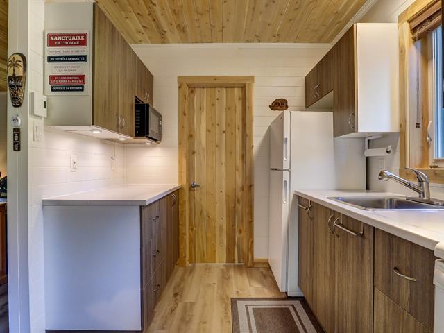 Here is your haven of peace! It is located in the Eastern Townships, in the Lac-Mégantic region. An open-concept living area includes a living room, dining room, and kitchen, with a screened-in front porch and a bathroom. Situated on a large 3.66-acre lot. Access to a municipal boat launch to the lake is conveniently located near the property. Privacy is guaranteed, with no neighbors nearby. (53978694)