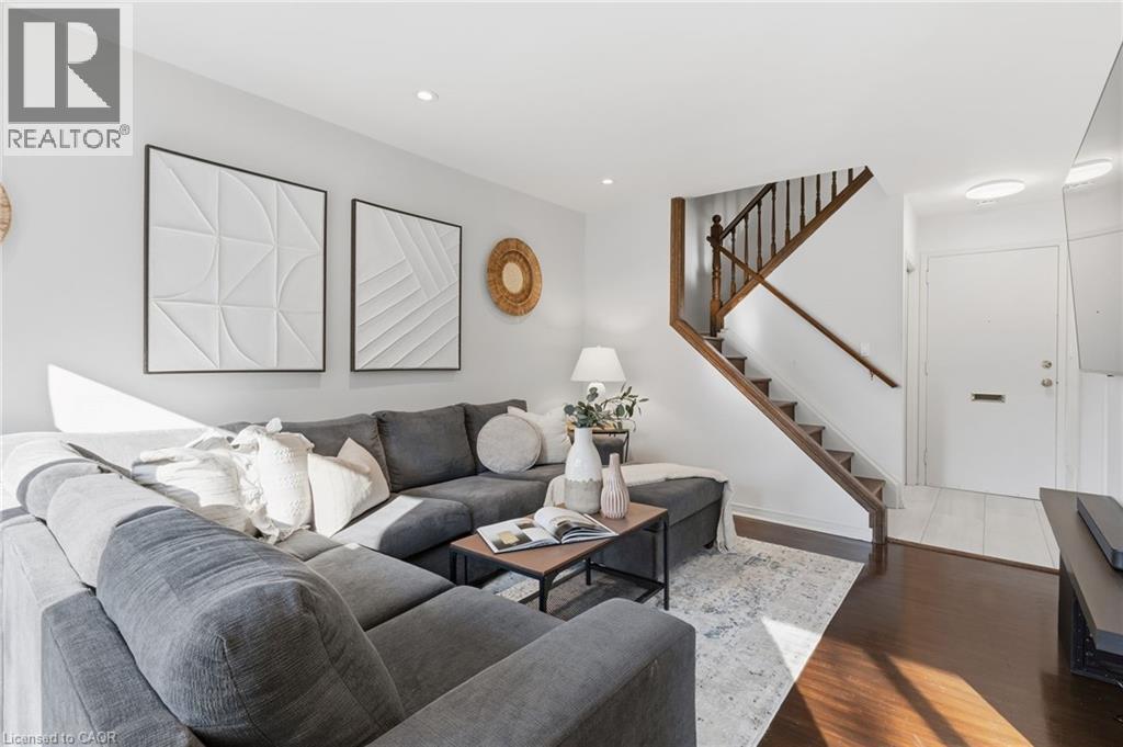 A wonderful condominium opportunity in Burlington's Mountainside neighbourhood! This 2 bedroom 2 storey townhome provides numerous functional living spaces. The kitchen has ample cabinetry & storage and features a stainless steel gas range. Hardwood throughout both levels and newly added pot-lights compliment the natural light offered by the private walkout to a fenced-in yard. A generously sized 3 piece bathroom & in-suite laundry are right off the bedrooms on the upper level. 2 exclusive use parking spaces, visitor parking, and the year round property upkeep offers a low maintenance lifestyle for families, first time buyers, and investors alike. Steps to shopping centres & public transit, or just minutes to major highway access, GO transit, and Downtown Burlington. (69938204)