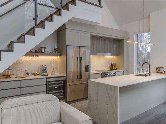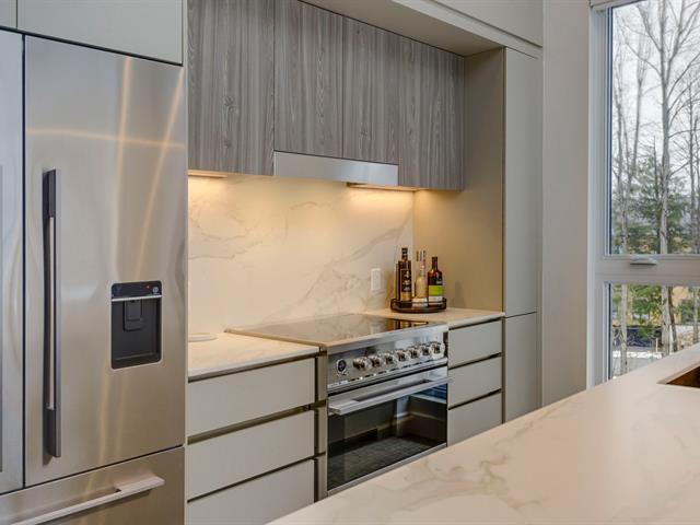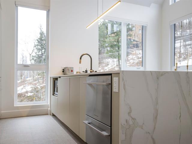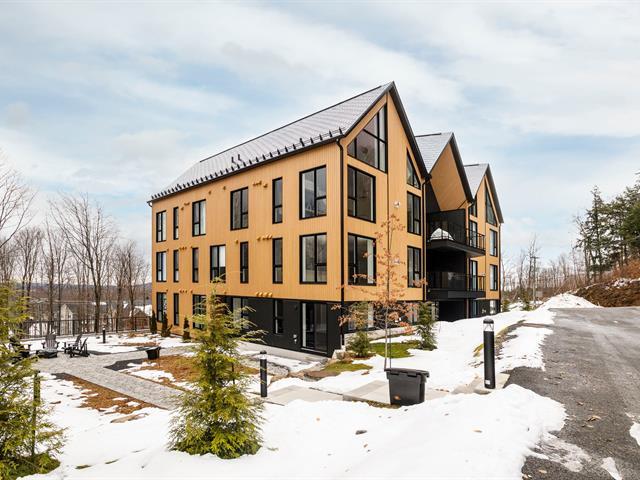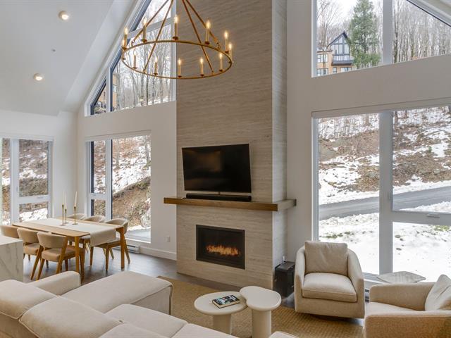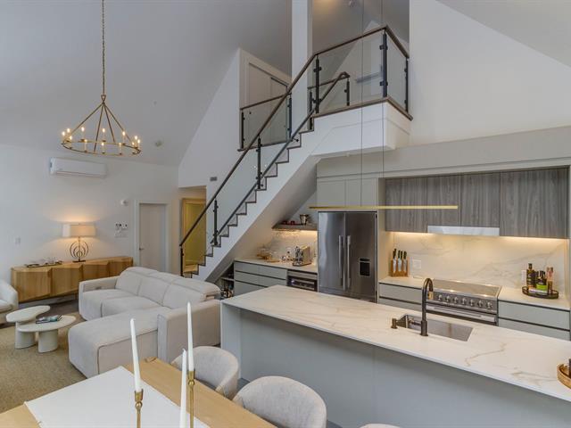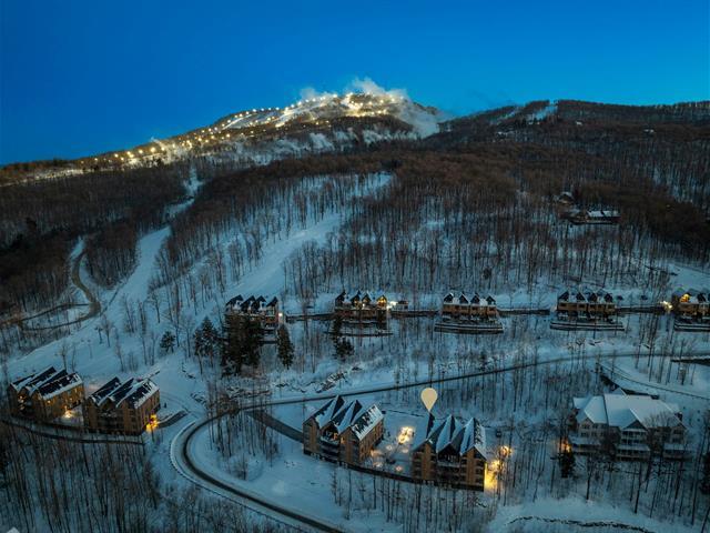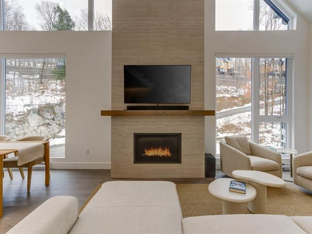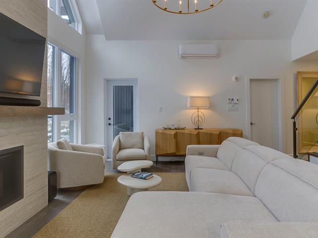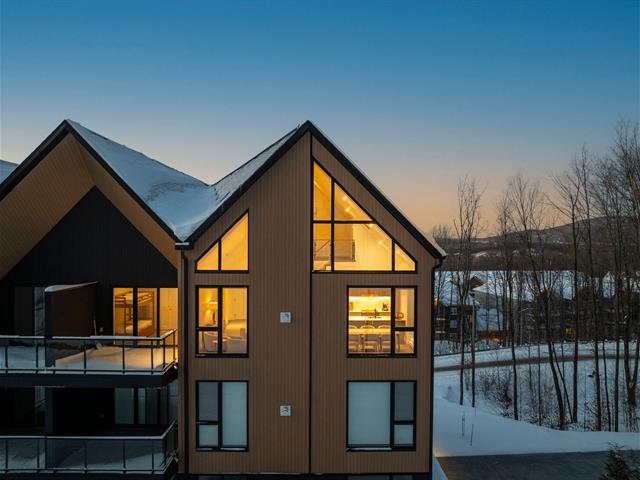 SKI-IN/SKI-OUT in Bromont in the coveted Arborescence project. Discover this magnificent penthouse offering elegant and refined Scandinavian architecture. The turnkey interior has benefited from several improvements and additions since its construction, such as floor coverings, a superb Dekton fireplace, and built-in furniture. Three bedrooms and two bathrooms, kitchen with appliances included. In addition, you will enjoy two garages and two storage spaces. Available immediately for your season. Every detail has been designed to offer a superior quality of life in the enchanting setting of the Eastern Townships. (53576037)