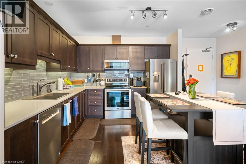 Welcome to easy, stylish living in the heart of St. Catharines! This fantastic 2-bedroom, 2-bathroom main-floor condo offers the perfect blend of comfort, convenience, and modern upgrades. Enjoy seamless indoor-outdoor living with your private walkout patio ideal for morning coffee, entertaining guests, or quick access if you have a dog! Main-floor living means no waiting for elevators perfect for carrying in groceries or stepping out with ease. Inside, you'll find a thoughtfully designed layout with spacious bedrooms, including a primary suite with a custom walk-in closet and ensuite bath. The Spacious kitchen/living room is a standout, featuring quartz countertops, a granite sink, upgraded stainless steel appliances (2022), designer backsplash, and Wi-Fi-controlled under/over cabinet lighting. Best of all, there's tons of space for a full-sized kitchen table a rare and welcome luxury in condo living. Additional highlights include engineered hardwood flooring, fresh paint throughout (2024), upgraded lighting and ceiling fans, a newer hot water tank (2024), and all blackout window coverings included. The building also features fantastic amenities. Spacious lockers, a party room and fitness centre, perfect for social gatherings and staying active without leaving home. Just steps from Montebello Park, dozens of restaurants, the Meridian and Performing Arts Centre this location can't be beat! Whether you're downsizing, investing, or buying your first home, this move-in-ready condo checks every box. Book your private showing today! (69940111)
