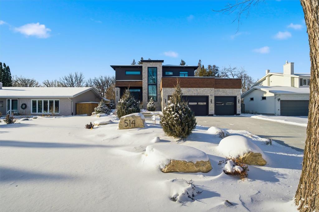 1E//Winnipeg/SHOWINGS NOW! OFFERS ANYTIME! | **PRESS LINK FOR VIRTUAL VIDEO TOUR!** | Welcome to 514 Bower in prestigious Tuxedo, a stunning 3,141 sq. ft. custom-built two-story home by KDR Homes with ZERO EXPENSES SPARED! This luxury residence features a golf simulator, fully landscaped yard, Delta-wrapped piled foundation, soaring 10 & 9 ft. ceilings, a massive 32x22 triple garage, and a wood-structural walkout basement and SO MUCH MORE. Inside, you'll find a basement bar, multiple fireplaces, custom cabinetry throughout, and so much more. Unique highlights include a see-through floor to the basement on the main level and a breathtaking open-to-above chandelier. The chef s kitchen seamlessly flows into the dining and living areas, with a butler s pantry and a gigantic mudroom for ultimate convenience. Upstairs, the primary suite boasts a spa-like ensuite, plus two additional bedrooms with walk-in closets, a kids bath, and an upper-level balcony. The walkout basement is an entertainer s dream, featuring a golf simulator, games area, rec space, bedroom, bathroom, and storage room! The peak of luxury and craftsmanship on a 75x130 lot! (231678228)