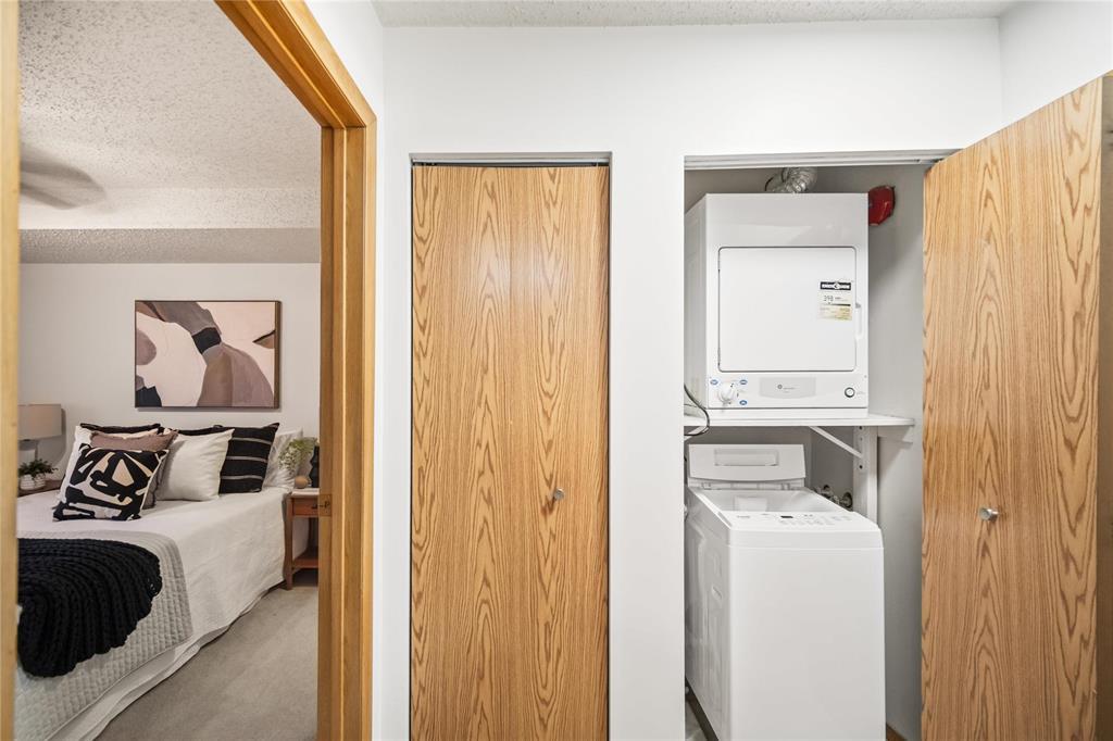 1L//Winnipeg/Top-floor living in beautiful Lake Crest Village! This bright and freshly painted 2-bedroom condo offers exceptional value in the heart of Waverley Heights just minutes from the University of Manitoba, Superstore, Costco, Kenaston Common, and dozens of restaurants. Inside, the thoughtful layout features a spacious sunken living room, a separate dining room, and a generous eat-in kitchen with updated lighting throughout much of the unit. The large east-facing balcony overlooks the outdoor pool and adds a welcome outdoor extension of your living space. Both bedrooms are well-sized with excellent natural light, and the primary bedroom includes a convenient walk-in closet. A rare bonus at this price point: in-suite laundry plus a huge interior storage room ideal for pantry items, seasonal storage, or even a compact home office. Residents also enjoy access to a fitness facility, sauna, outdoor pool, ample visitor parking, and a dedicated parking stall. With reasonable condo fees and convenient access to transit and everyday amenities, this clean and move-in-ready condo offers an ideal blend of comfort, affordability, and location. Book your private viewing today! (231678804)