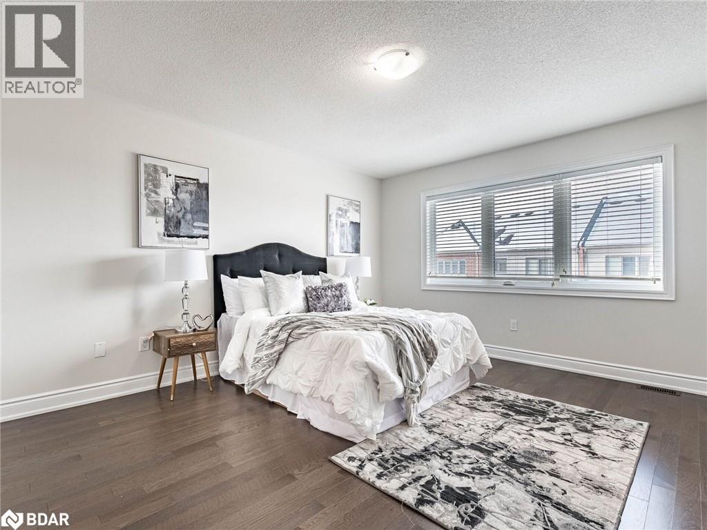 Bedroom featuring a textured ceiling and dark wood-style flooring