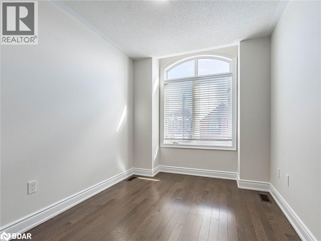 Unfurnished room with dark wood finished floors and a textured ceiling