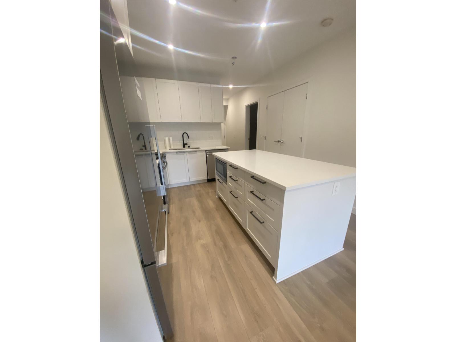 Available Feb 1, 2026 this elegant 2 bed, 2 bath condo at The Audley offers modern West Coast living with a smart and efficient layout, 9 ft ceilings, and SE-facing courtyard views backing onto a peaceful greenbelt near a ravine. The primary bedroom includes a large walk-in closet and a spa-inspired ensuite with double sinks and a frameless glass shower, while the chef's kitchen features stainless steel fridge, 5-burner gas range, quartz countertops and a freestanding island. Amenities including a fitness centre/yoga room/library/meeting room/guest suite/workshop/dog wash station/bike storage and more.Conveniently located in a growing community near the future SkyTrain station, Pet negotiable and tenant insurance is required. One parking,no storage. Contact today for more information. (32220968)