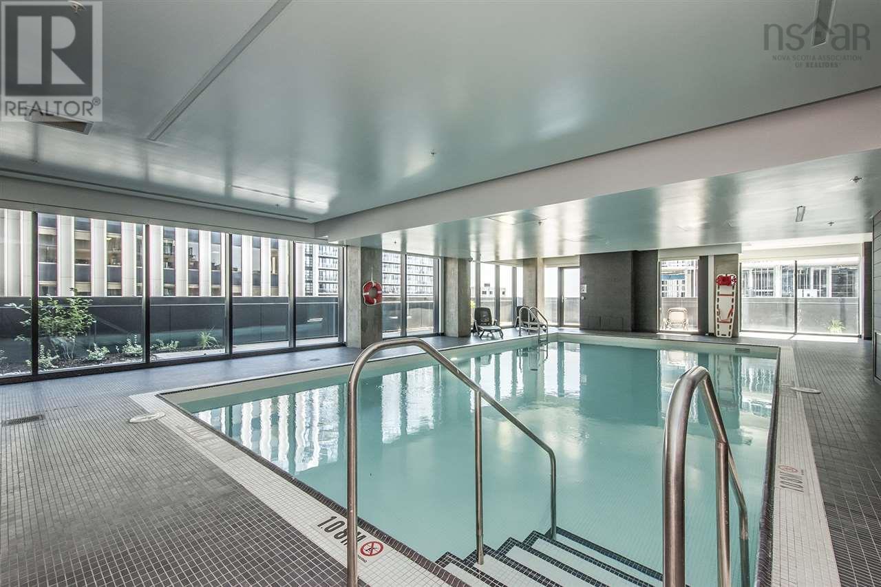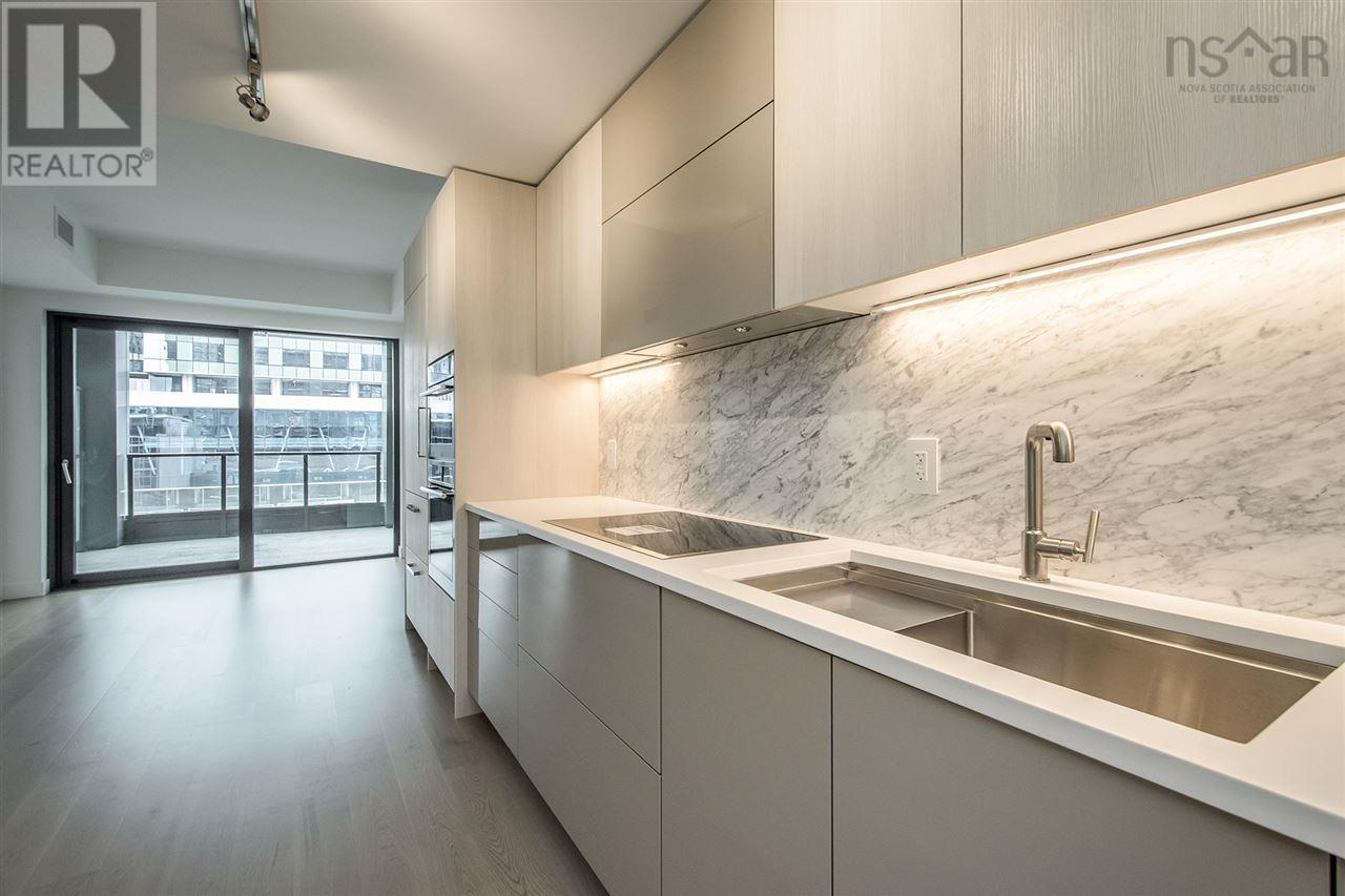 Welcome to The Roy in downtown Halifax! This 580+ square foot one bedroom features in unit laundry, 4 pc bath, built in kitchen appliances and cooktop, engineered hardwood flooring and a private 100 sq ft balcony. Just steps to Halifax harbour front and short walk to all the amenities the city has to offer with the best of restaurants, culture, shopping and entertainment venues. THE ROYs indoor and outdoor amenity spaces span the 8th floor. You can lounge by the rooftop fireplace, swim laps in the pool, or unwind with a relaxing sauna or steam. Wellness suites and modern fitness facilities provide access to a healthy lifestyle, while the theatre and entertainment rooms can be reserved for your exclusive use. This unit is ideal for young professional. (231678834)