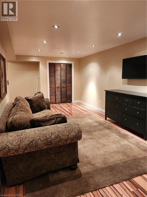 Living room featuring light wood-style floors and recessed lighting
