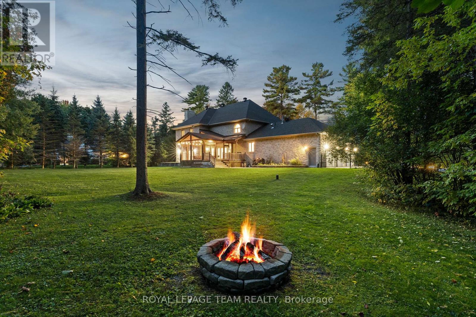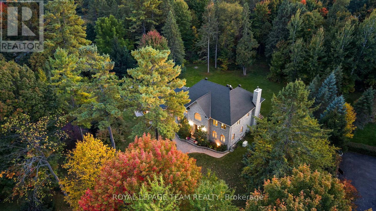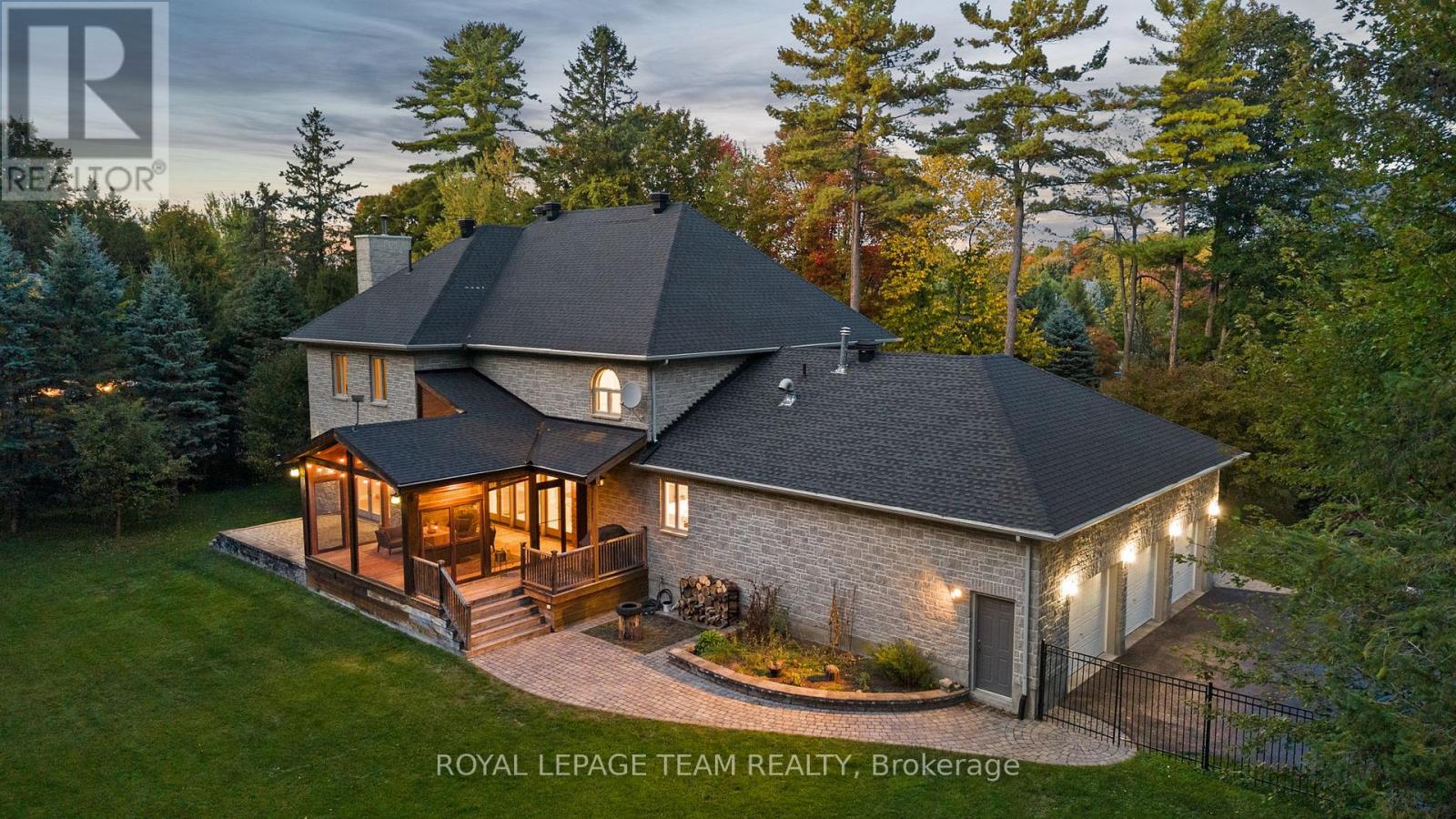 Set on a winding drive and surrounded by mature trees, this full-stone executive residence offers both presence and privacy in a truly natural setting. Built in 2000, the 2-storey design blends timeless elegance with thoughtful updates across approximately 4,100 sq ft above grade (MPAC), set on 2.47 acres. A grand double-door entry opens to a tiled foyer and freshly painted interiors, where 9 ceilings, refinished hardwood flooring, and California shutters create a warm welcome. Formal living and dining rooms provide ideal spaces for entertaining, while the sunken family room with pillars and wood-burning fireplace is perfect for everyday gatherings. The 2024 Deslaurier kitchen is a true highlight: Sub-Zero/Wolf appliances (fridge, induction stove, microwave, wine fridge), custom cabinetry, quartz counters, large island with seating for 6, prep sink, pot lights, and undercabinet lighting. French doors lead to a screened porch with vaulted ceiling - a year-round favourite. Upstairs, hardwood flooring continues, with a spacious primary retreat offering a gas fireplace, custom walk-in cabinetry (2023), and a spa ensuite with soaker tub, dual vanities, heated floors & towel rack. The updated main bath (2018) also features custom finishes, heated floors & towel rack. A mudroom with new laundry (2025) connects to the oversized 3-car garage. Lower level unfinished with painted floors (2025). Systems: Generac 20kW generator (2021), tankless HWT owned (2023), AC (2022), 200 amp, Starlink internet, security cameras. Roof (2018), garage roof (2016), 12 windows replaced (2019-2020), driveway (2021, resealed 2025). Landscaped lot includes fenced yard with natural backdrop beyond. All this just 10 min to Tanger Outlets & 9 min to Kanatas High Tech hub -convenience meets country charm. 24 Hours Irrevocable preferred on all offers. Some images are virtually staged. (41740212)