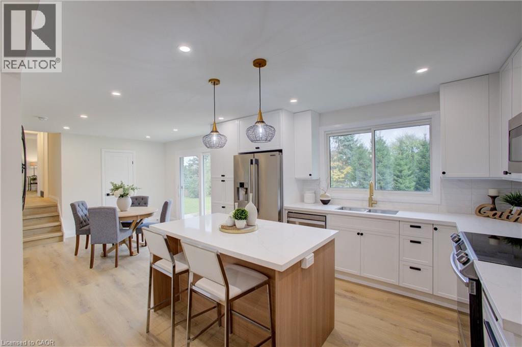 Charming Move in Ready Side Split on a Private Court in Heidelberg Nestled on a quiet court in Heidelberg, this beautifully extensively renovated side split sits on a stunning property lined by evergreens and within view of a farmer’s field — offering rare privacy and peaceful country charm, yet all the town amenities. Perfect size home, the setting, yard, and location make it truly special. Inside, you’re welcomed by a bright and inviting living room, perfect for entertaining family and friends. The central kitchen features modern updates and adjoins a comfortable dining area. Upstairs, you’ll find three spacious bedrooms and a stylishly updated family washroom. The lower level adds versatility with a fourth bedroom or den with look-out windows, a nice size family room, and a convenient 4-piece bath. The basement level provides even more space — ideal for a games room, home gym, or media theatre area, with electrical already in place for a projection screen. Step outside to enjoy the deck and expansive backyard — a blank canvas for your garden, play area, pool or future outdoor retreat. A full double garage with access to the rear yard completes this charming property. Renovations in (2024 and 2025) include, upgraded insulation, windows, and doors, concrete walk-way and drive way, roof shingles, washrooms, kitchen, lighting, hardware, doors and trim, flooring, paint, electrical panel, sump-pump, landscaping, and so much more. Move in ready. Properties like this rarely come available in this sought-after community. Just minutes from St. Jacobs Farmers’ Market and North Waterloo, this home offers the perfect blend of small-town charm, privacy, and convenience.* 3photos are virtually staged photos. (69941778)