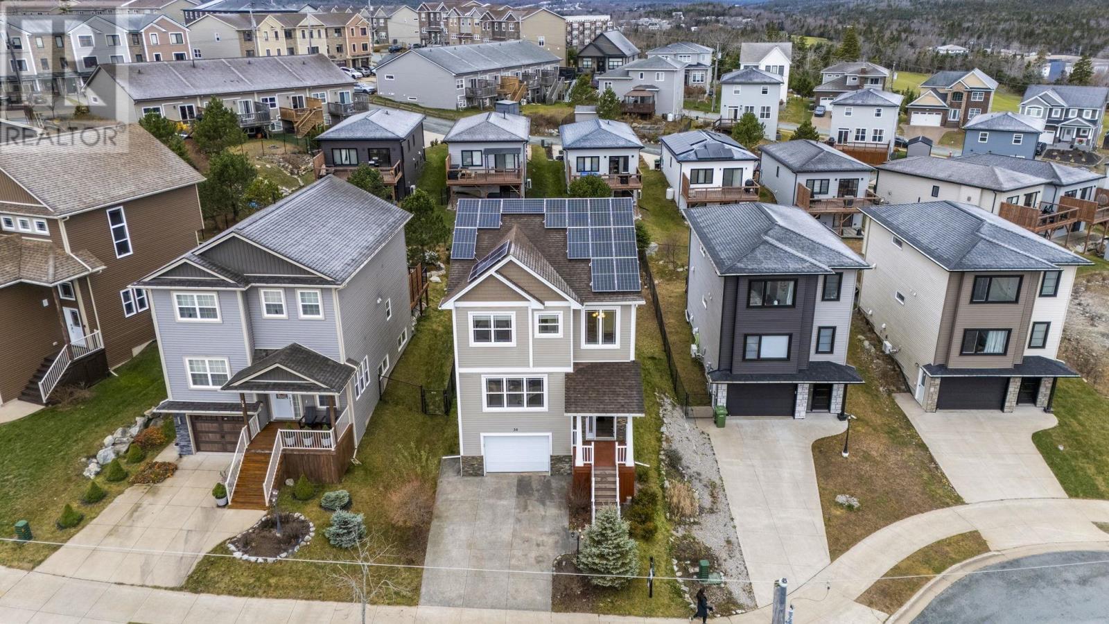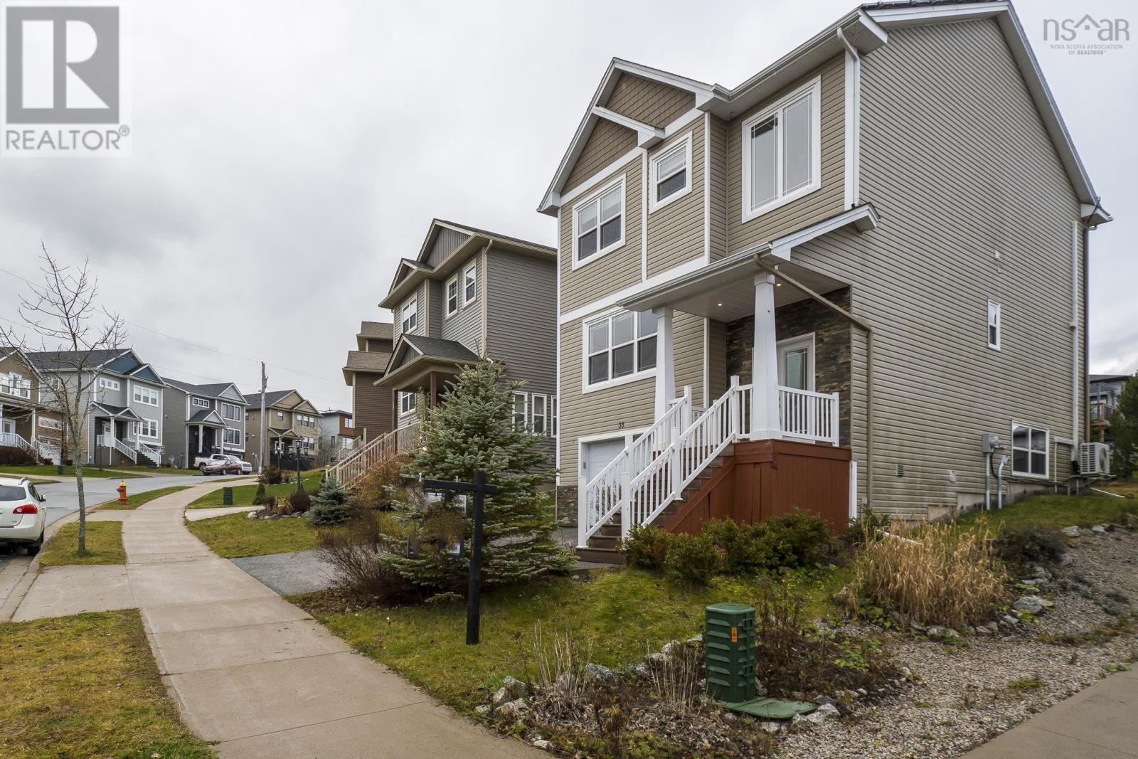 Settle Into Sienna: A Storybook Home in Timberleas Finest Cul-de-Sac Welcome to Brunello Estates a vibrant lifestyle community in Timberlea featuring an 18-hole championship golf course, club and spa, community center, and more. Just 15 minutes from downtown Halifax, this neighborhood blends nature, recreation, and convenience in perfect harmony. Tucked away on a quiet cul-de-sac, this beautifully crafted, fully finished 2-storey family home offers space, style, and serenity. Set on a landscaped lot with gorgeous views, its the kind of place where kids ride bikes until sunset and neighbors become lifelong friends. Step inside to a bright, open-concept main level featuring a spacious great room, modern kitchen with breakfast bar, cozy living room, family room, and a convenient half bath ideal for everyday living and weekend entertaining. Up the hardwood staircase, youll find a luxurious primary suite with a spa-inspired ensuite, two additional large bedrooms, and a full 4-piece bath. The upper and main levels feature hardwood and ceramic flooring, while the lower level offers laminate and ceramic finishes for durability and comfort. The finished basement includes a large recreation room, fourth bedroom, full bath, and access to the attached 1.5 garage perfect for storage, hobbies, or a home gym. A three-headed ductless heat pump ensures energy-efficient heating and cooling year-round. The solar panels will help cut your energy costs. Close to schools, shopping, trails, recreation, and transit, this home offers unbeatable value in one of Timberleas most sought-after communities. This is more than a house its a place to grow, gather, and create lasting memories. Put this storybook home on the top of your list. (231679996)