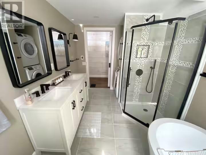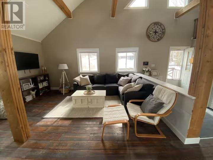 Experience the pinnacle of waterfront living with this recently remodeled, one-of-a-kind residence, set on nearly an acre of pristine land with its own private beach and unobstructed lake views. Designed with a sophisticated nautical influence, this remarkable home offers the option to be purchased fully furnished—creating a seamless, turnkey opportunity. The open-concept main floor impresses with Norwegian pine floors, dramatic 25-foot vaulted ceilings with exposed beams, and a statement wood stove, creating a striking yet inviting atmosphere. A thoughtfully designed children’s suite features its own loft hideaway, while a second main floor bedroom features double closets and tranquil lake views. The spa-inspired bathroom elevates daily living with a double vanity, heated floors, walk-in shower, and deep soaker tub. Ascend to the private master loft retreat, where an elegantly updated ensuite complements a serene balcony overlooking the quiet bay. The lower level, with a convenient walkout, provides a blank canvas for additional living space, a wellness studio, or an entertainment haven. Modern comforts include propane forced-air heating, a newer septic system, and advanced water filtration. Outdoors, enjoy ample parking, along with a detached garage featuring upper storage. Turnkey, exclusive, and only 10 minutes to downtown—your private lakeside sanctuary awaits! (29405761)