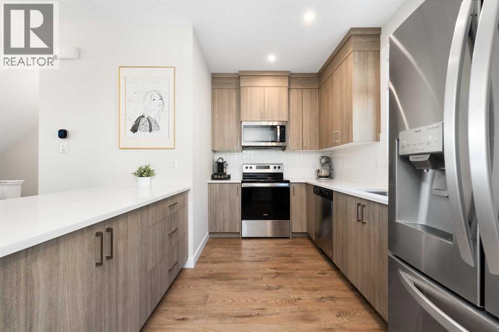 Set in the vibrant and ever-growing community of Brightside in Seton, this modern three-storey townhome delivers an appealing blend of comfort, practicality, and elevated design. Thoughtfully planned and exceptionally maintained, it offers 1,182 square feet of well-used living space, ideal for anyone seeking a contemporary home with smart upgrades throughout. A generous front flex room welcomes you inside—perfect as a home office, fitness nook, or creative studio. From here, direct access to the oversized single attached garage makes day-to-day living incredibly convenient, offering excellent storage options and protection from the elements. Up on the main floor, natural light pours into a bright and open layout. The spacious living room provides a relaxed setting for movie nights and casual entertaining, while the adjacent kitchen is a true standout. Full-height cabinetry, granite countertops, stainless steel appliances, and a well-planned layout make it both stylish and highly functional. A natural gas line on the balcony off the dining area allows for effortless year-round grilling. Hunter Douglas blinds add a refined finishing touch, providing both privacy and a polished look. The top floor is dedicated to two inviting bedrooms, each offering its own ensuite—an incredible feature that enhances comfort, privacy, and versatility for roommates, guests, or small families. The primary suite feels especially welcoming, while the second bedroom mirrors the convenience with its own private bath. An additional half bath on the main level adds to the overall ease of daily life. Comfort is further elevated with central air conditioning for warm summer days, ensuring the home stays cool and enjoyable throughout the season.Outside your door, Seton offers the best of modern suburban living—restaurants, shopping, the YMCA, the South Health Campus, greenspaces, and quick routes around the city. It’s a neighborhood designed for connection and convenience, matching perfectly wi th the thoughtful design of this townhome. With upgraded finishes, two ensuites, a versatile main-floor flex space, and a layout that makes the most of every square foot, this home delivers an effortless blend of style and livability, ready for its next owner to move in and enjoy. (31426296)