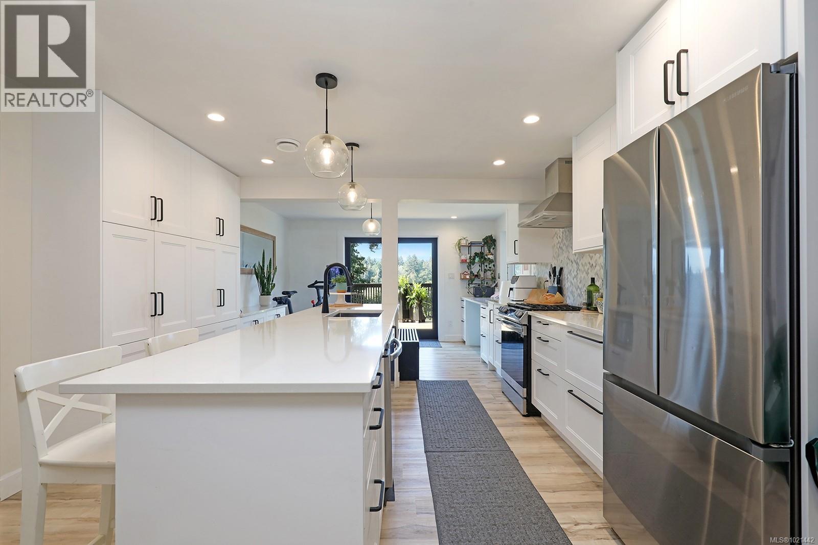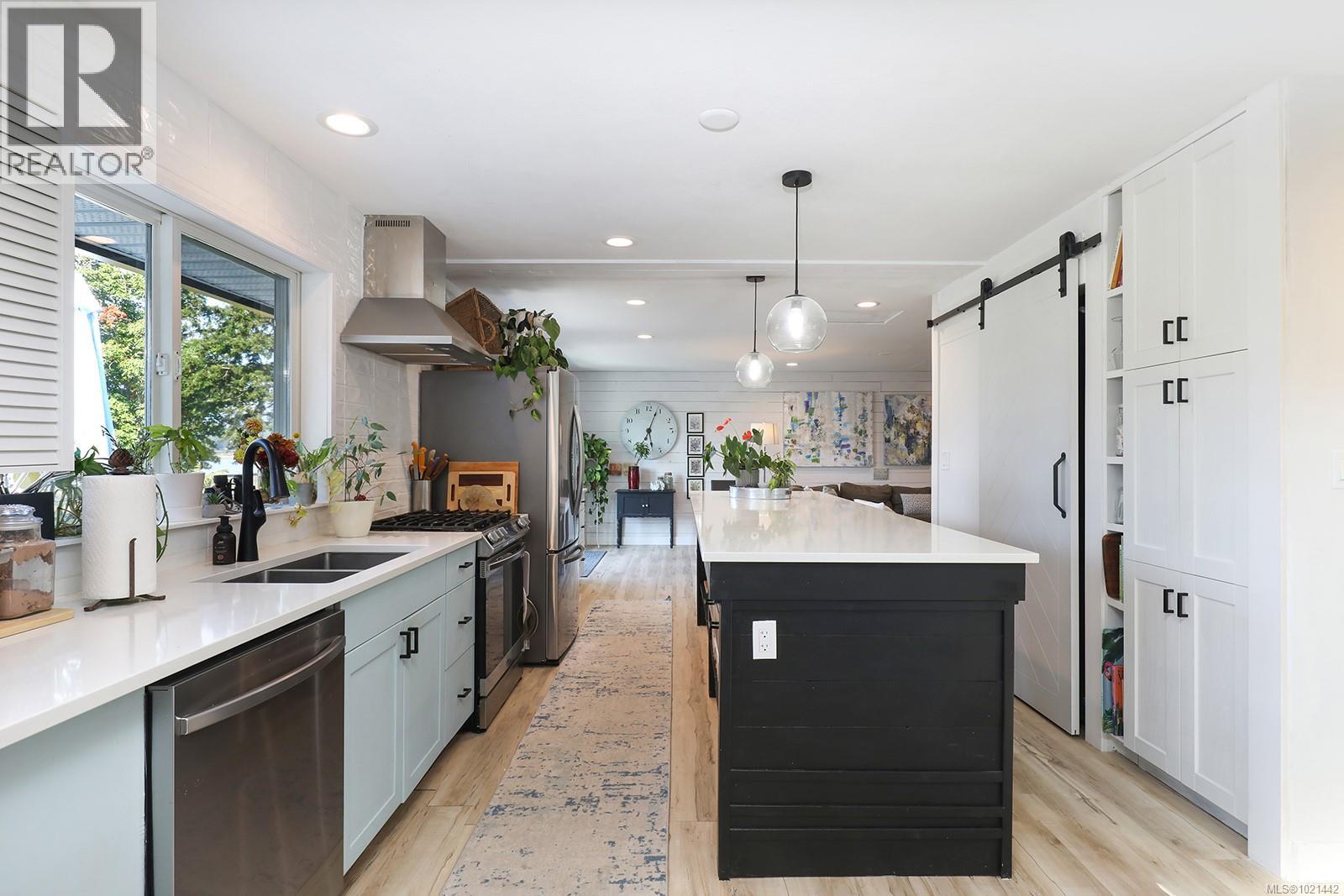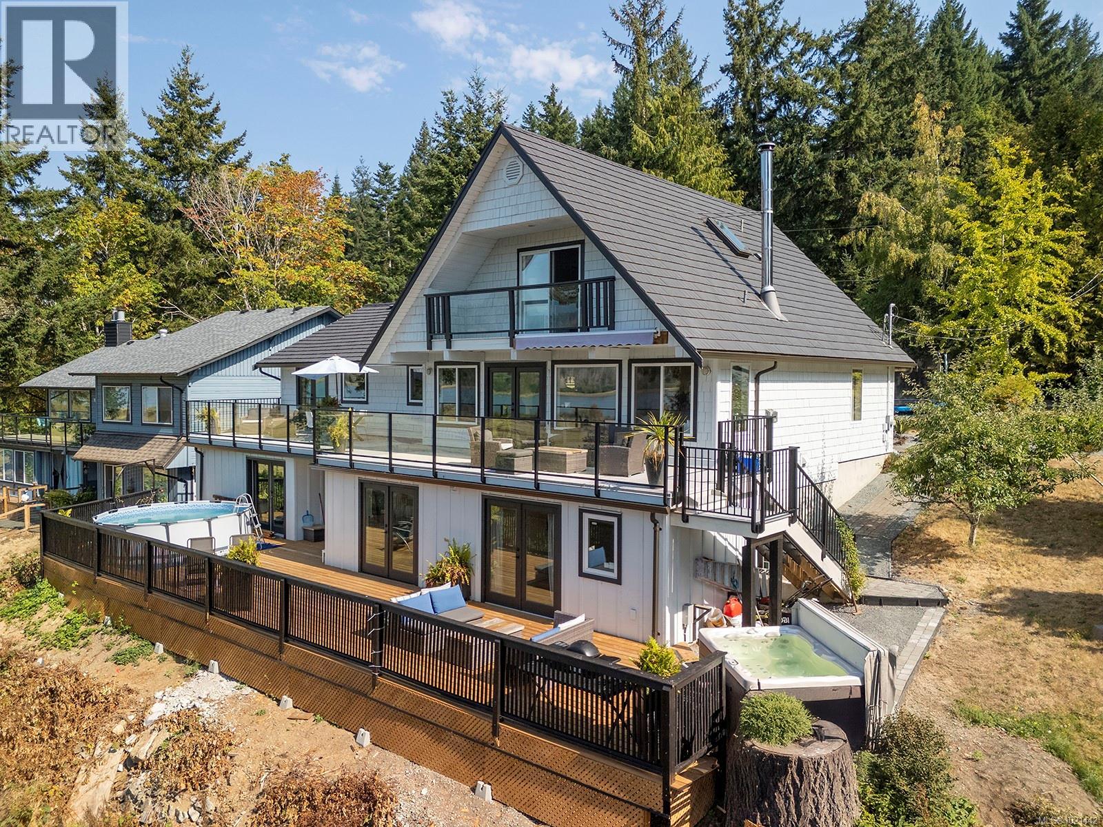 Stunningly renovated spacious, 3-bedroom +1-bedroom in-law suite home sitting on a serene 0.32 acre lot,showcasing ocean & mountain views in desirable oceanside community of Ships Point.The custom kitchen shines with a huge quartz island,pantry, new s/s appliances incl. gas range, custom hood fan,& added built-ins. Large windows invite natural light & capture sweeping vistas, while the open-concept living area creates a warm & inviting space for family & guests Patio doors, lighting, windows, barn doors, are all new, 2023 heat pump. The suite boasts a new enlarged kitchen, bathroom, fireplace, deck, flooring, & all appliances. Exterior upgrades include new hardi board & batten siding, powder-coated aluminum/glass rail system, gutters, awning, workshop, & expansive balconies and decks. Relax in the hot tub —embrace West Coast living with a short walk to nearby beaches, scenic walking trails & endless outdoor adventures. (30174784)