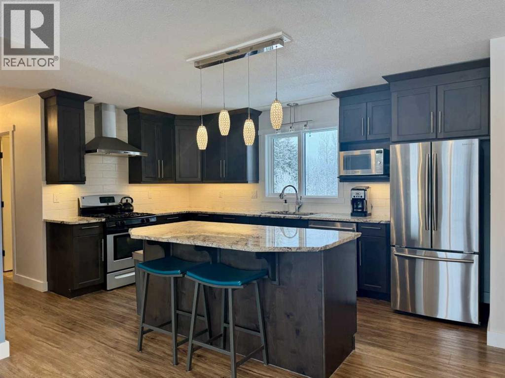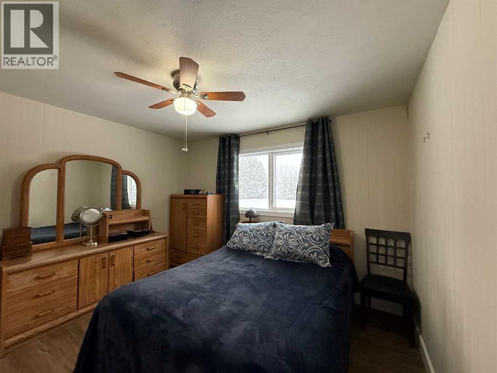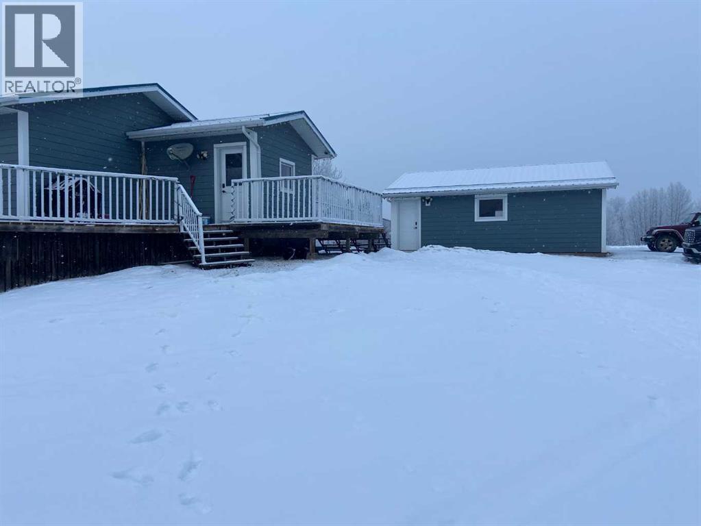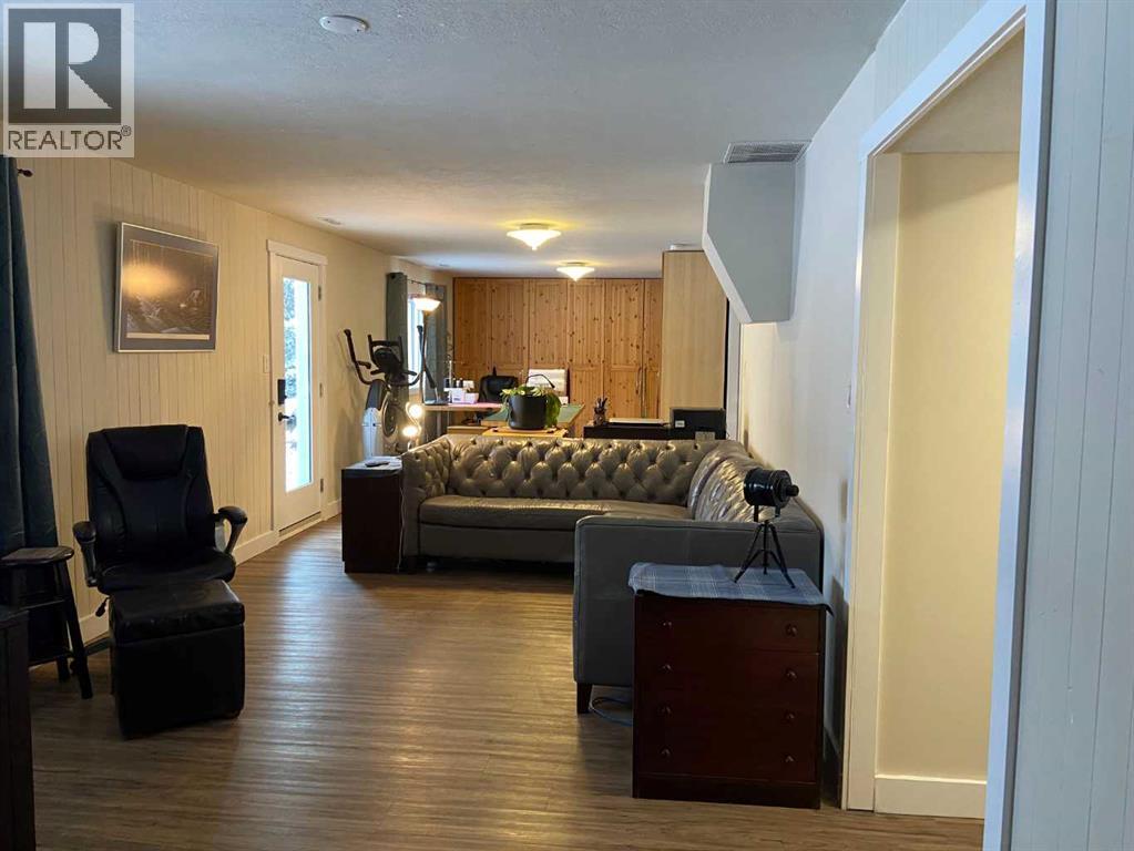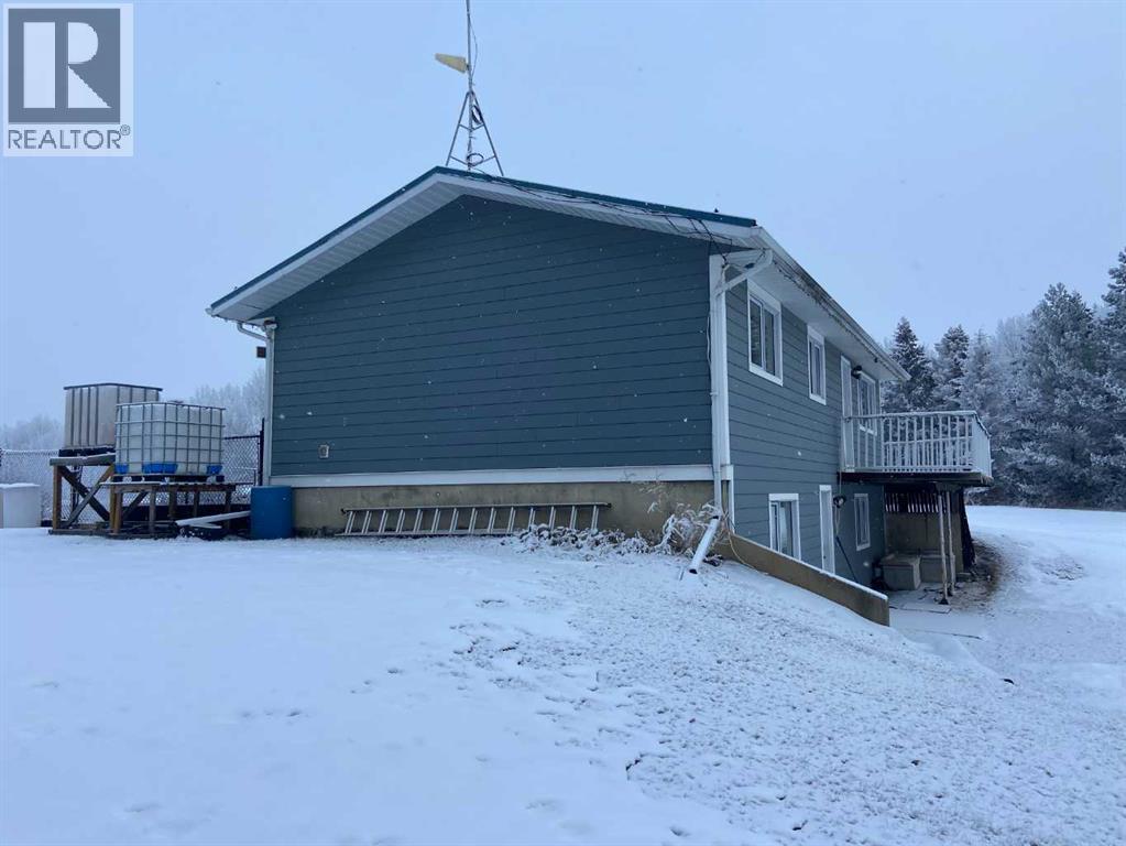Beautifully maintained home on 4.7 acres with a fully finished walk-out basement. Renovated main level features an open layout, updated kitchen with custom soft-close cabinets, granite counters, modern lighting, and luxury vinyl plank flooring. Three bedrooms and a full bathroom on the main floor.The walk-out basement adds a family room, fourth bedroom, second bathroom, and extensive custom storage as well as a cold storage room. This home is move-in ready.Low-maintenance exterior with metal roof, cement board siding, and hardwired LED color-changing lights. Furnace and on-demand hot water replaced in 2019. Detached 26' x 24' garage with power and concrete floor.Fenced backyard with raised garden beds, plus a cleared area overlooking a creek—ideal for a future fire pit. Quad directly from the property into crown land. Two wells on site; main bath wired for bidet/heated seat.Move-in ready acreage with modern updates and excellent outdoor access. (31428077)