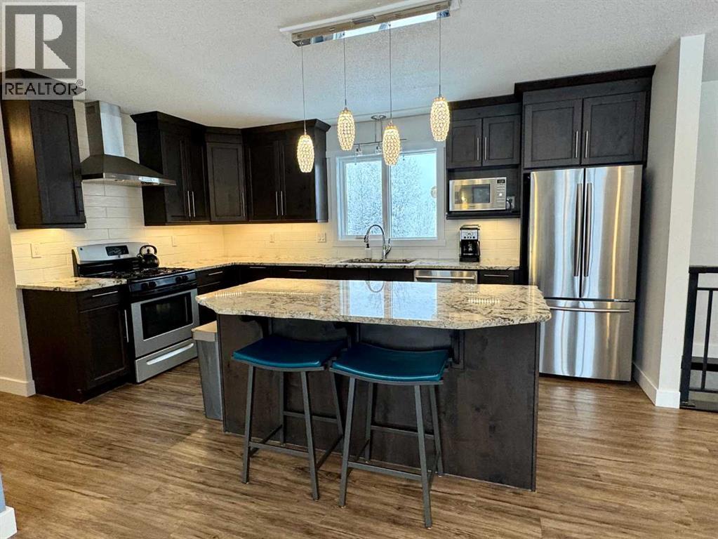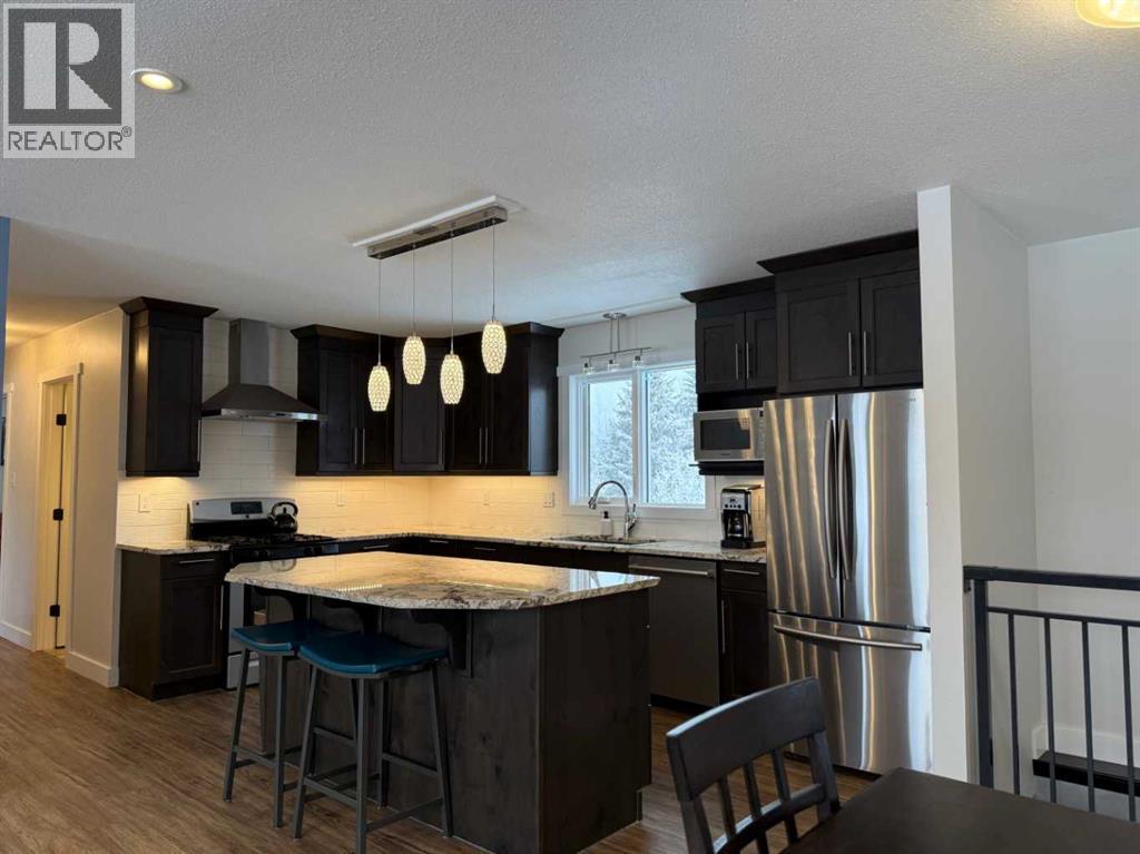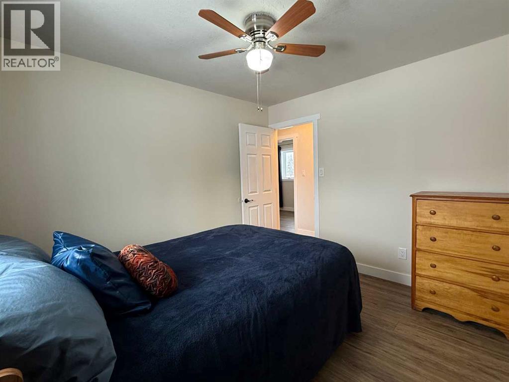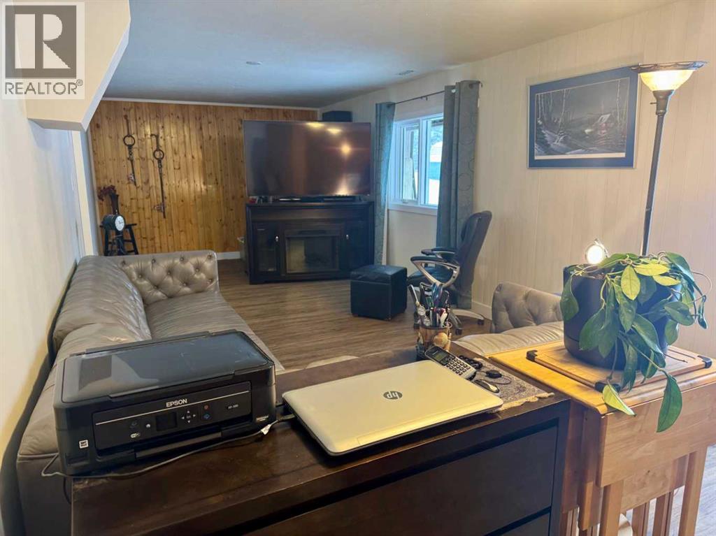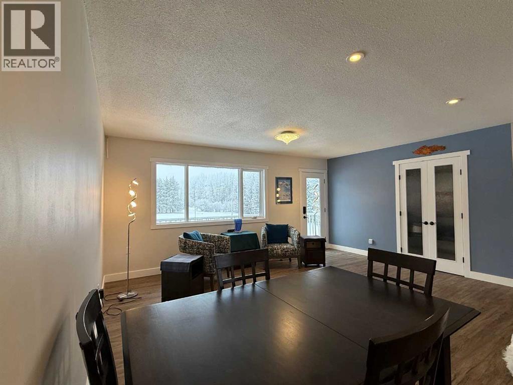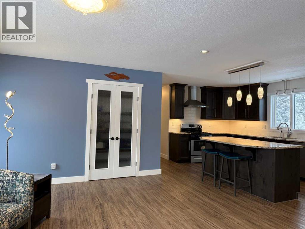 Beautifully maintained home on 4.7 acres with a fully finished walk-out basement. Renovated main level features an open layout, updated kitchen with custom soft-close cabinets, granite counters, modern lighting, and luxury vinyl plank flooring. Three bedrooms and a full bathroom on the main floor.The walk-out basement adds a family room, fourth bedroom, second bathroom, and extensive custom storage as well as a cold storage room. This home is move-in ready.Low-maintenance exterior with metal roof, cement board siding, and hardwired LED color-changing lights. Furnace and on-demand hot water replaced in 2019. Detached 26' x 24' garage with power and concrete floor.Fenced backyard with raised garden beds, plus a cleared area overlooking a creek—ideal for a future fire pit. Quad directly from the property into crown land. Two wells on site; main bath wired for bidet/heated seat.Move-in ready acreage with modern updates and excellent outdoor access. (31428077)