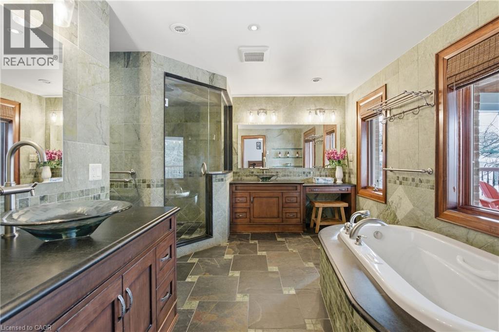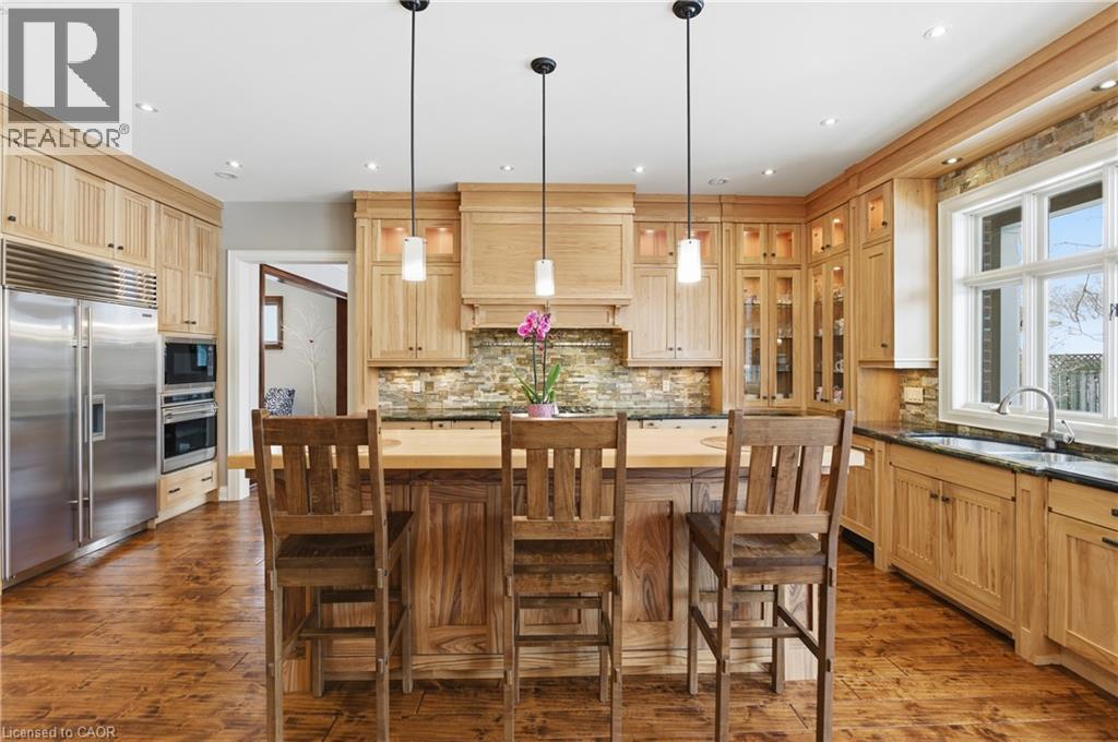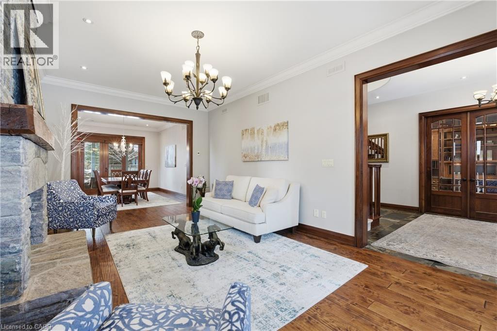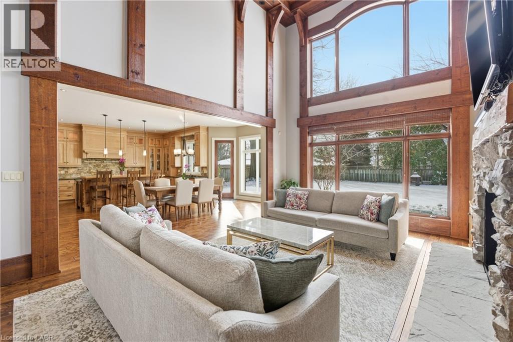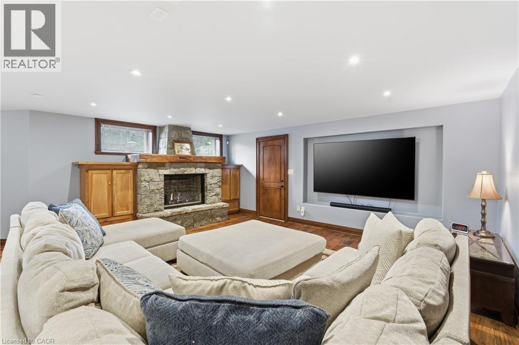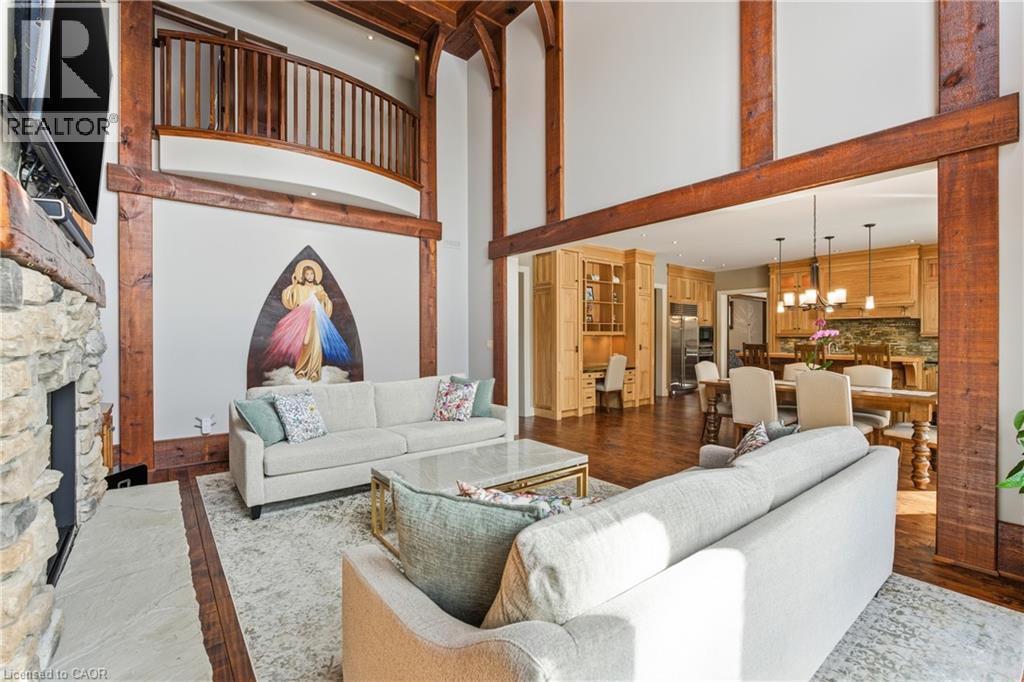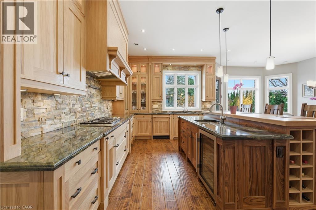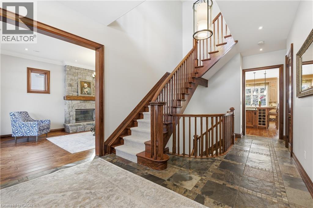 Montana lodge - inspired luxury, with 6688 sq ft of total living space, in one of South Burlington’s most coveted neighbourhoods, nestled in the desirable Tuck School District. This exceptional 4+1 bedroom, 5-bath home blends timeless elegance with modern comfort, featuring generous principal rooms, high-end finishes, and custom millwork throughout. The main level offers 10 ft ceilings, a grand great room with coffered ceiling and fireplace, formal dining room, living room, breakfast nook, private office, and a gourmet chef’s kitchen with premium appliances. A spacious mudroom with garage and side-entrance access completes this level. Upstairs, the primary retreat includes a fireplace, spa-inspired ensuite, walk-in closet, and private balcony. Three additional bedrooms with ensuite access and a second-floor laundry room provide ideal family convenience. The lower level features a separate entrance, a full in-law suite, a stylish rec room with fireplace, sauna, and a wet bar/additional kitchen—perfect for extended family or elevated entertaining. Situated on an impressive 75' x 150' south-exposed, professionally landscaped lot, and just minutes to parks, the lake, and Appleby GO, this home delivers the very best of Burlington luxury living. (69946707)
