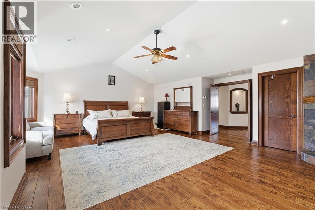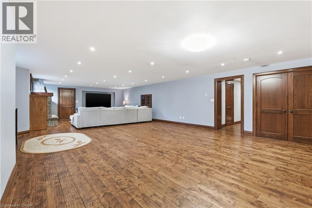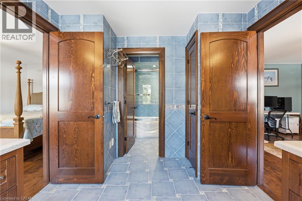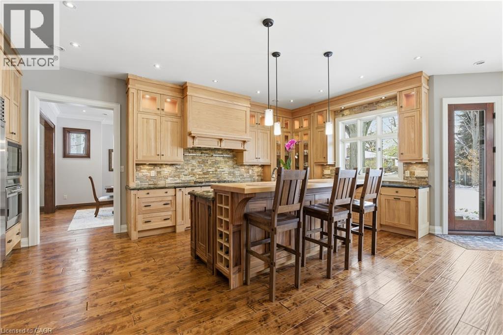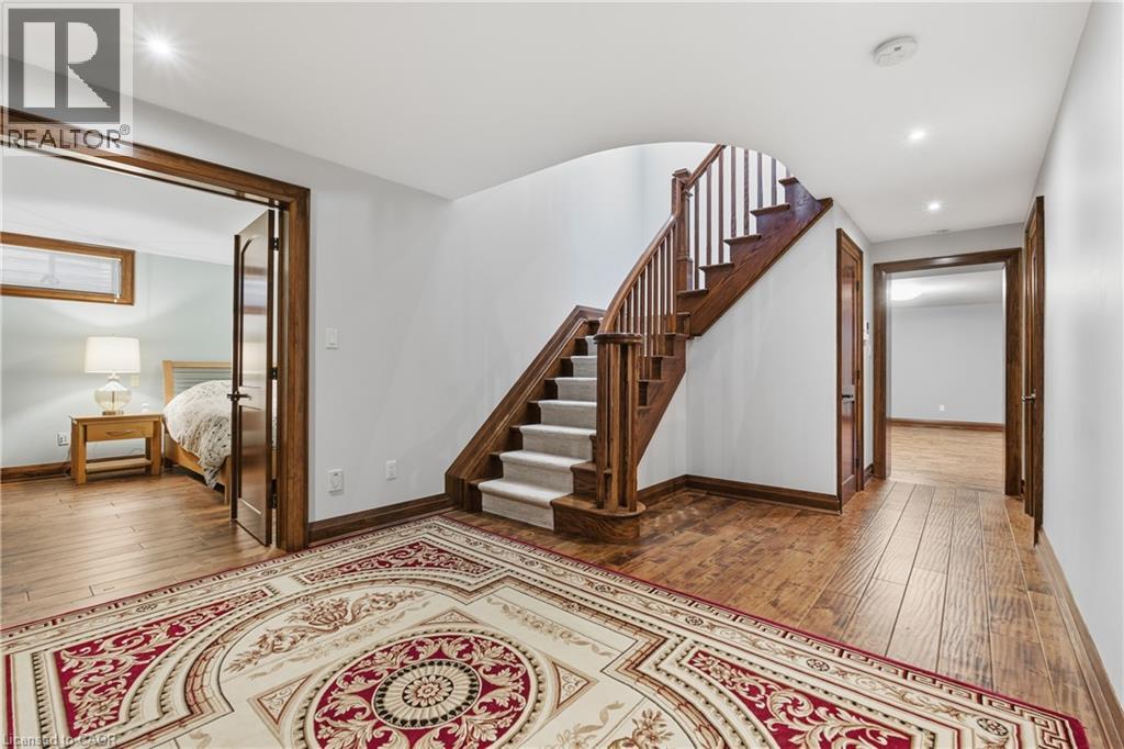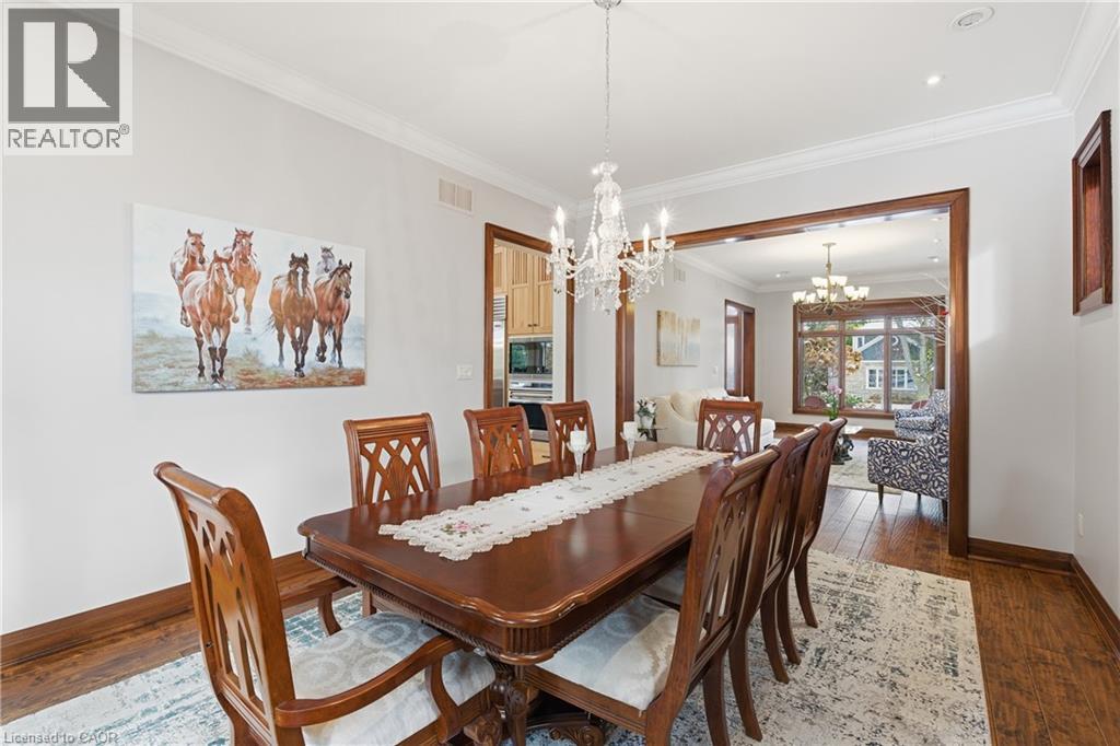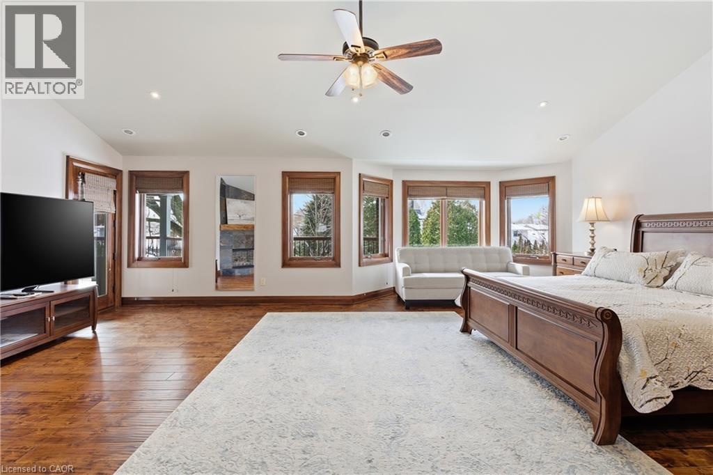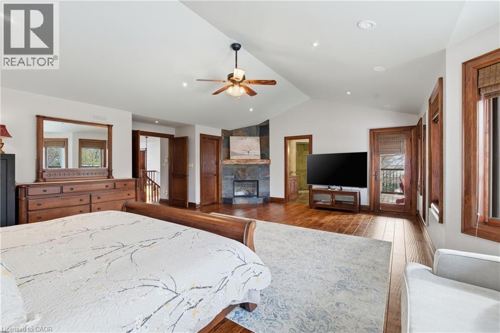 Montana lodge - inspired luxury, with 6688 sq ft of total living space, in one of South Burlington’s most coveted neighbourhoods, nestled in the desirable Tuck School District. This exceptional 4+1 bedroom, 5-bath home blends timeless elegance with modern comfort, featuring generous principal rooms, high-end finishes, and custom millwork throughout. The main level offers 10 ft ceilings, a grand great room with coffered ceiling and fireplace, formal dining room, living room, breakfast nook, private office, and a gourmet chef’s kitchen with premium appliances. A spacious mudroom with garage and side-entrance access completes this level. Upstairs, the primary retreat includes a fireplace, spa-inspired ensuite, walk-in closet, and private balcony. Three additional bedrooms with ensuite access and a second-floor laundry room provide ideal family convenience. The lower level features a separate entrance, a full in-law suite, a stylish rec room with fireplace, sauna, and a wet bar/additional kitchen—perfect for extended family or elevated entertaining. Situated on an impressive 75' x 150' south-exposed, professionally landscaped lot, and just minutes to parks, the lake, and Appleby GO, this home delivers the very best of Burlington luxury living. (69946707)