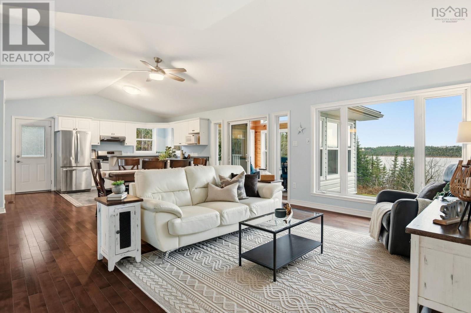 Tucked at the end of a quiet cul-de-sac and just minutes from Lawrencetown Beach and the Atlantic Trail, this private property offers the serenity of 221 feet of lake front living. Step inside to an inviting open concept kitchen, dining, and living area filled with natural light, complemented by a beautiful four season sunroom with tranquil lake views. The upper level features three comfortable bedrooms, including a spacious primary suite with a walk-in closet and direct access to the main bath. The walkout lower level provides exceptional flexibility, offering a large additional bedroom, family room, bathroom, laundry area, and ample storage. Outside, the property is enhanced with thoughtful upgrades, including a durable steel roof, paved driveway, and a drilled-and-epoxied four-season dockperfect for year-round enjoyment. Even the Chicken Mansion has been fortified to handle all weather with ease. This property is the ONLY property on the lake that has the ability to leave your Seadoo or boat in the water thanks to the four-season dock. Whether you're unwinding by the water or heading to the waves, this home delivers the ultimate coastal lifestyle. (231683943)
