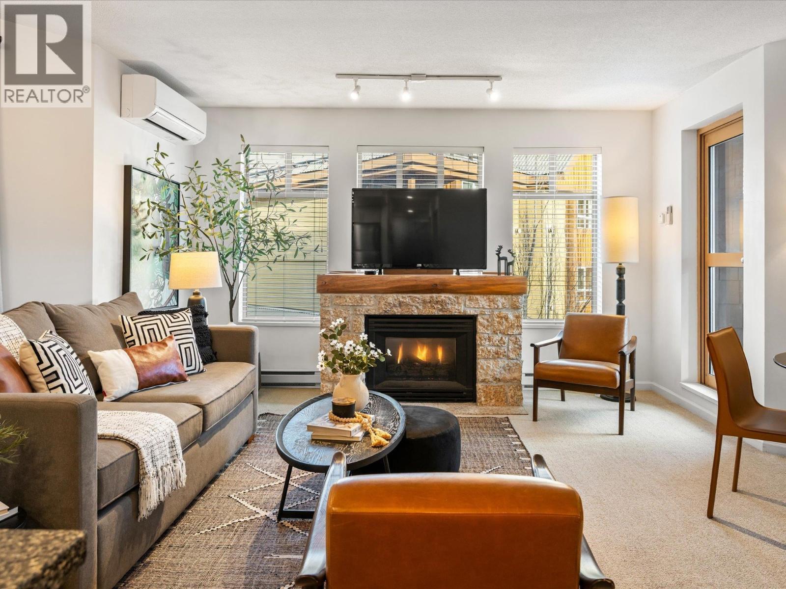 Welcome to Tyndall Stone Lodge, ideally located in the heart of Whistler Village with picturesque views of Olympic Plaza and Blackcomb Mountain. This updated 2-bed, 2-bath residence features a modern open-concept layout, a sleek contemporary kitchen, and a welcoming living area with a gas fireplace. Two private patios to enjoy the mountain air year-round. Residents enjoy secure underground parking, a bike/ski room, and access to the outdoor pool and hot tub. With convenient elevator access and unbeatable walkability, everything you need is just steps away. Phase 1 zoning offers maximum flexibility-nightly rentals, Airbnb management, long-term leasing, or full-time living. A versatile and inviting Whistler retreat-your opportunity to own in one of the Village´s most coveted locations. (32227089)