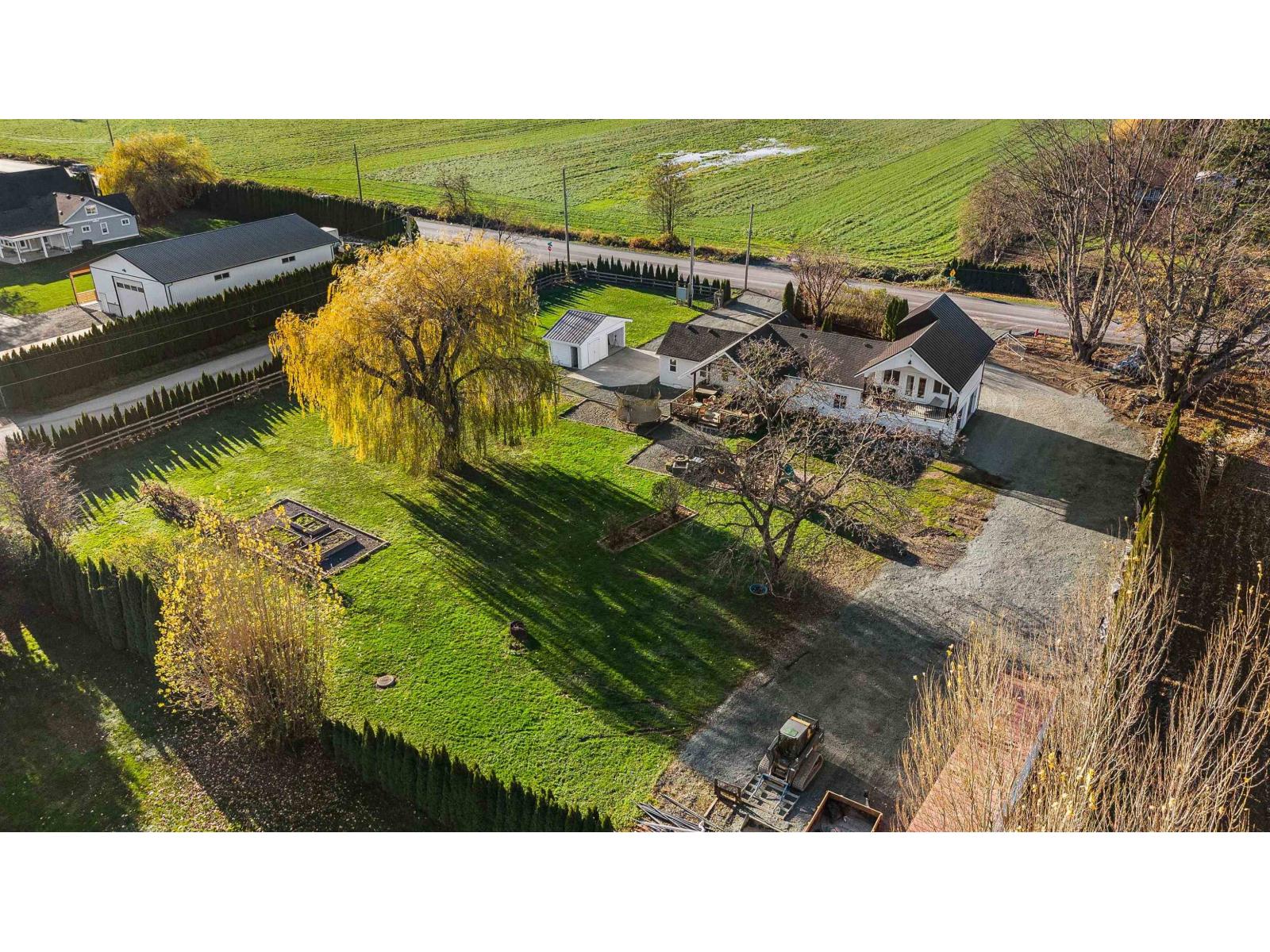 Prime Yarrow location! Beautifully updated & expanded 4-bdrm home on 1.23 flat, usable acres w/ great mountain views, a circular driveway & pre-approved COACH HOME plans! Renovated w/ a craftsman-contemporary style - bright rooms, new flooring, pot lights, S/S appliances w/ gas stove, huge mud/laundry room & pantry. Oversized attached garage, large carport, shed w/ 100-amp subpanel, 2 EV plugs, 200-amp services, generator-ready & RI for powered gates. New roof, double-pane windows, wood soffits, on-demand hot water, high-efficiency furnace & A/C. Primary has vaulted ceilings w/ beams & large walk-in closet, fireplace & RI for ensuite. All work done w/ permits! Raised garden beds around fire pit, quick Hwy access, easy dyke access & Yarrow school pickup at driveway. TWO ROAD FRONTAGES!! * PREC - Personal Real Estate Corporation (32227095)