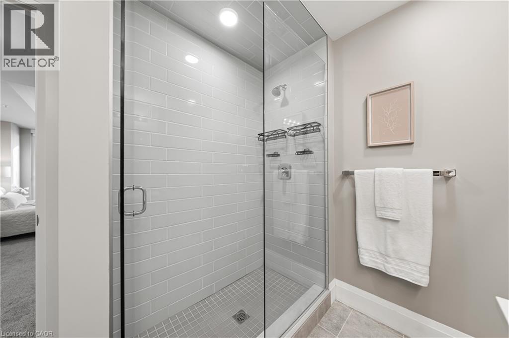 Ensuite bathroom with baseboards and a shower stall