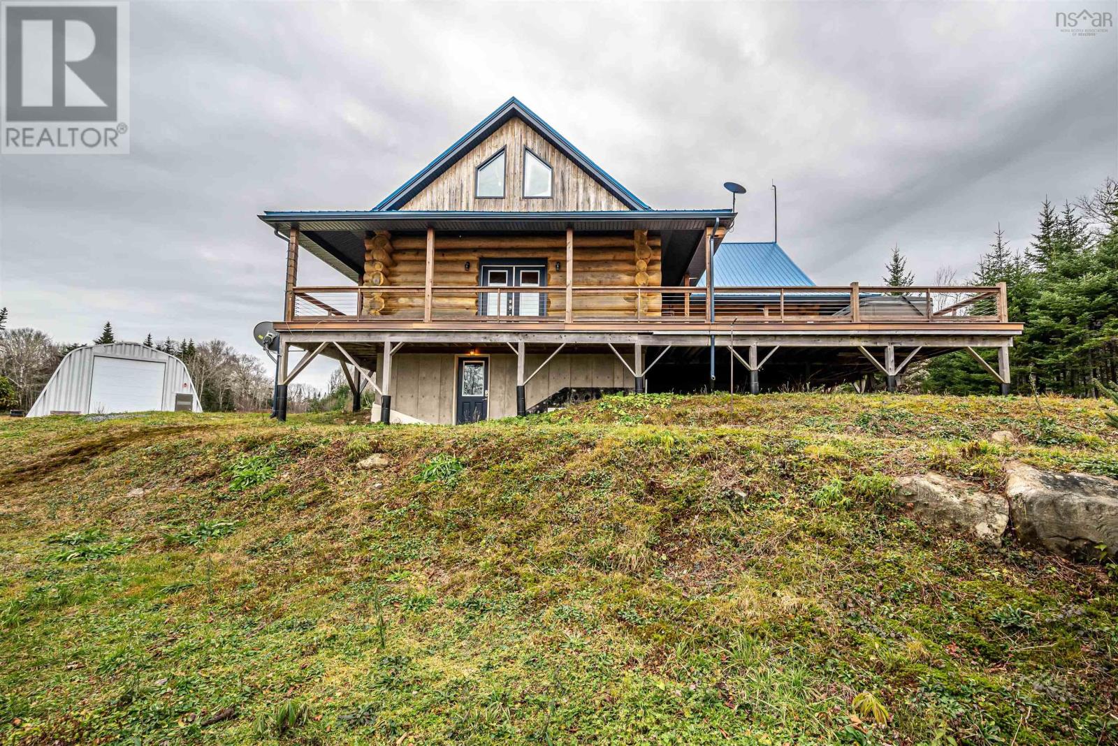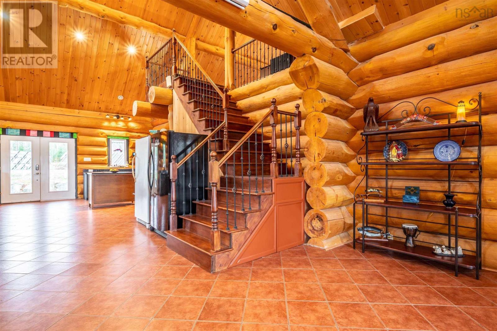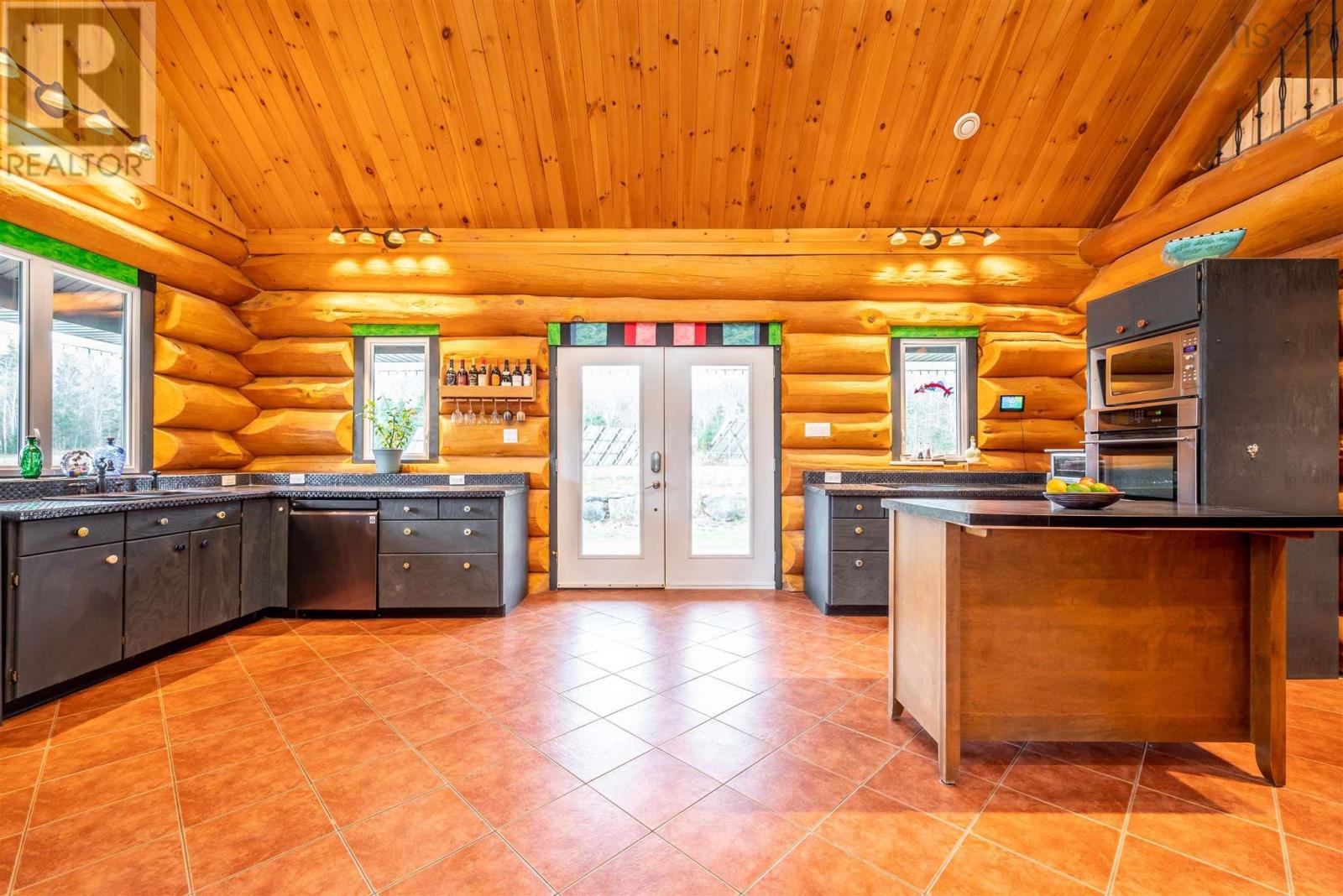 Once in a lifetime opportunity in beautiful Nova Scotia. This majestic 2470 sq ft custom pine log home with an 1800 sq ft partially finished walk-out basement is set on 25 acres of mixed trees and offers 1375 feet of pristine lakefront. The main level features ceramic floors throughout, a stunning open concept kitchen, dining and living area with 22 ft cathedral ceilings, and beautiful lake views. The spacious, sound-proofed primary suite includes a luxurious ensuite, walk-in closet, and a private balcony with direct access to the hot tub. The main level also includes a laundry room with a half bath. The loft provides a bright open space perfect for an office, studio, gym or can be converted into two additional bedrooms if needed.Built with large 40 cm logs, the home exceeds R2000 energy standards and includes energy-efficient appliances, vinyl windows and 6 ft double garden doors. The property features a wide, low-maintenance wrap-around composite deck and accessibility touches including wider doorways. A 14.5 KW solar system with Net Metering, hot water collectors, and an air-to-water heat pump provide in-floor radiant heat and summer cooling, while the commercial-grade diesel generator, battery bank, and oil-fired water boiler ensure reliable backup power.A fully insulated 2400 sq ft workshop with in-floor heat, its own water supply and septic, and commercial use approval offers endless possibilities for business or hobby use. A new 10 x 33 greenhouse with modern amenities is also included. Enjoy ATV and snowmobile trails throughout the property, and a peaceful lakefront area ideal for swimming, boating, fishing, or relaxing. The lake offers approximately 7 meters of depth with a gradual shoreline. Located just 20 minutes from hospital and essential amenities, 35 minutes to Taylor Head Provincial Parks sandy beaches, and under 2 hours to Dartmouth, Halifax and the Halifax Stanfield International Airport. Full list of inclusions, upgrades and luxury finishes! (231688931)