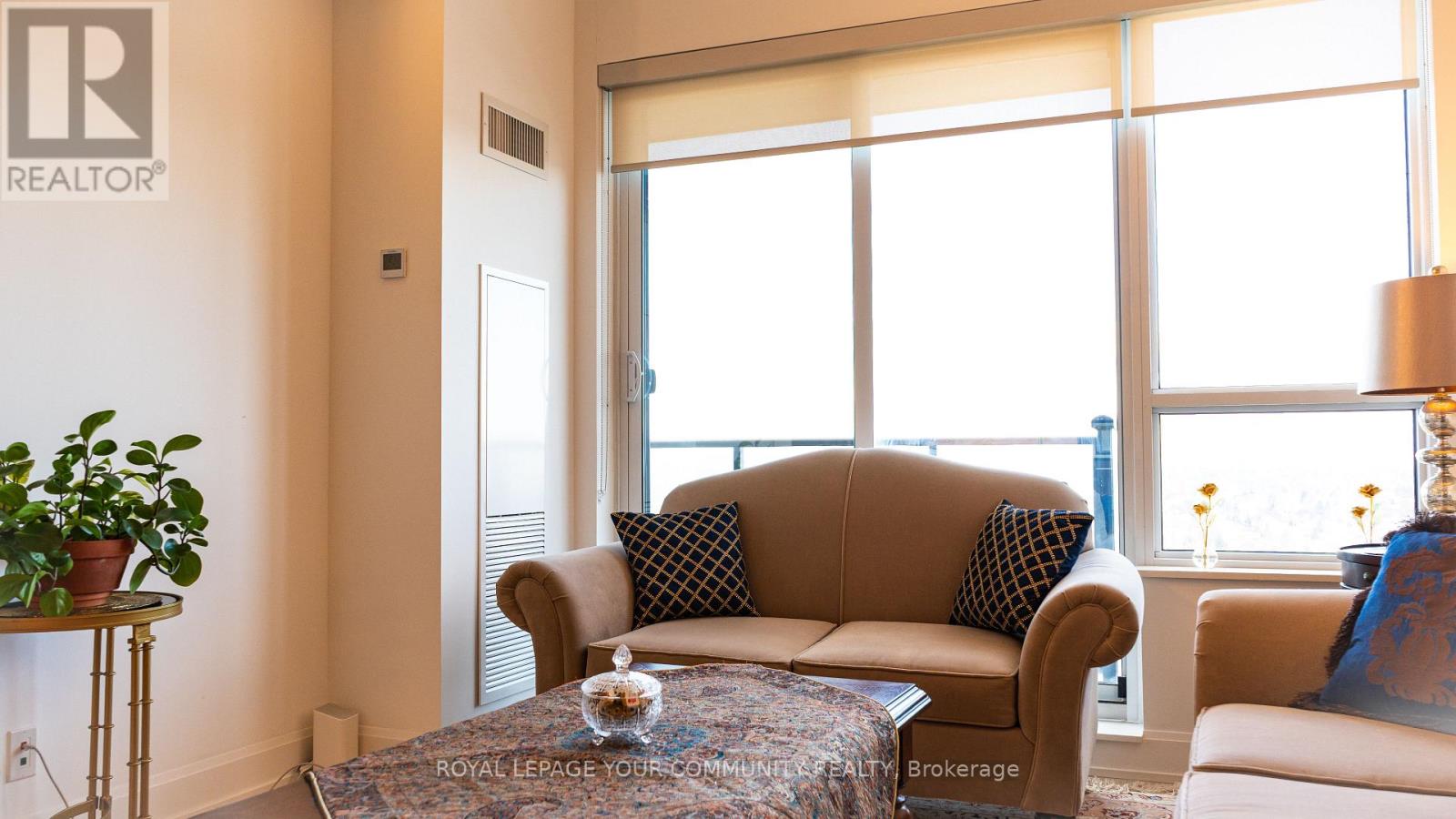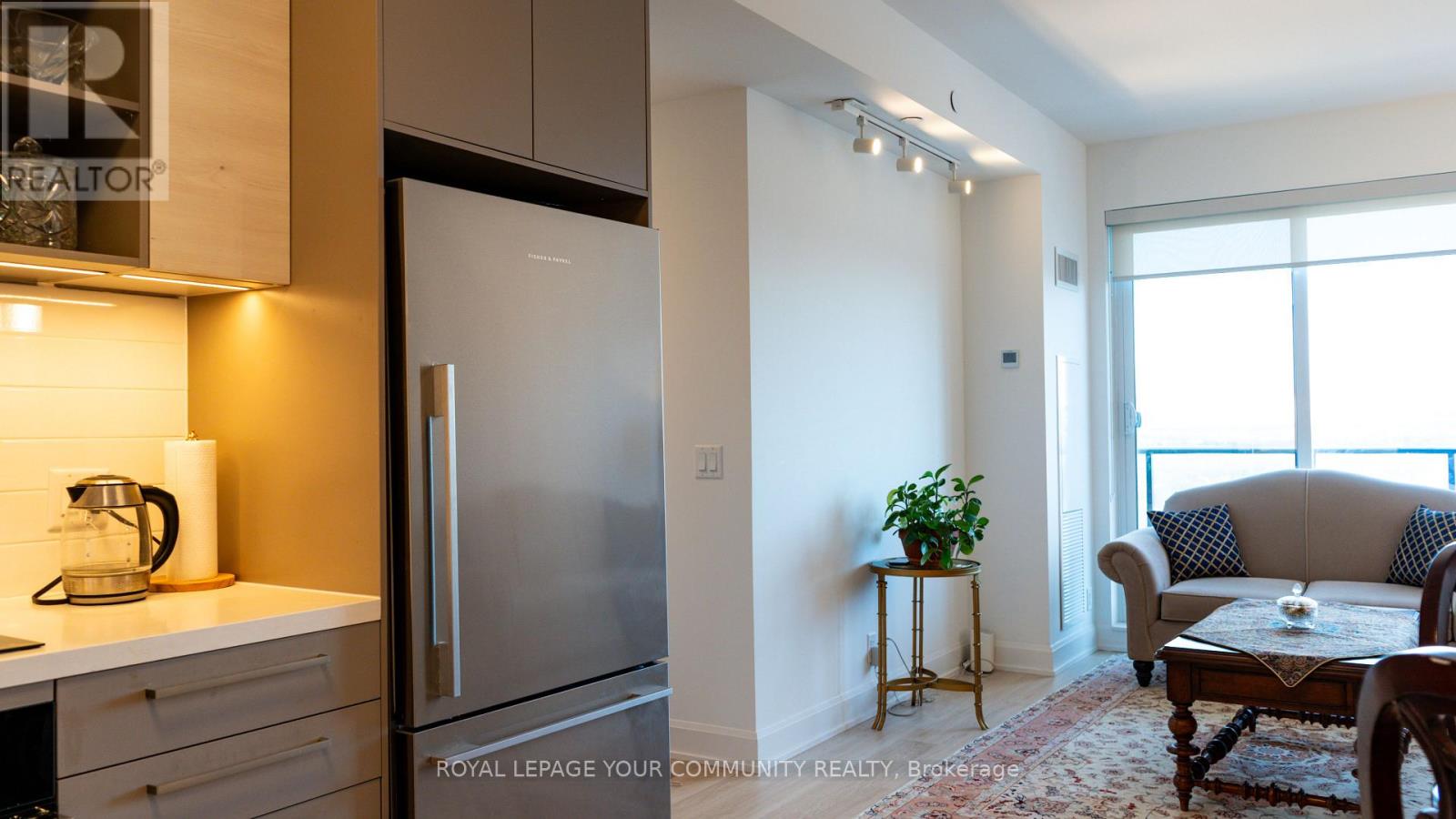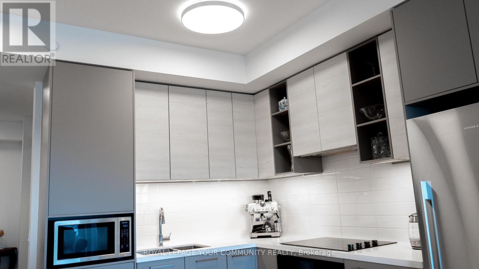 Modern and very well-maintained north-west corner unit with 2 bedrooms and 2 washrooms, showing like a new suite. Features a functional split-bedroom layout, 9' ceilings, open-concept living/dining area, and a beautiful rounded balcony with two walk-outs from the living room and primary bedroom. Bright corner exposure provides excellent natural light. Interior is exceptionally clean and move-in ready. Luxury building amenities include 24-hour concierge, gym, indoor pool, party/meeting room, guest suites, and visitor parking. Prime Thornhill location close to transit, Langstaff GO, Viva, Hwy 7/407, parks, schools, restaurants, and shopping. Includes 2 parking spaces (P2-93 & P2-94) and 1 locker (P1-213). (41758872)