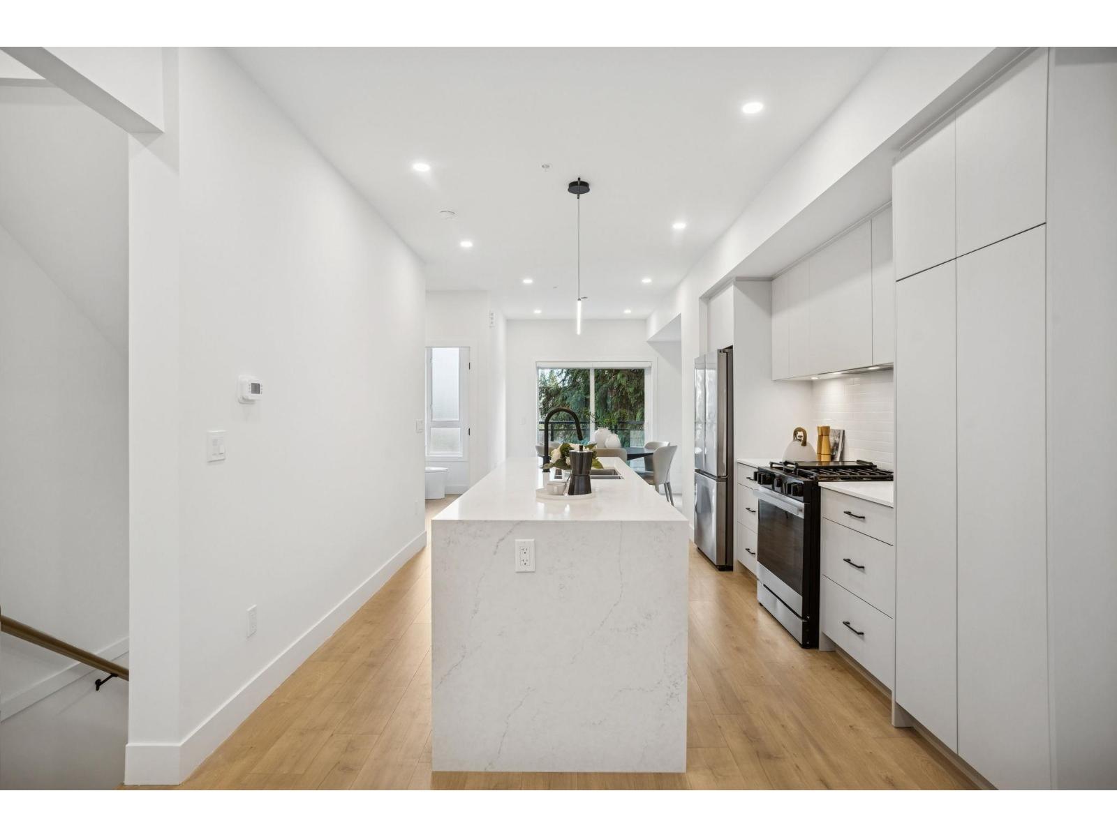 BRAND NEW 3 BEDROOM TOWNHOME WITH ROOFTOP DECK! This townhome features an open concept kitchen with sleek cabinetry, large kitchen island with quartz waterfall countertops, stainless steel appliances including gas range, flowing on durable laminate flooring into the spacious living and dining rooms and opens onto a patio with gas hookup. Appreciate 9' ceilings, oversized windows, forced air heating/air-conditioning and roller blinds throughout. Above is a primary suite with 4 piece , double vanity ensuite and 2 additional spacious bedrooms sharing a beautifully contemporary bathroom. This home features a 428SF rooftop deck and garage for 2 vehicles and EV charging! ***OPEN HOUSE: SUNDAY DECEMBER 14 2-4PM*** (32232189)