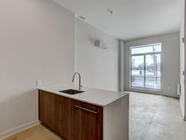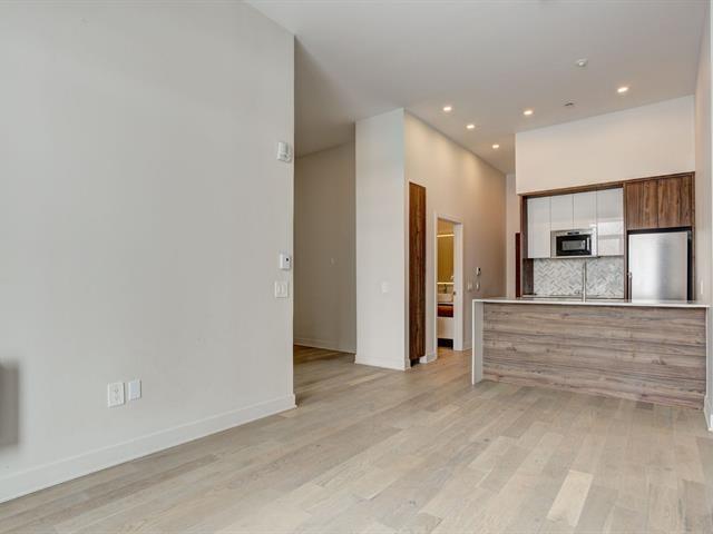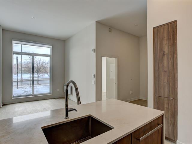 Immediate occupancy. Beautiful 11-foot ceiling 1 bedroom + den condo with 200sqft terrasse. Welcome to MONARC CONDOS. An exclusive project located in the heart of Ville Saint-Laurent. This modern designed unit, fully equipped with appliances, 1 indoor parking with 1 locker. Designed by LEMAY + ESCOBAR. Come enjoy the most luxurious amenities, modern, quality finishes and perfect location. (43218483)