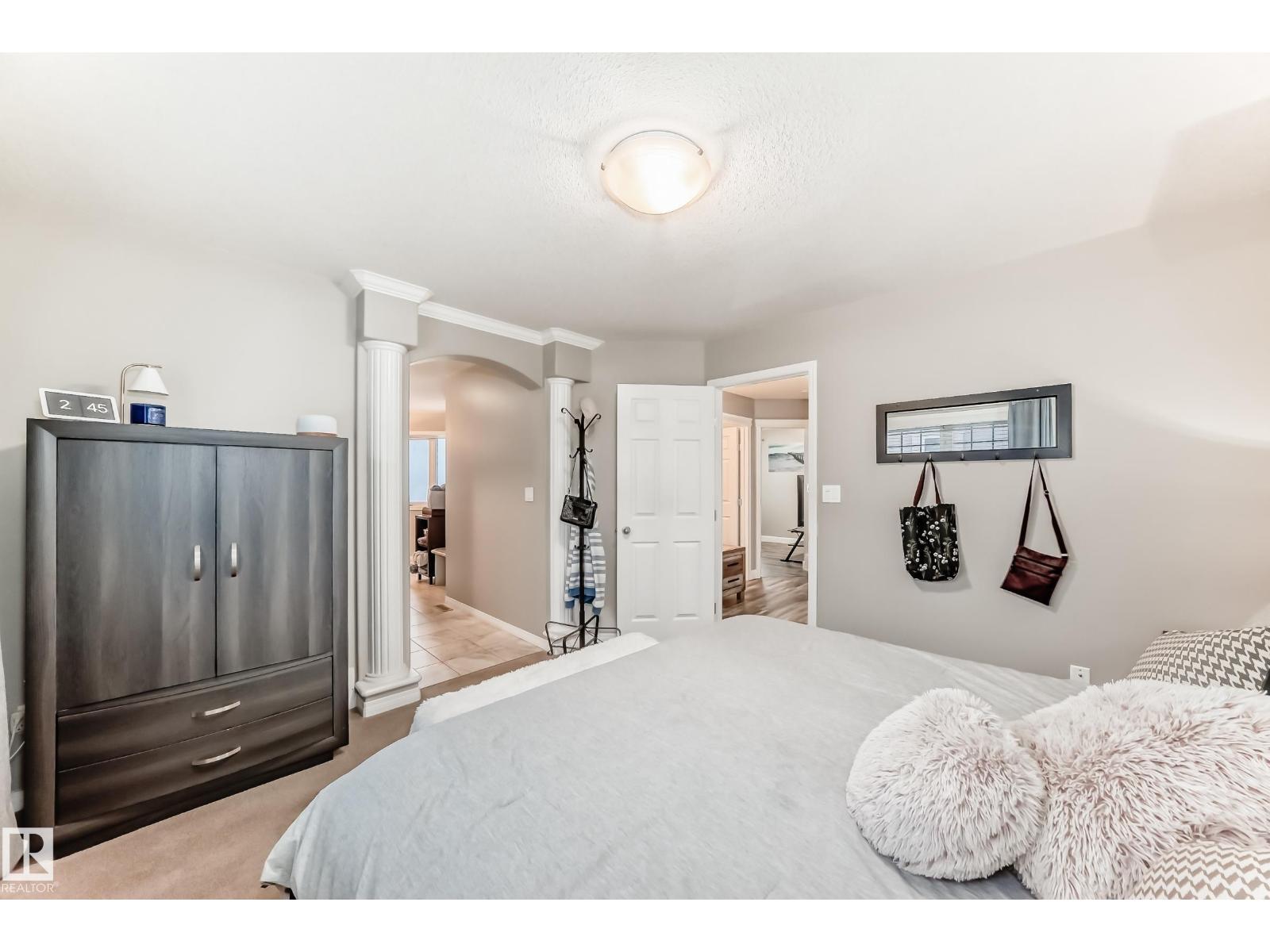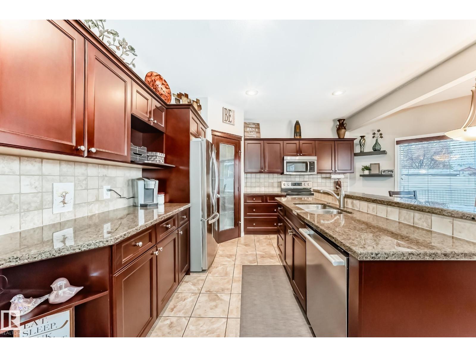 MASSIVE HEATED/INSULATED TANDEM GARAGE, CORNER LOT & FIVE BEDROOMS! Step into style and comfort in this beautifully updated home! The open kitchen flows into a cozy living room with hardwood floors and a tile-surround gas fireplace. Enjoy dark cabinetry, granite countertops, a corner pantry, & sliding doors that lead to a COMPOSITE DECK, MAINTENANCE-FREE FENCING, & a charming gazebo with a relaxing jetted hot tub--perfect for entertaining or unwinding! Fresh upgrades include NEW vinyl plank, paint, HWT, AC,refrigerator, stove, and washer. Upstairs offers three bedrooms, including a stunning primary suite with a 5-piece ensuite, separate water closet, and walk-in closet. UPSTAIRS LAUNDRY & a sizable bonus room complete this level. The fully finished basement adds two spacious bedrooms (one with a walk-in closet), a 4-piece bath, and great storage. Close to parks, schools, walking paths & more. A true move-in-ready gem! (33628733)