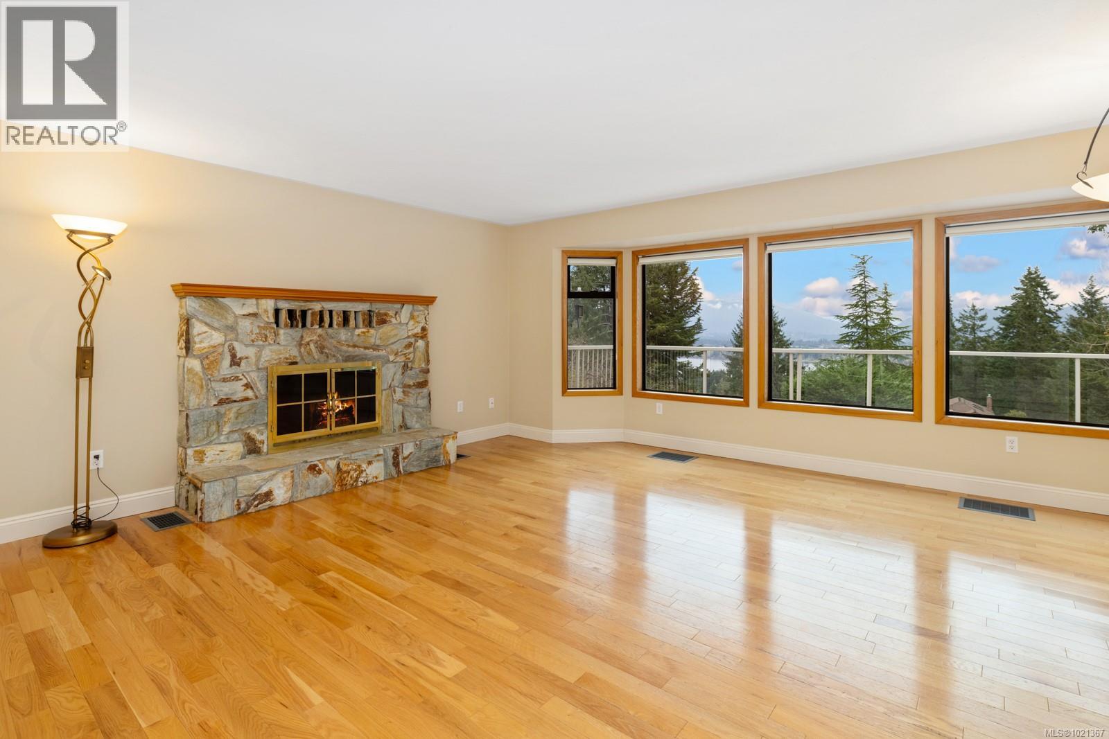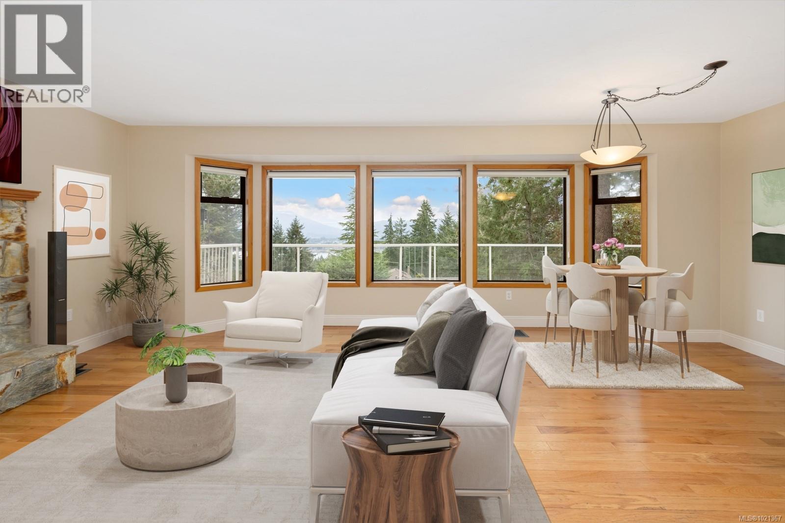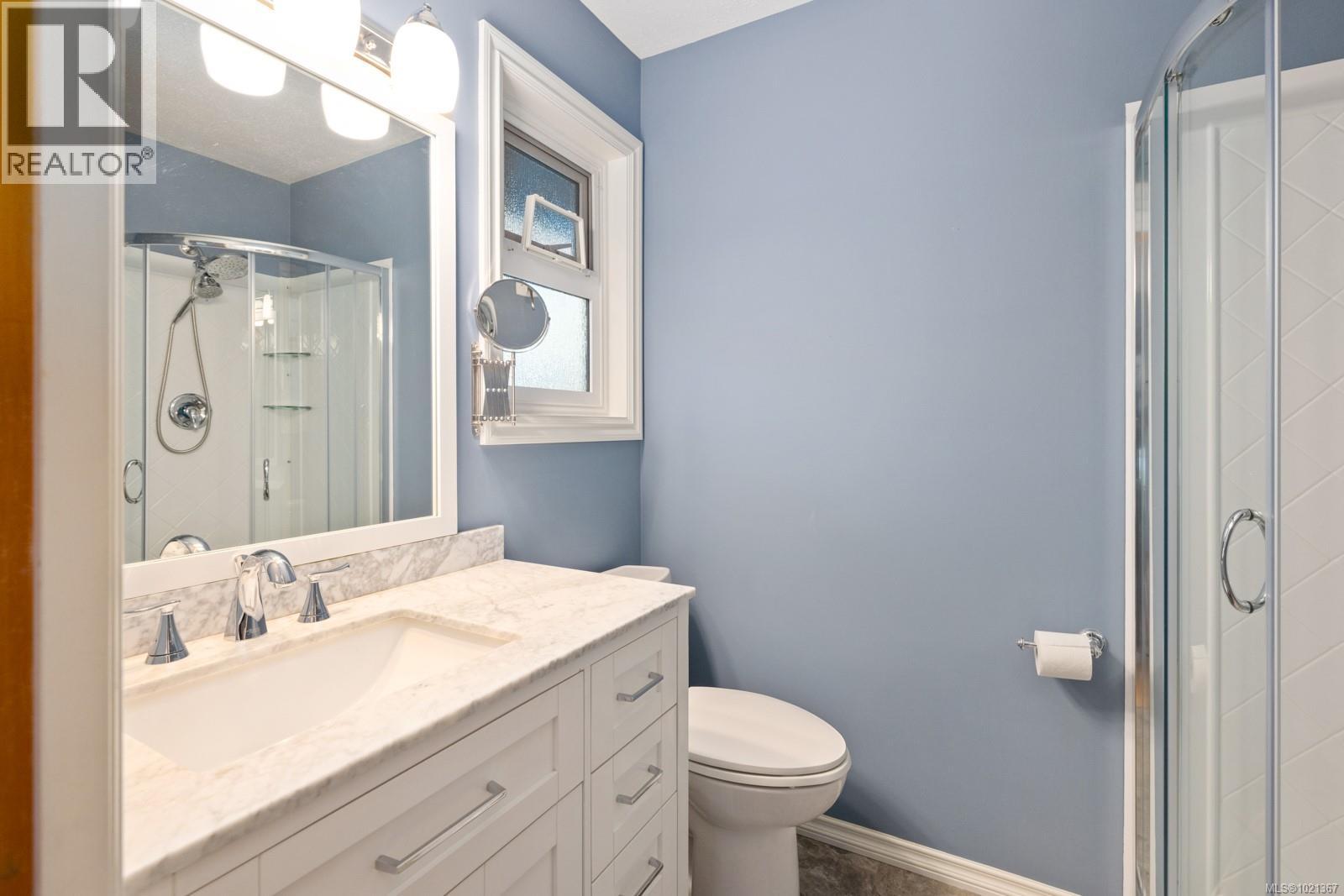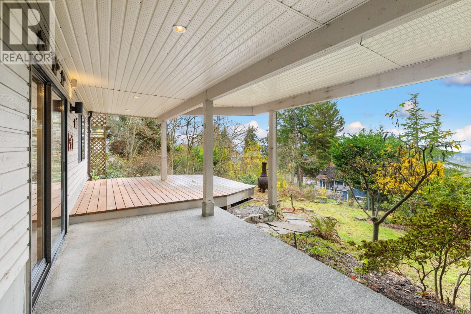 Experience effortless main-floor living in this beautiful 3-bed, 4-bath home with a level driveway and no-step entry. The primary bedroom boasts a walk-in closet and 3-piece ensuite. The spacious living room, blanketed in hardwood and warmed by a cozy wood-burning fireplace, offers serene forest and lake views. Skylights in the entry, kitchen and hall enhance the natural light throughout the main floor. The kitchen, featuring heated tile floors, opens to a west-facing, entertainment-sized deck, perfect for sunsets and gatherings. Downstairs, a huge family room with a gas fireplace offers access to a covered patio and a private, fully fenced backyard. The one-bedroom suite is perfect for extended family or visiting friends, giving them comfort and privacy. This is an ideal location in a great Maple Bay neighbourhood. (30183378)