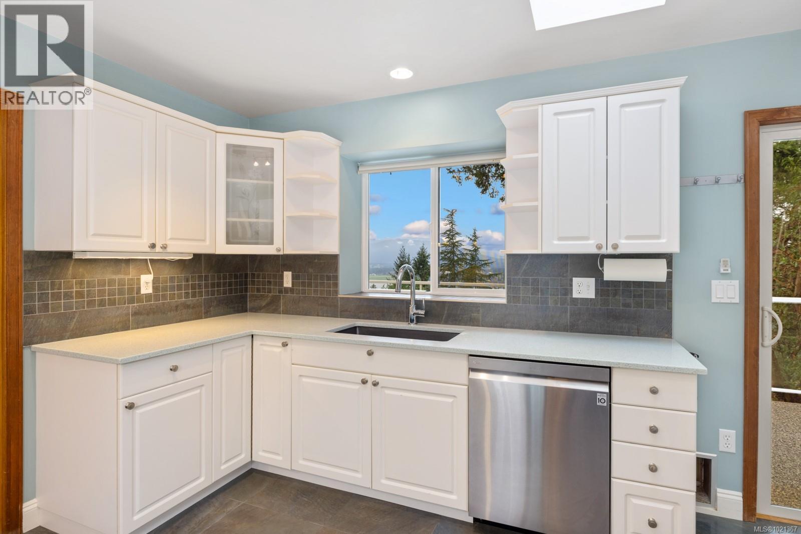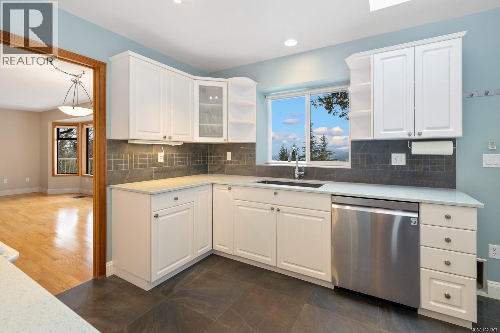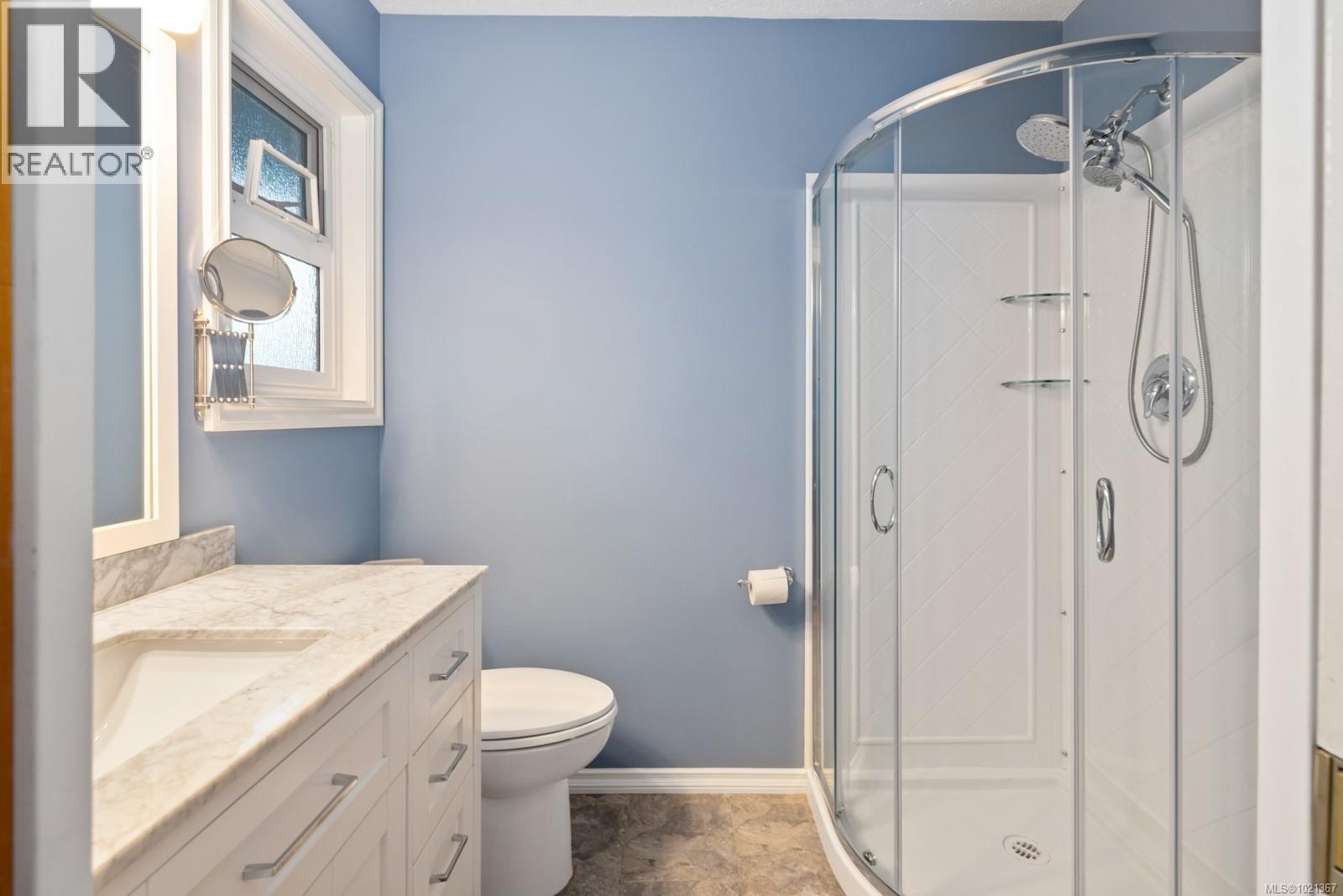 Experience effortless main-floor living in this beautiful 3-bed, 4-bath home with a level driveway and no-step entry. The primary bedroom boasts a walk-in closet and 3-piece ensuite. The spacious living room, blanketed in hardwood and warmed by a cozy wood-burning fireplace, offers serene forest and lake views. Skylights in the entry, kitchen and hall enhance the natural light throughout the main floor. The kitchen, featuring heated tile floors, opens to a west-facing, entertainment-sized deck, perfect for sunsets and gatherings. Downstairs, a huge family room with a gas fireplace offers access to a covered patio and a private, fully fenced backyard. The one-bedroom suite is perfect for extended family or visiting friends, giving them comfort and privacy. This is an ideal location in a great Maple Bay neighbourhood. (30183378)