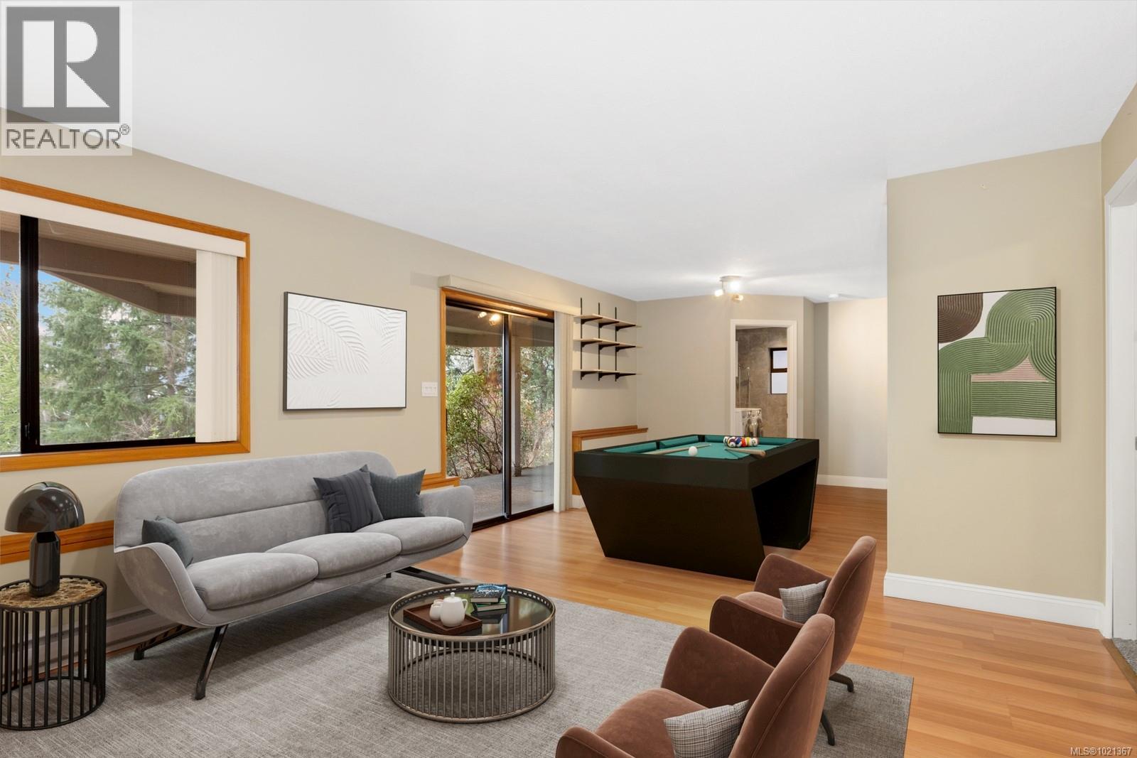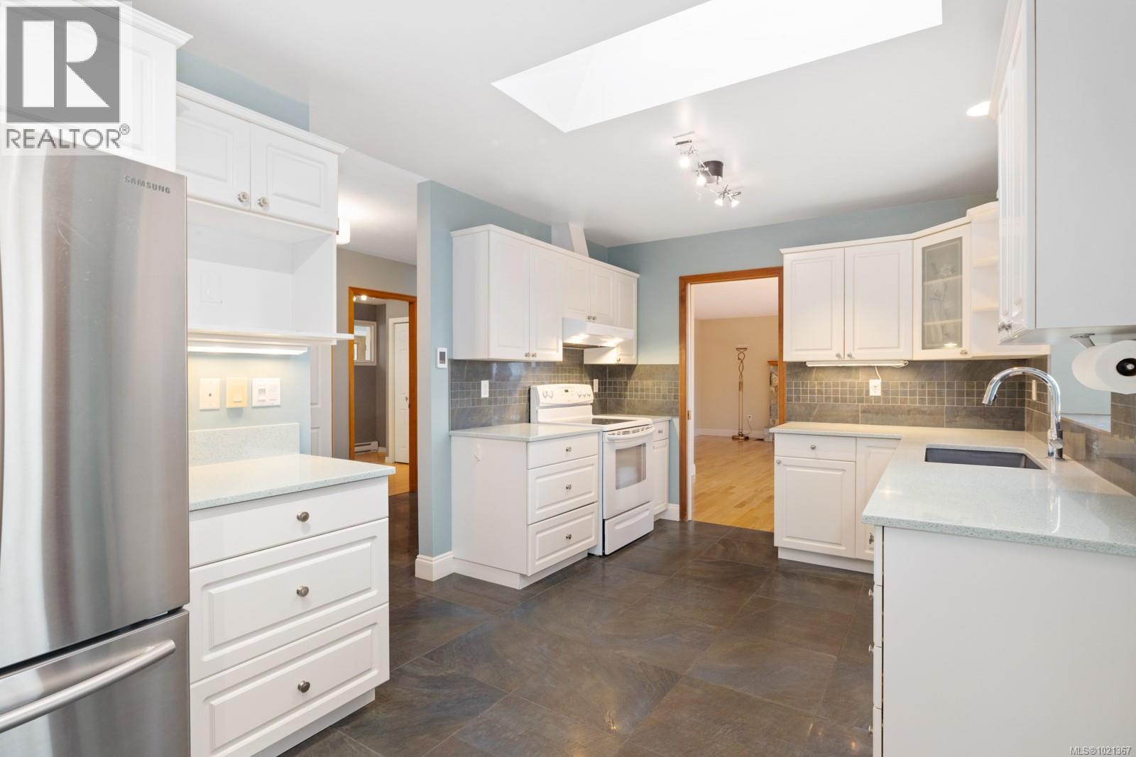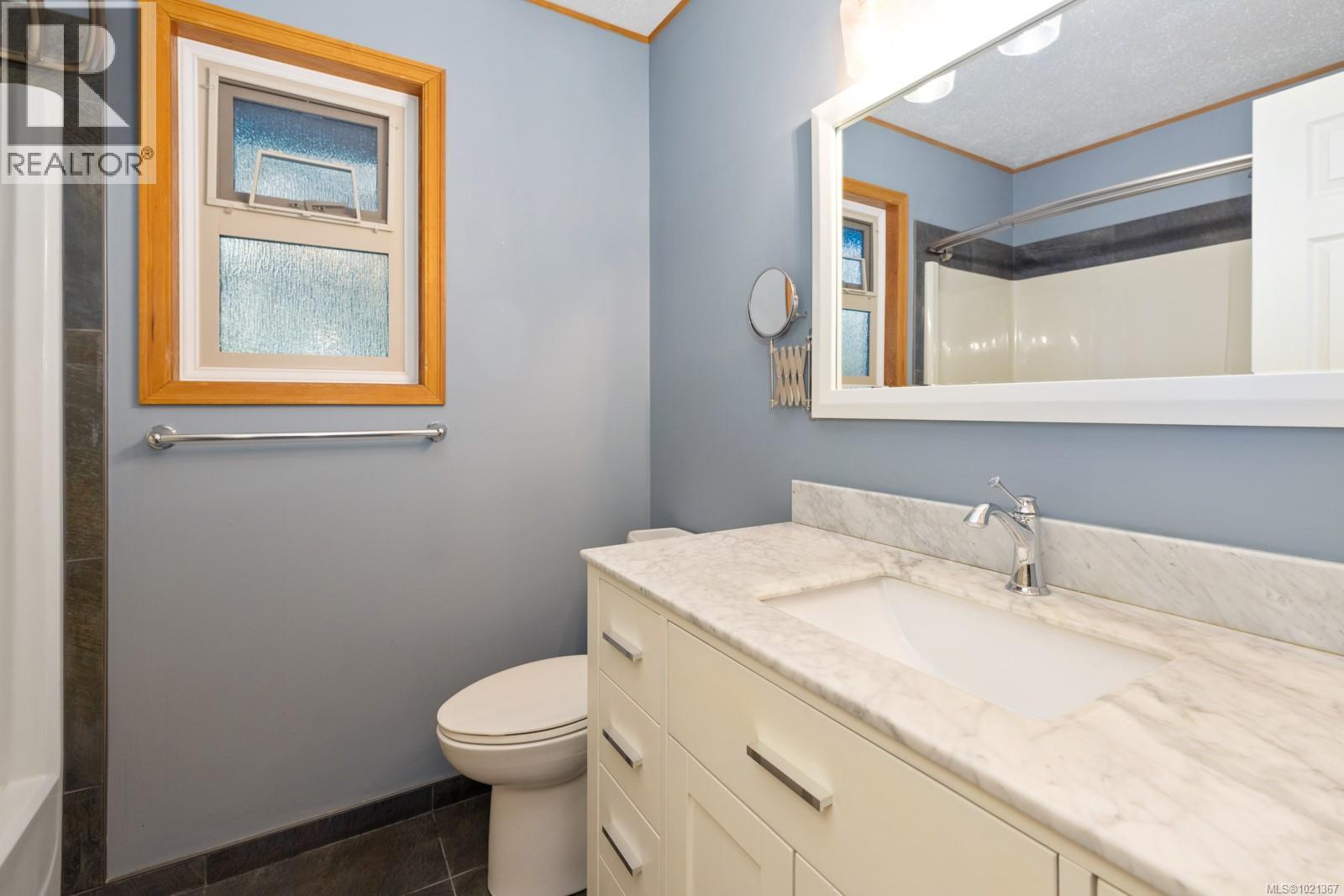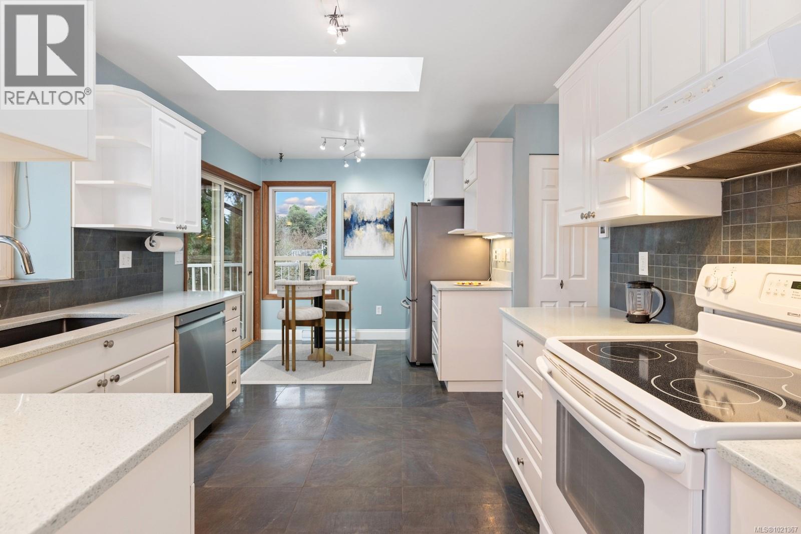 Experience effortless main-floor living in this beautiful 3-bed, 4-bath home with a level driveway and no-step entry. The primary bedroom boasts a walk-in closet and 3-piece ensuite. The spacious living room, blanketed in hardwood and warmed by a cozy wood-burning fireplace, offers serene forest and lake views. Skylights in the entry, kitchen and hall enhance the natural light throughout the main floor. The kitchen, featuring heated tile floors, opens to a west-facing, entertainment-sized deck, perfect for sunsets and gatherings. Downstairs, a huge family room with a gas fireplace offers access to a covered patio and a private, fully fenced backyard. The one-bedroom suite is perfect for extended family or visiting friends, giving them comfort and privacy. This is an ideal location in a great Maple Bay neighbourhood. (30183378)