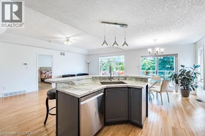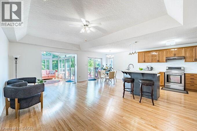 Luxury Walkout Bungalow with Million-Dollar View in Prestigious Rosewood Community, Clair Hills. Experience refined living in this elegant brick bungalow, offering a seamless blend of space, style, and natural surroundings with breathtaking views of the ravine and pond—nestled in one of Waterloo’s most sought-after neighbourhoods. This exceptional all-brick 2+2 bedroom, 3 full bath walkout bungalow offers impeccably finished living space with stunning, unobstructed views of the ravine and pond. Set in one of Waterloo’s most desirable neighbourhoods, this home is a rare blend of elegance, comfort, and natural beauty—an ideal retreat right in the city. Designed for comfort and style, the main level welcomes you with rich hardwood flooring, elegant coffered ceilings, and an abundance of natural light. It features two bedrooms, a bright kitchen seamlessly flowing into the living and dining areas, and convenient main floor laundry. A standout feature is the sun-drenched tropical-style sunroom, complete with vaulted ceilings, skylights, and an electric fireplace—perfect for any season. Step through the sliding glass doors onto the upper deck to enjoy breakfast with the sounds of nature or unwind under the stars. The walkout basement extends the living space with two generously sized bedrooms and an open-concept Great room featuring a gas fireplace, alongside dedicated areas for reading and fitness. Sliding doors open to a covered lower deck offering tranquil views of the pond and surrounding mature trees—an ideal space to relax or entertain. Close to the University of Waterloo, top-rated schools, shopping centers, walking trails, medical facilities, places of worship, and movie theaters, this home perfectly balances comfort, privacy, and convenience. Featuring double decks and a stunning natural setting, this rare gem won’t last long. (69955827)
