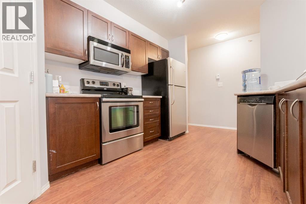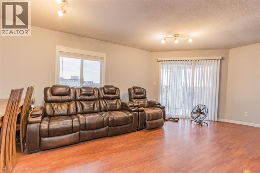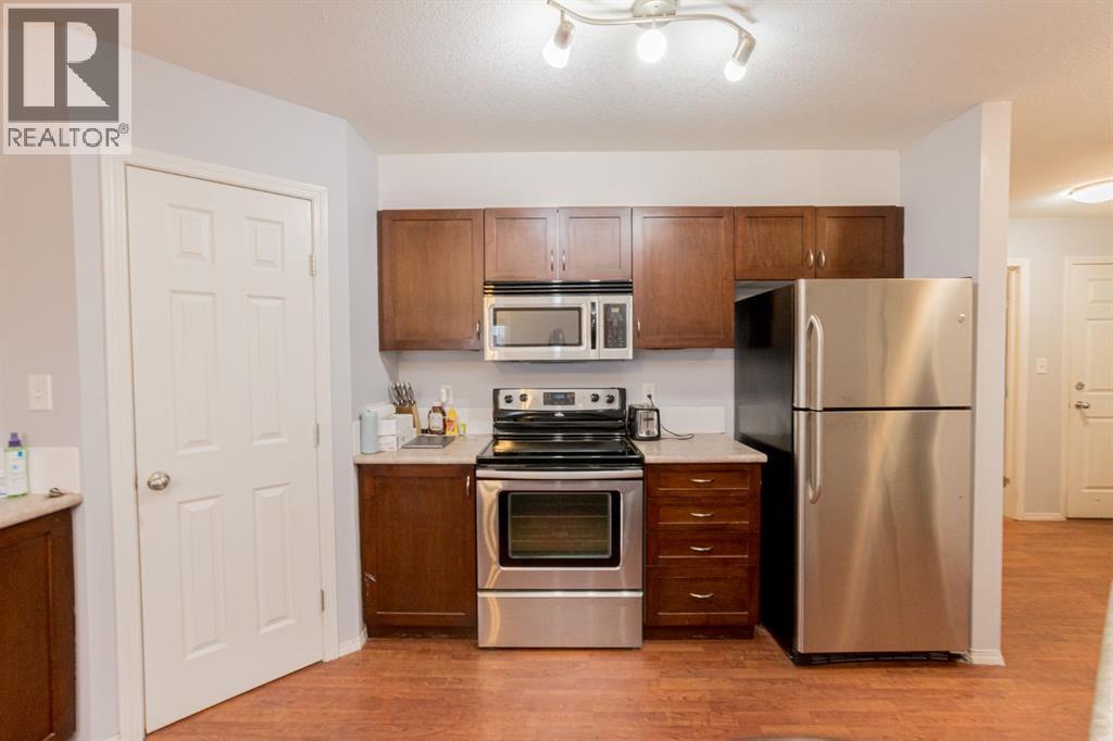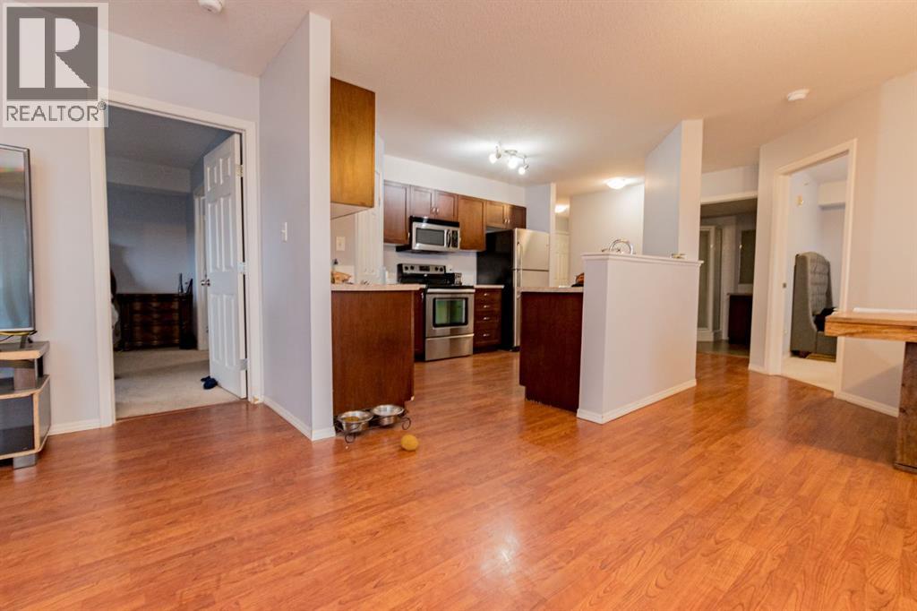 TOP FLOOR CORNER UNIT WITH GREAT WESTERN EXPOSURE. This oversized 2Bed/2Bath condo has so much to offer: dedicated laundry room in-suite hosting new washer/dryer, large entryway, kitchen space with pantry and large island/eating bar. Bedrooms are separated for great privacy options . Primary offers walk-thru closet and full ensuite bath. Dining area & large living space complete the package. Unit currently offers one underground stall plus two above ground parking stalls(leased). Condo living can create a great lifestyle with gym facilities in the building and no maintenance to worry about. Perfect location close to all west Grande Prairie's amenities, Regional hospital, NWP secondary education site & airport. Well priced for the size & location, flexible possession available. Call a Realtor today to arrange your private showing. (31437507)