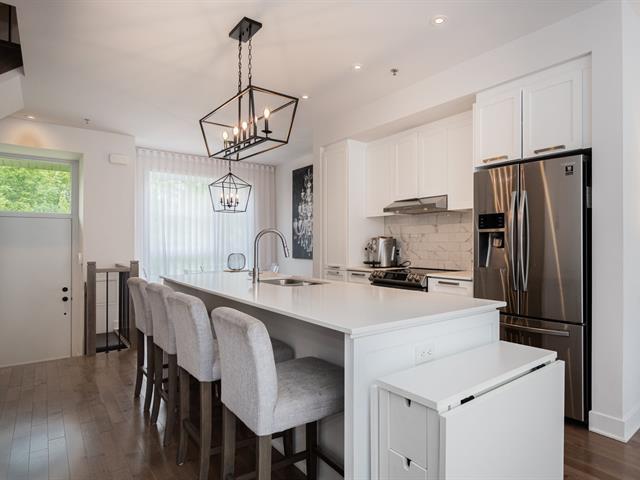 Discover this exceptional LEED-certified townhouse offering privacy and unobstructed views of a peaceful forest. Enjoy 3 bedrooms, an office, 2 bathrooms, a powder room, and private terraces perfect for relaxing. Bright open-concept living, a modern kitchen, and a sleek quartz island elevate daily comfort. Built in 2021 with exceptional craftsmanship. Ideally located near the Eco-Zoo, Morgan Arboretum, trails, parks, the upcoming REM, Sainte-Anne village, Sainte-Anne village, boardwalk, Senneville, Fairview Pointe-Claire and the McGill/John Abbott campuses. (56380702)