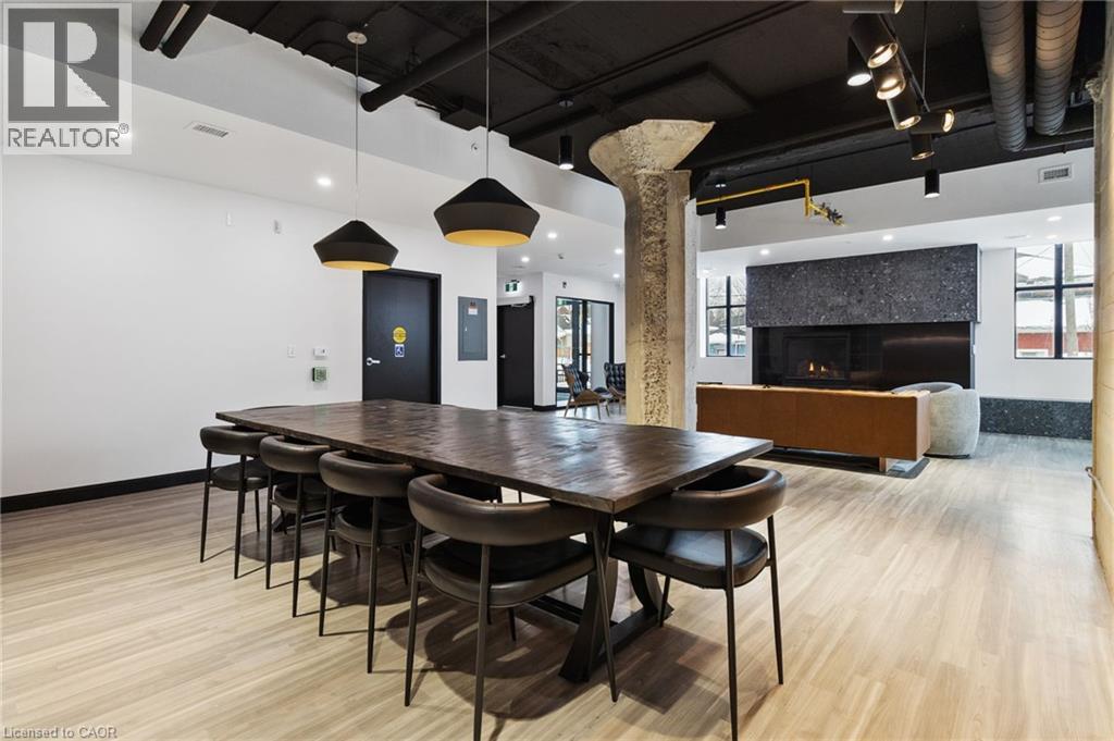 Where heritage charm meets modern edge. Step into this authentic hard-loft conversion that pairs century-old character with contemporary design. This bright and open 1-bed, 1-bath condo showcases soaring 10-foot ceilings, oversized windows, and a fluid layout that makes a statement the moment you walk in. Thoughtful upgrades include a sleek waterfall quartz countertop and upgraded baseboards for a polished, elevated finish. Enjoy the convenience of a separately deeded parking space and storage locker. Just minutes from Guelphs vibrant downtown: coffee shops, boutiques, and dining are all close at hand, yet the building itself exudes soul, history and genuine warmth. Your private 150 sq. ft. balcony becomes an extension of your living space, perfect for morning coffee or evening stargazing. Inside, the clean, modern aesthetic is complemented by access to premium amenities: a 2,200 sq. ft. rooftop patio with BBQ, fire cube, and lounge seating; heated bike ramp with indoor storage; a fully equipped gym; games room; and even a pet wash for your four-legged friend. Whether youre working from home, entertaining, or simply enjoying the vibe, this loft delivers the best of boutique, urban living. (69957959)
