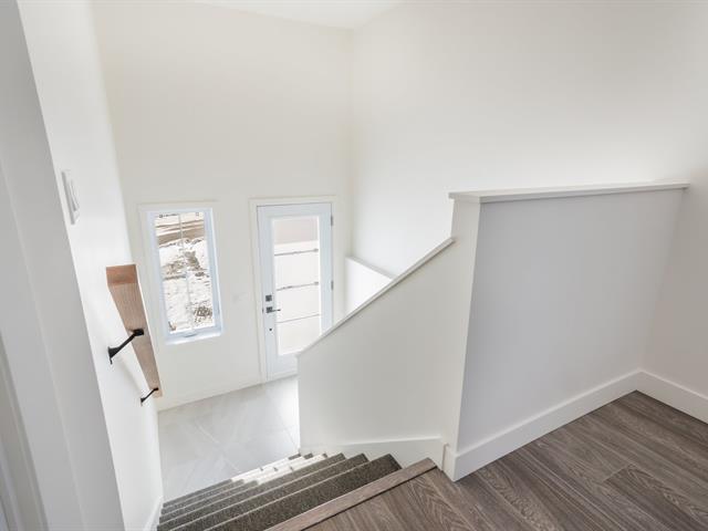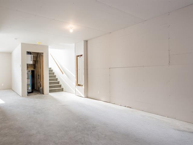 In construction! Single-story corner townhouse located in the Mont-Bellevue area. This left-hand unit could accommodate 3 bedrooms and 2 bathrooms by converting the basement. The open-concept ground floor includes a dining room, a kitchen with an island, lunch counter, and patio door, a living room, a bedroom, and a bathroom. The bedroom has a double closet. The bathroom has a shower-tub combo with 3 ceramic walls. The basement can accommodate a family room, two bedrooms, and a bathroom. 12 x 12 ft. patio in the back. Close to all amenities! GST/QST must be added to the asking price (49763793)