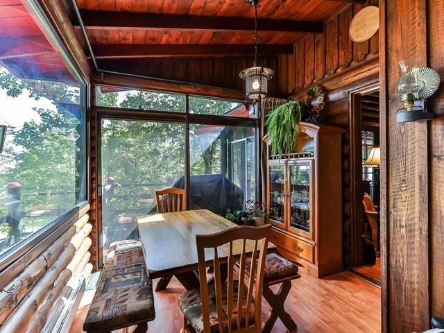 Property built directly on the golf course with the same concept as the Château Montebello, large stone fireplace in the heart of the house. Cathedral ceiling and all the walls are made of logs and the ceilings are wood. You will find 3 bedrooms as well as 3 bathrooms. The kitchen also has its old stove and works very well. The land is decorated with a large in-ground pool measuring 42 X 22. Very beautiful landscaping. Are you looking for a typical Chateau Montebello house with a view of the river and the Chateau, directly on the golf course with a large in-ground pool? Look no further, you have found it! (45966165)