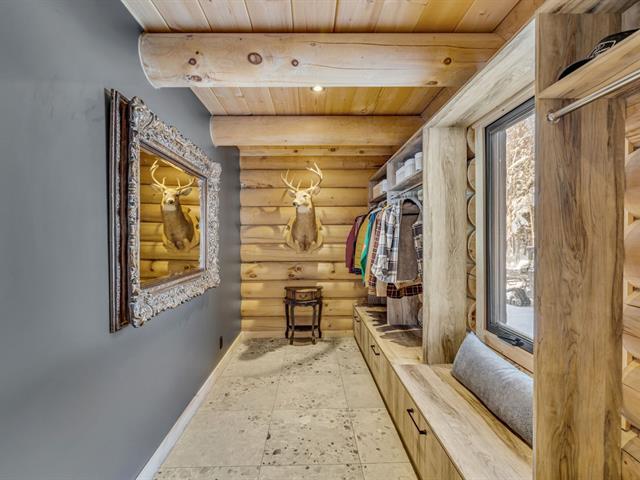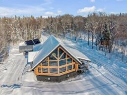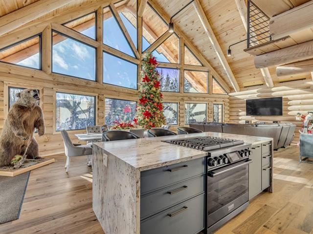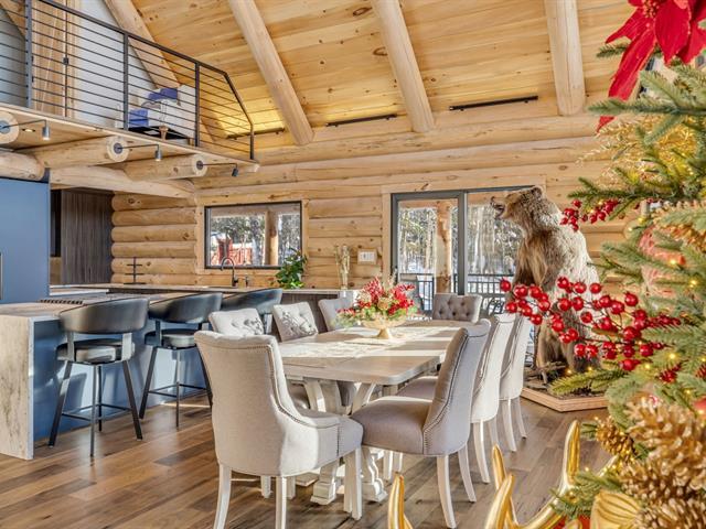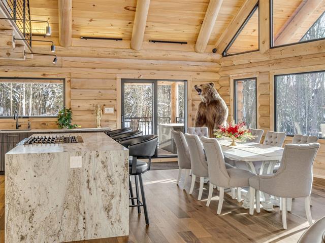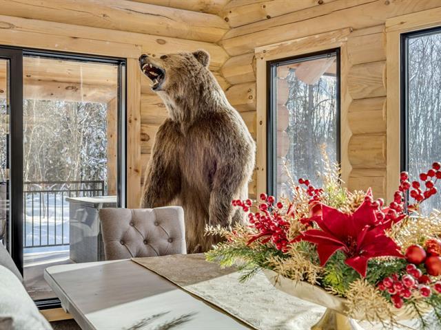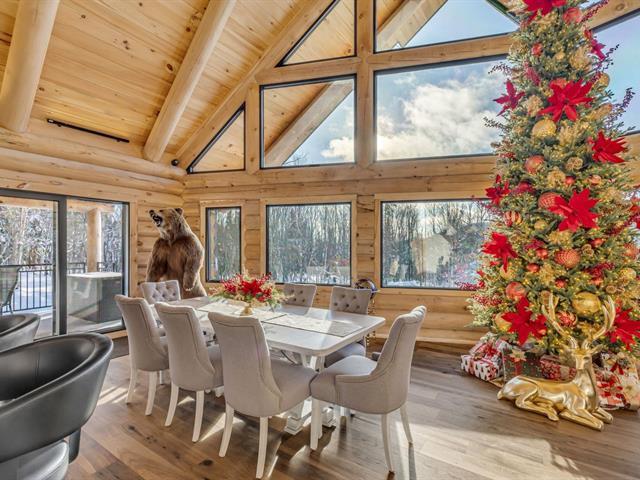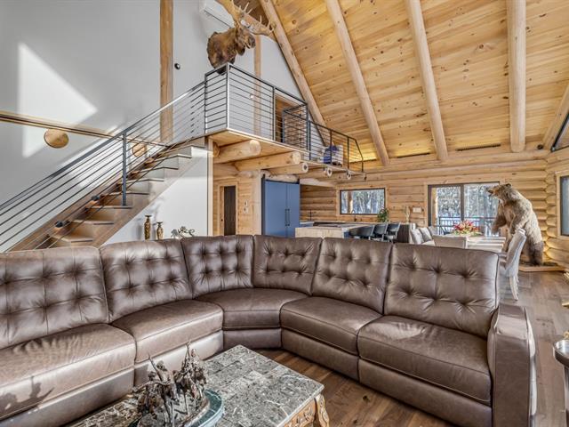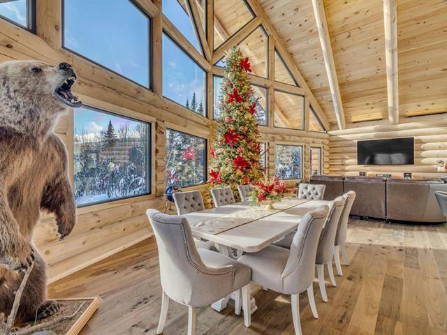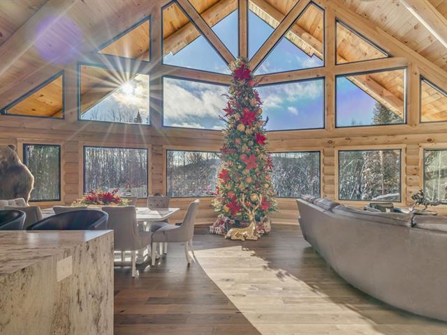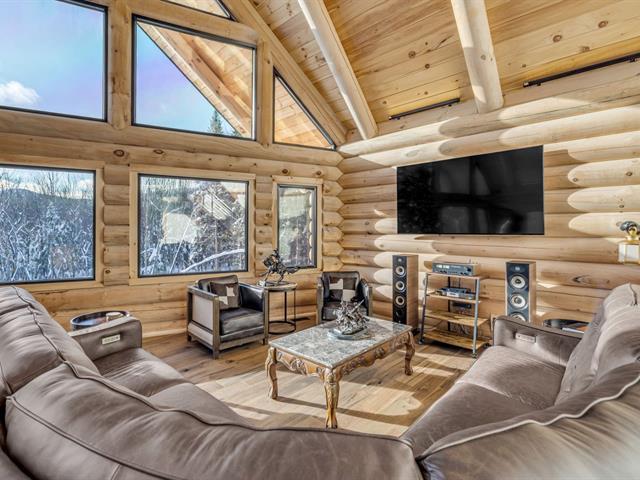 An exceptional private estate of over 102,982 m², located just minutes from Mont-Sainte-Anne. This magnificent log cabin boasts unparalleled natural light thanks to its panoramic windows and grand architecture. The property is 100% self-sufficient, powered by solar panels, and features complete home automation and 16 surveillance cameras. The wooded land includes a river, trails, maple grove potential, and hunting areas. A fully equipped triple garage completes the picture. Enjoy absolute privacy, tranquility, and breathtaking natural surroundings. A unique location combining luxury, self-sufficiency, and exclusivity. A rare opportunity! (50445767)