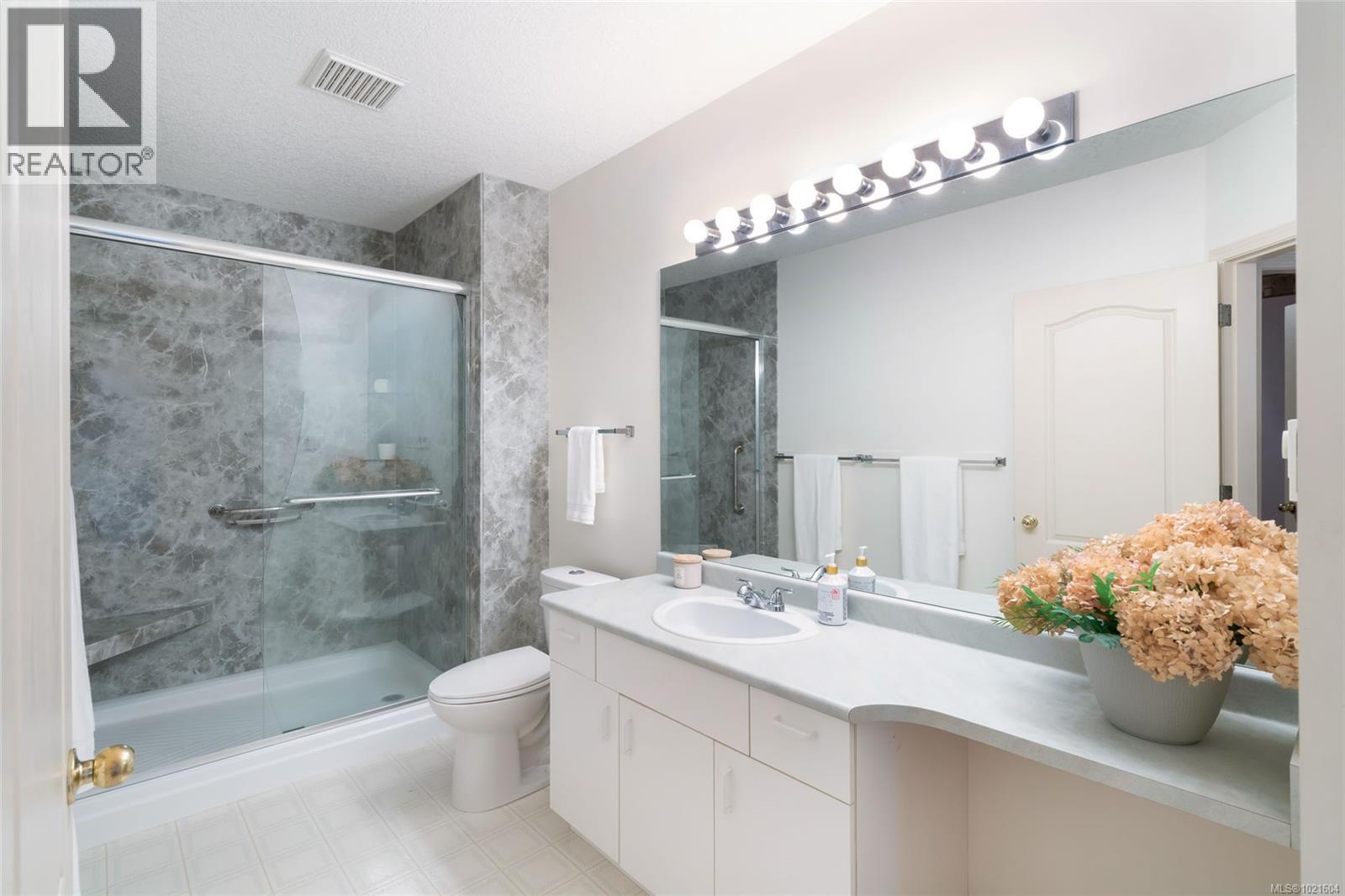 Peaceful and Secure 55+ Parksville Patio Home. Enjoy the next chapter of your life in this bright and spacious 2 Bed/2 Bath Patio Home, offering distinct formal and casual living areas, stylish architectural angles, generous use of glass for natural light, and ample storage. You’ll love the outdoor living space and the thoughtful updates completed over time, while still having room for your personal touches. This home is one of the few units in “Park Lane Place” to feature a Double Garage. Enjoy the peace of a gated, pet-friendly adult community just blocks from beach access and walking/biking trails, and only mins from Wembley Mall and downtown Parksville. From the covered front patio—enhanced by a large skylight and southwestern exposure—a front door with sidelights opens to a foyer and an inviting open-plan Living/Dining Room. A replaced bay window fills the Living Room with cheerful afternoon light, while an electric fireplace adds instant warmth and cozy ambiance. A partial wall subtly separates the space from the Dining Room, with room for your favorite hutch. The adjacent Kitchen/Family Room is ideal for casual living. The functional kitchen offers ample counter space, crisp white cabinetry, an east-facing window for morning sun, and a handy Laundry Closet. Wood-finish laminate flooring extends into the spacious Family Room, highlighted by large windows and a ceiling fan. A door leads to a large patio with a translucent cover for year-round use, perfect for relaxing, dining, and entertaining. The patio looks onto a fenced common area with grass for pets. Off the foyer, a hallway with dual closets leads to the spacious Primary Bedroom Suite with a ceiling fan, walk-in closet, and a 4-piece ensuite. A separate enclave hosts a 3-piece Main Bath with a new shower (2024) and a generous Second Bedroom with a walk-in closet—ideal for guests or as a Hobby Room or Home Office. Nice extras/updates, visit our website for more. (30188995)