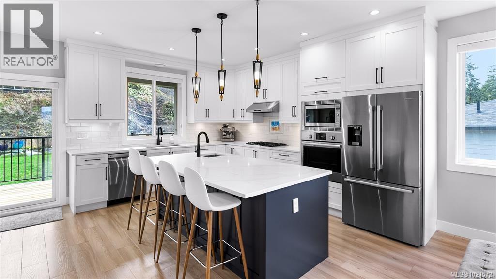 This beautiful home offers a spacious open floorplan with panoramic lake views from the front patio. The upstairs has 3 bedrooms and main-floor living, with direct access to the walk-out backyard—ideal for supervising children or entertaining. The backyard features a garden with an apple tree, raspberries, strawberries, and herbs. The walk-out basement includes a mudroom, large bedroom/gym/office, and a large flex space; perfect for a media room / rec-room for teenagers, an area to entertain guests, or as an in-law suite. A 1-bedroom mortgage helper with a private entrance generates $1500/month and is fully self-contained with appliances and a washer/dryer. Located in The Properties, just a 10-minute walk to Maple Bay Elementary, parks, and trails, plus close to local farms and artisan shops. Enjoy high-end living in nature’s heart. Reach out today to secure your dream home! (30188979)