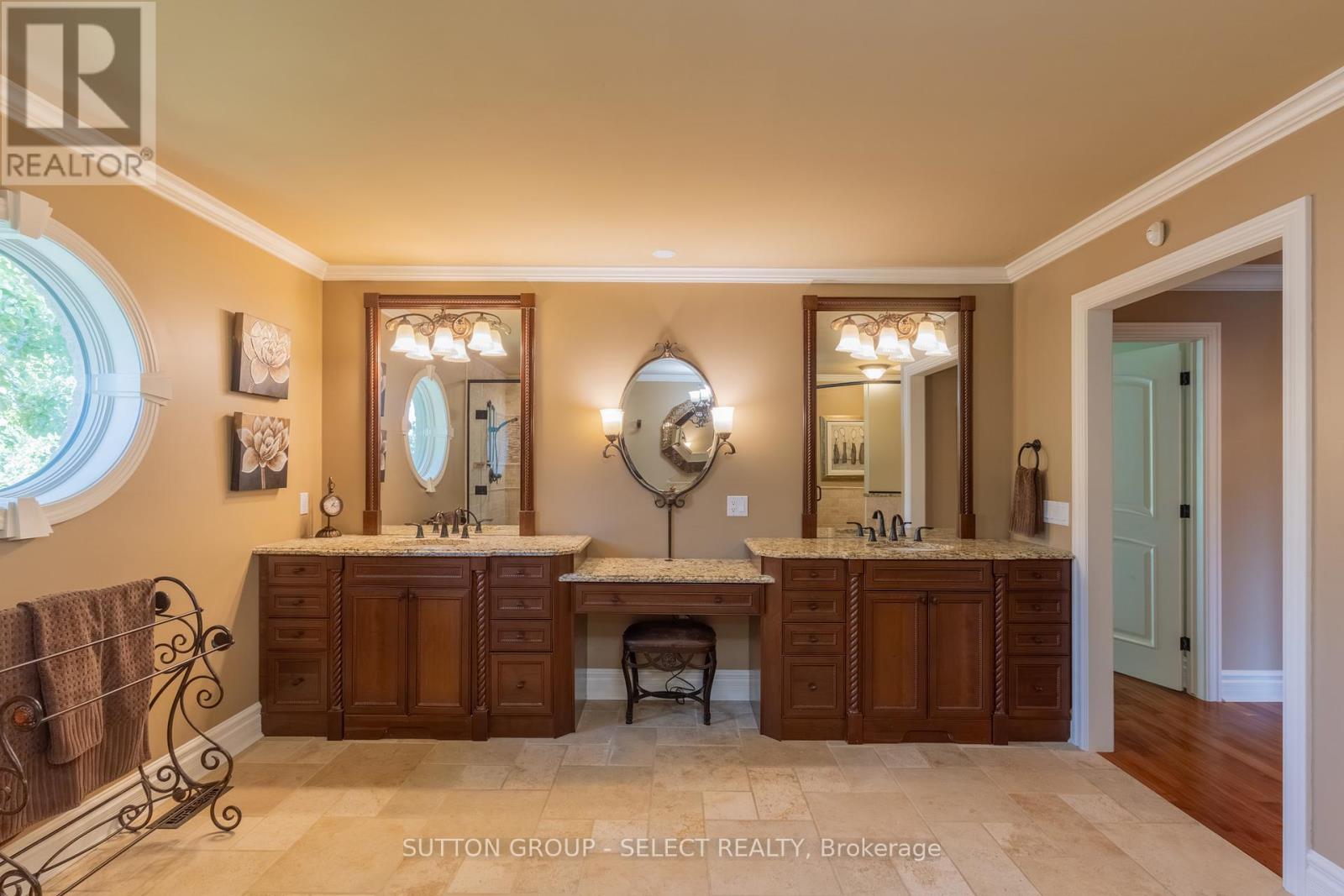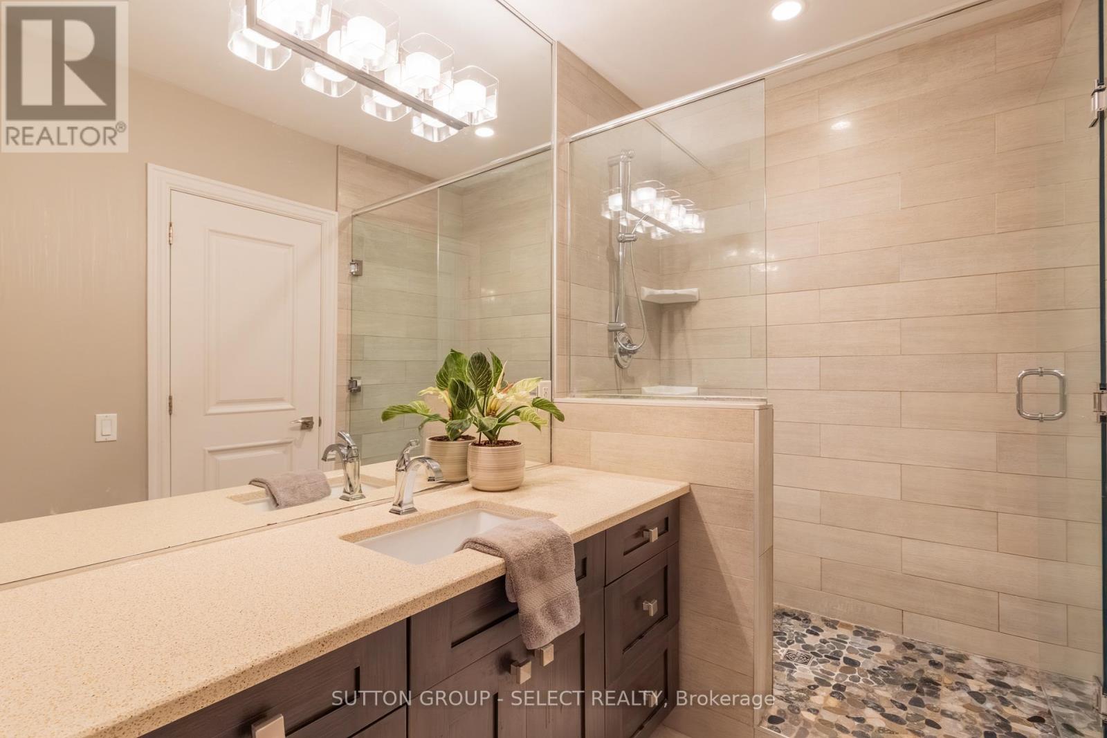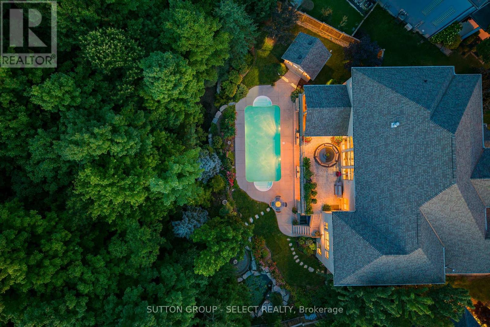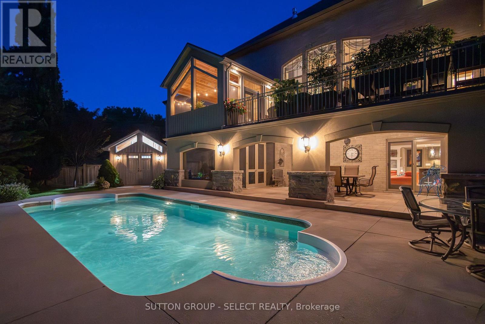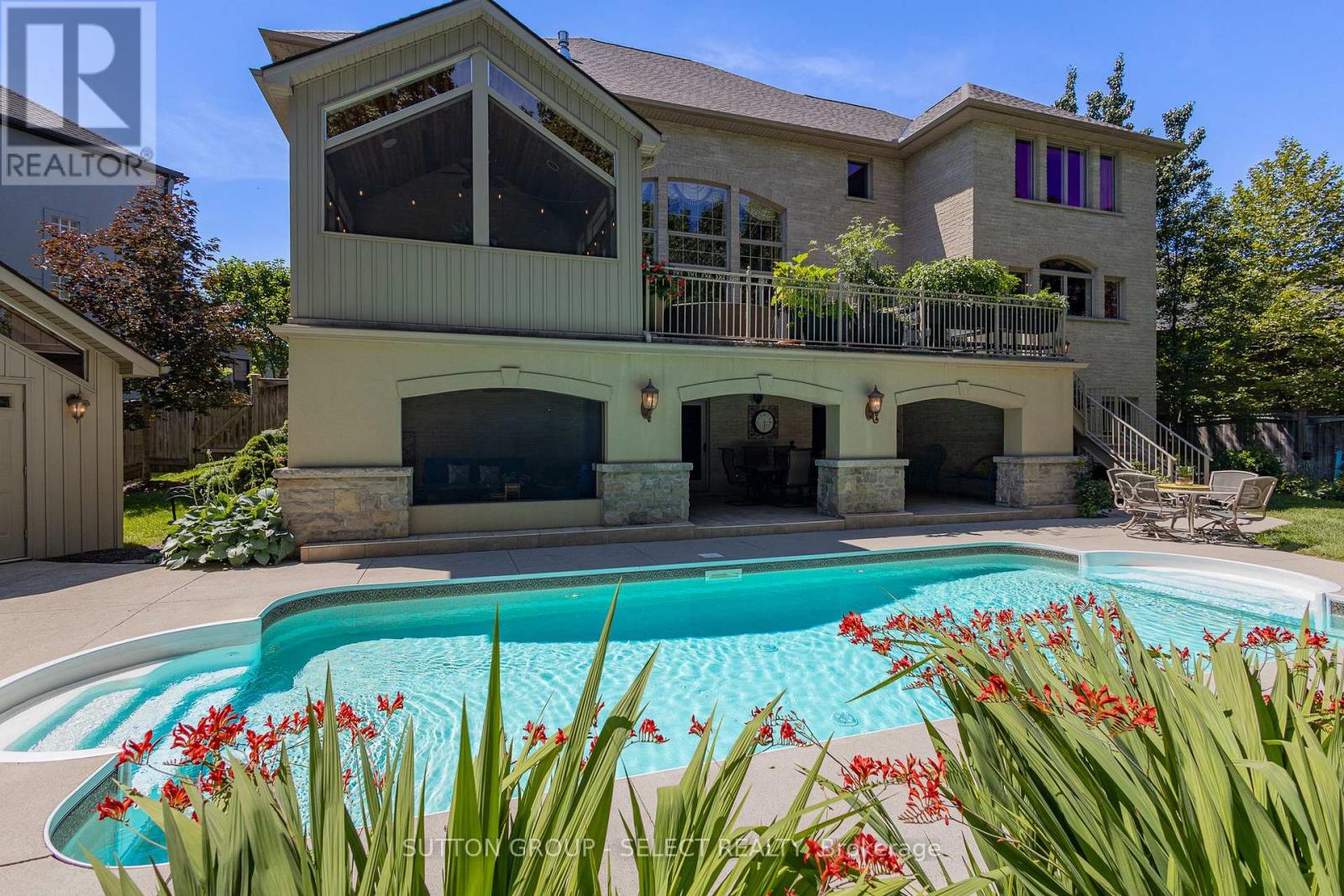 This 6,067 total sq. ft. European-inspired residence, thoughtfully designed by The Barnswallow Company, embodies timeless appeal, enduring craftsmanship, artistry, and refinement. Positioned at the top of Eagletrace Drive's prestigious cul-de-sac, this property enjoys the rare privilege of backing on Medway Valley Heritage Forest & ravine. The striking stone, stucco, and brick facade is complimented by a forecourt with manicured lush gardens and a sculptural water feature. The grounds unfold into a resort-style retreat with an in-ground saltwater pool, screened veranda, walkout partially screened loggia, raised terrace, serene waterfall, thriving pond, and an armour stone fire retreat, making this an extraordinary property to host. Inside, the main level exudes grandeur & warmth. The two-story great room is embellished with a cast stone gas fireplace, walnut hardwood floors, and expansive Andersen windows showcasing beautiful tree canopy views. Flow seamlessly into the expansive European-inspired kitchen, discovering embellished millwork, Cherry cabinetry, Sub-Zero fridge, Wolf, Bosch, and KitchenAid appliances, butlers pantry, kitchen pantry, breakfast nook, and a furniture style 7.4' Delicatus granite island. A formal dining room, sun-filled study, and family room with wet bar elevate the living experience. The upper level is crowned by an indulgent primary retreat - a serene, romantic sanctuary with sweeping treetop views, a lavish 6-piece ensuite with limestone, bidet & water closet, and a custom oversized dressing room with jewelry cabinetry. Three junior suites with custom closets, two with a shared 4-piece Jack & Jill, provide privacy & comfort. The lower level walkout was thoughtfully designed to bring together leisure and wellness with a recreation lounge, wet bar, sound-isolated music room, home gym with integrated sauna, craft/creative room & a thoughtfully designed in-law suite with kitchenette. Recent upgrades: Roof, furnace, AC, hot water tank-2023. (41774343)