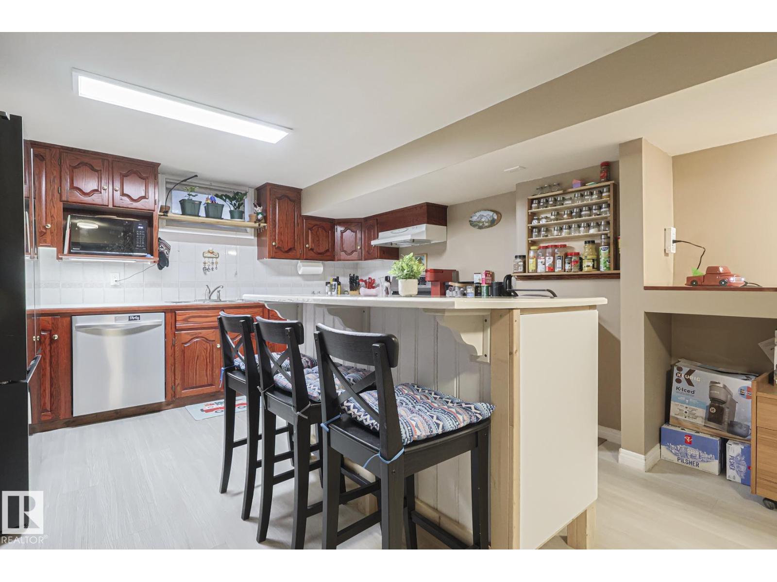 FANTASTIC LOCATION – BACKING THE PARK! This beautifully updated 5 bedroom, 3 bath bungalow with a SEPARATE ENTRANCE in family-friendly Tweedle Place sits on a large lot with direct access to walking trails—privacy and convenience in one! Enjoy peace of mind with numerous upgrades: new lighting, garage heater (2022), stamped concrete patio (2022) and a stunning main bath renovation (2023). Inside, rich hardwood floors lead to a warm, inviting living room with a large picture window and cozy corner wood stove. The elegant dining area flows into the bright, modern kitchen featuring quality cabinetry, island, new refrigerator and loads of workspace. FOUR main-floor bedrooms, 2 FULL BATHS UP (one being the en-suite in the primary). The fully finished basement adds incredible value with a second kitchen, huge island, large living room and updated bath—ideal for extended family or guests. Outside, enjoy a sunny SOUTH-facing yard, gazebo, 2 sheds and an oversized heated garage. A perfect family home—WELCOME HOME! (33636405)