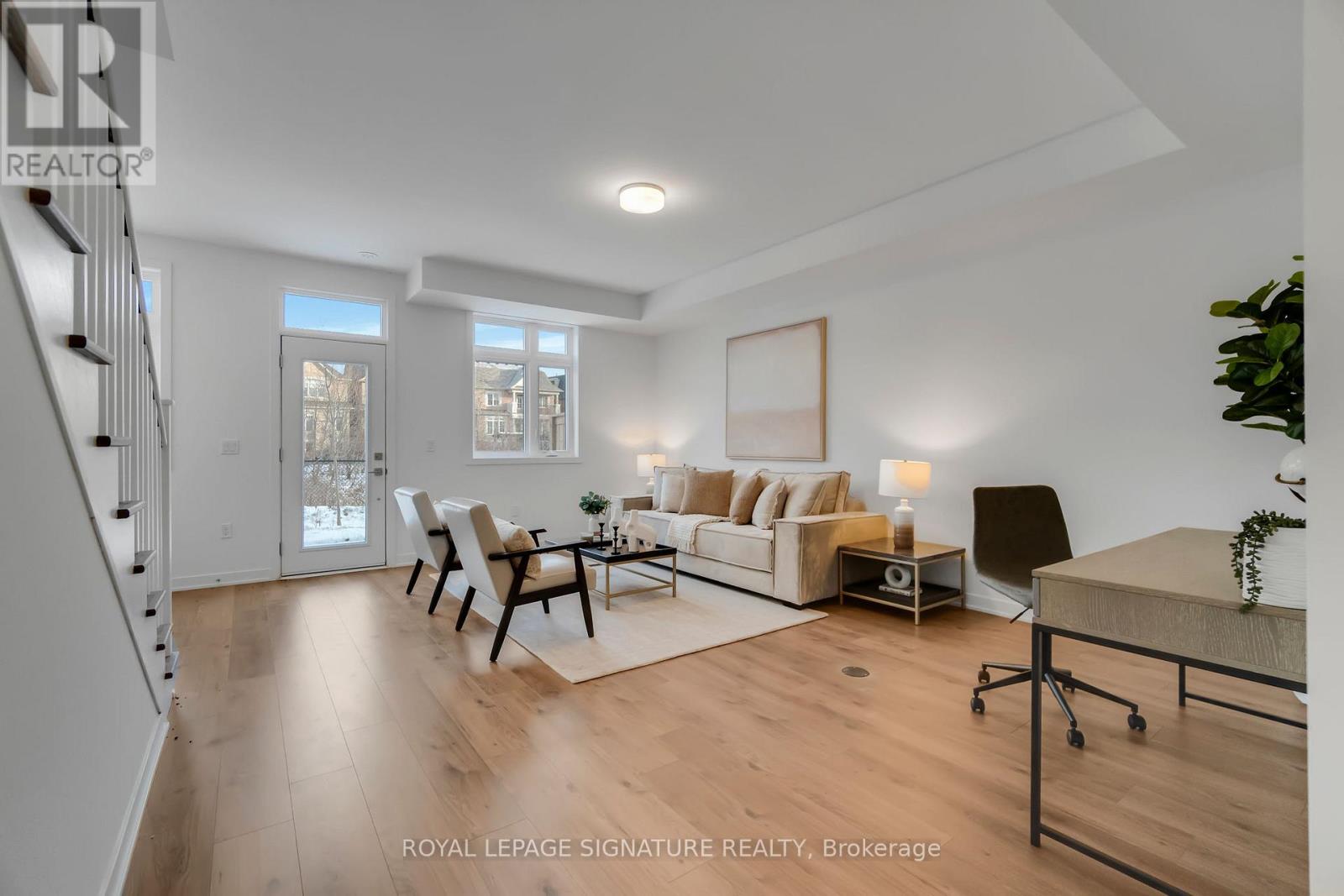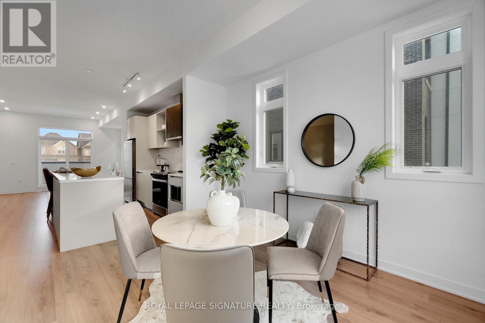 Brand New Freehold Townhouse End Unit Backing To A Ravine. Featuring 3 Bedrooms And 3Bathrooms.Laminate Flooring Throughout. Enter Into A Spacious Great Room On The Ground Floor. The Kitchen Is A Chef's Dream, Featuring A Breakfast Area, Modern Appliances, And Quartz Countertops And Backsplash , Along With A Separate Dining Space For Entertaining. Enjoy The Seamless Flow From The Living Room To A Walk-Out Terrace, Ideal For Relaxing. The Master Bedroom Boasts A Luxurious 4-Piece Ensuite And A Private Balcony, Providing A Serene Retreat. Surrounded by Fine Dining, Top Shopping Destinations, A Beautiful Shoreline, And Exceptional Public And Private Schools In The Gta. Conveniently Located Near Highways 407 And 403, GO Transit, And Regional Bus Stops. **EXTRAS** LED lighting throughout the home, Tankless Domestic Hot Water Heater, Stainless steel hood fan, Island with one side waterfall, One Gas connection for barbeque inthe back yard. One hosebibb in the back yard and in the Garage. (41775951)