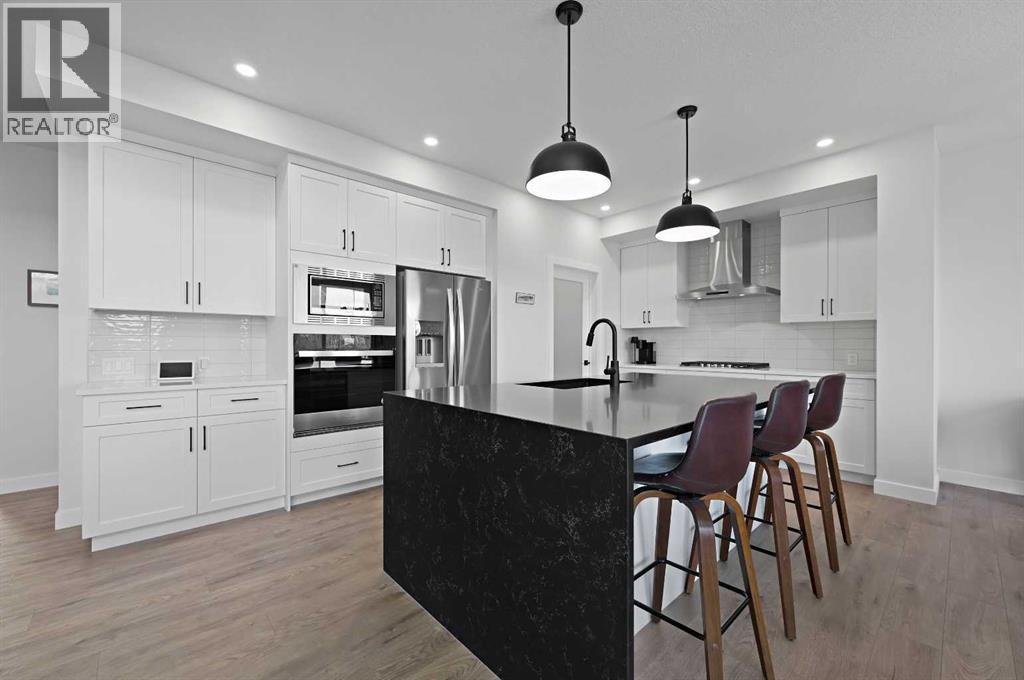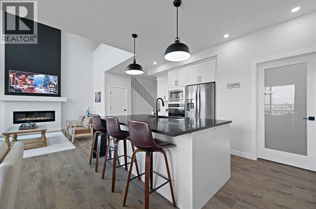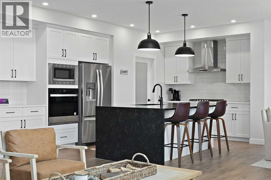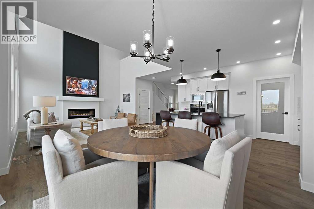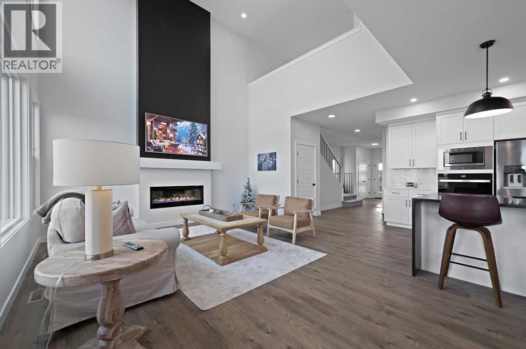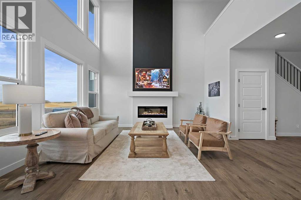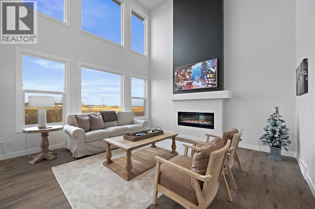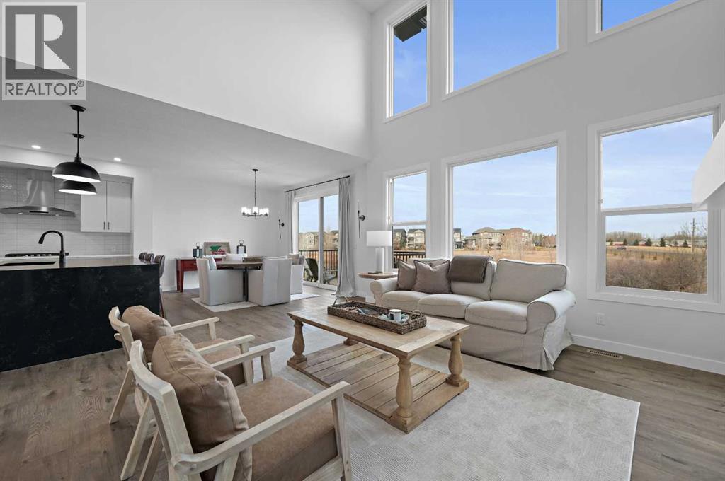 Welcome to 34 Ranchers View. This Sterling home was completed in early March 2025, boasting 4 bedrooms on the upper level which is a commodity nowadays, accompanied with 2 bathrooms and a half bath.Upon entry, first thing you will notice is the open space and natural light basking the home. From afar you could see the nature preserve the home backs onto. 9’ ceilings carry throughout the main floor opening up to an eye opening 18’4” high in the grand living room. Matching Stainless steel kitchen appliances for those mouth watering home cooked meals could be served on the big waterfall kitchen island. For Family gatherings, the open flow from the dining room to the living room creates the coziness everyones yearns in a home. Continue outside to the oversized deck in the backyard overlooking a pond and walking paths for serenity. No neighbours in the rear leaves for peace and privacy year round. Head upstairs to the Primary retreat with views of the nature preserve from your bedroom then bask in the spa like ensuite to end the day. This community is a close proximity to the crystal ridge golf club and your own private airstrip for the aviation enthusiasts. Surrounded by playgrounds and walking paths, do not miss out on this opportunity to attain one of Air Ranch’s best lot location with a great builder reputation behind the build. (31443215)