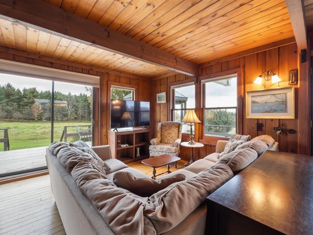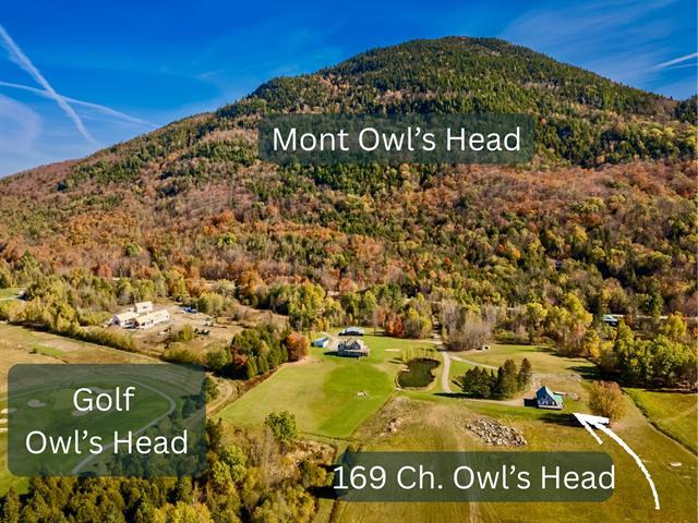 Exceptional property in Potton! Rustic and welcoming cottage located near Owl's Head Golf Course. Enjoy spectacular panoramic views of Vermont and the Sutton Mountains, with breathtaking sunsets on one side and Owl's Head Mountain on the other. A pond and large deck complete this enchanting setting. 3 bedrooms, 2 bathrooms. 15-acre lot, zoned for residential use. Opportunity to build the cottage of your dreams. Subject to change, it appears that two new lots could potentially be created on this property. The buyer must verify this information with Potton. (54486541)