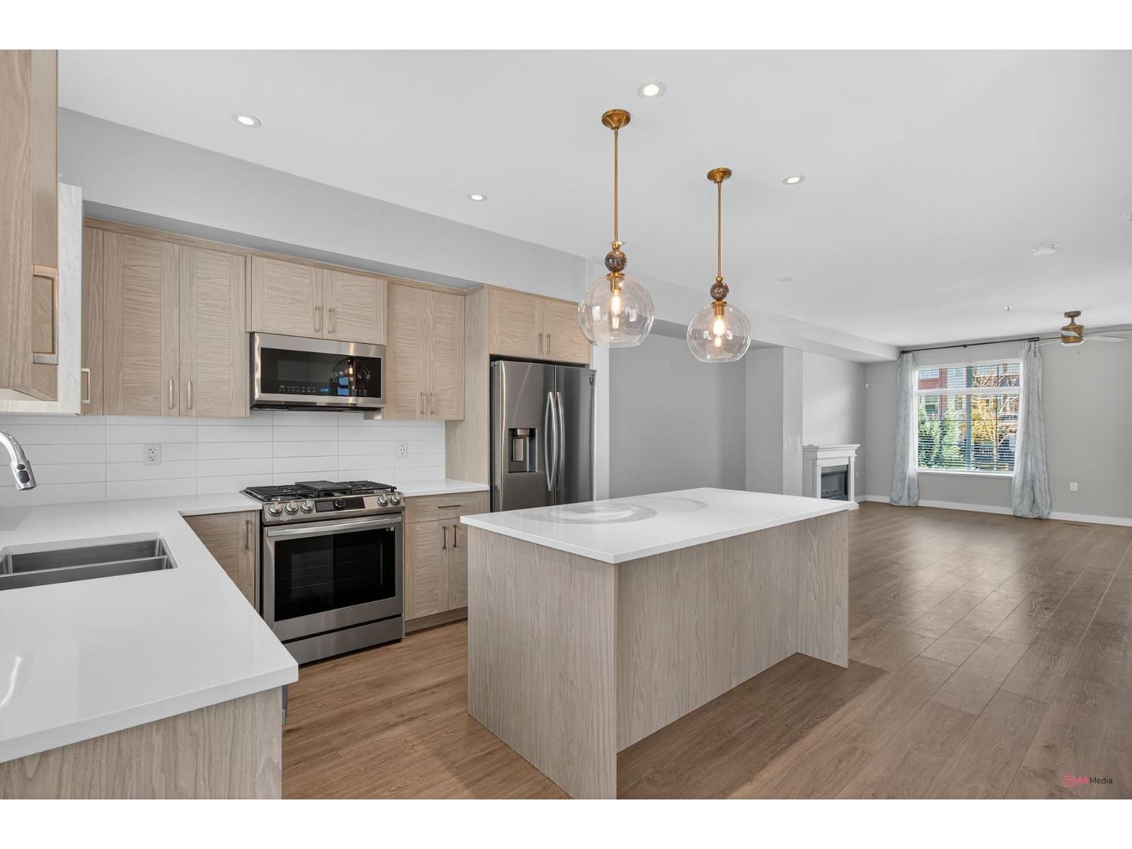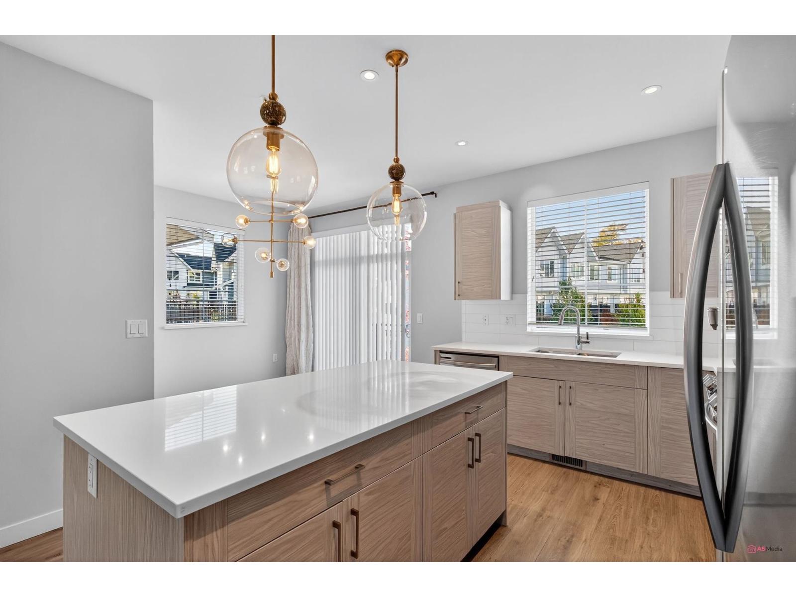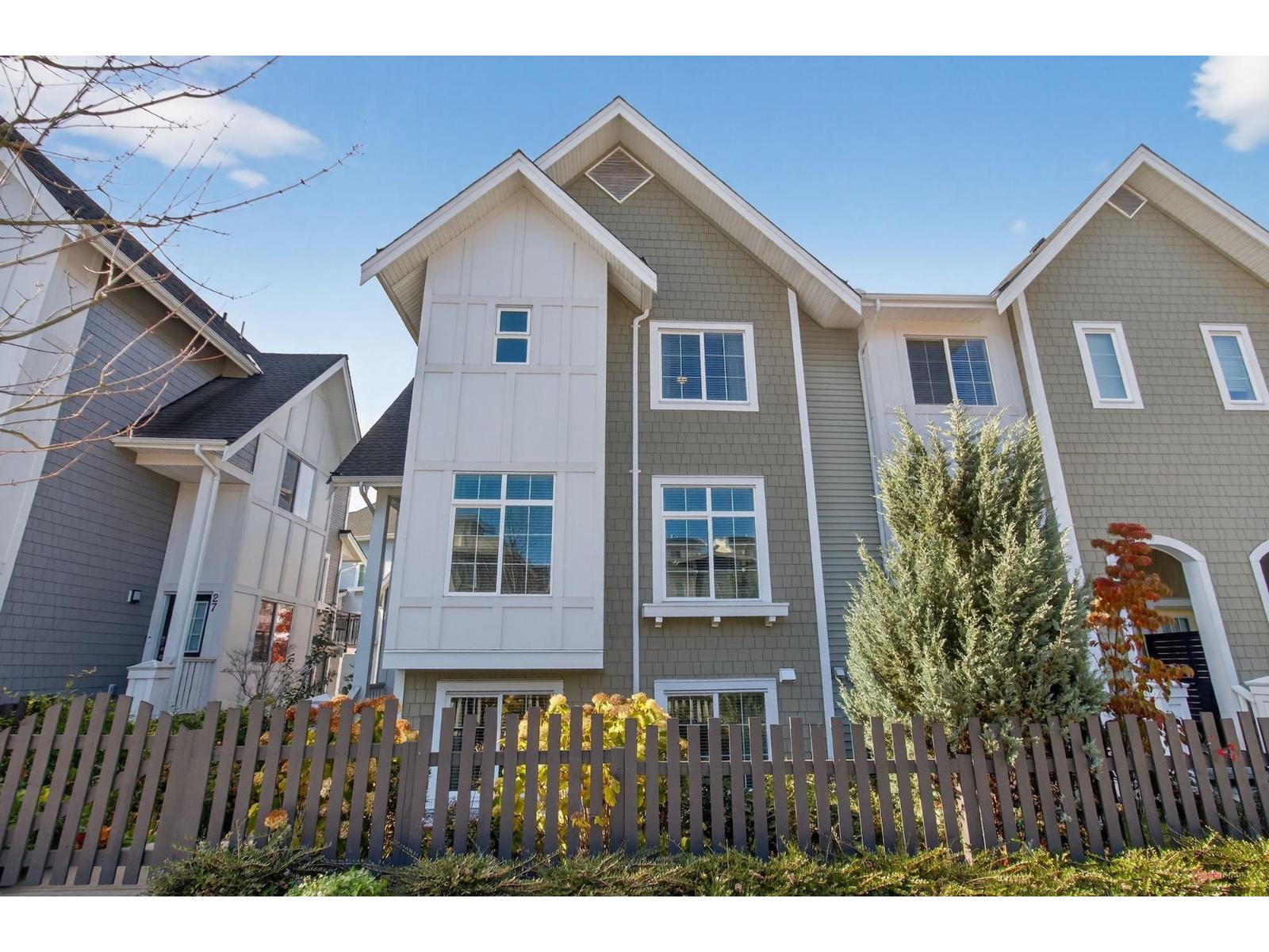 Experience modern living in this elegant 1,866 sq.ft. 3-level end-unit townhouse in desirable Willoughby. Bright and spacious, it offers 3 bedrooms, 3.5 baths, 9' ceilings, oversized windows, and natural gas forced-air heating. The main level features an open living/dining area and modern kitchen with premium finishes. Upstairs includes two bedrooms plus a luxurious primary suite with walk-in closet and ensuite. The lower level provides a flex space with full bath - ideal for an office, family room, or guest suite. AC unit (rear right) rented from Reliance. Close to top schools, parks, shops, and transit. This home has it all. Call now for private show! (32241821)