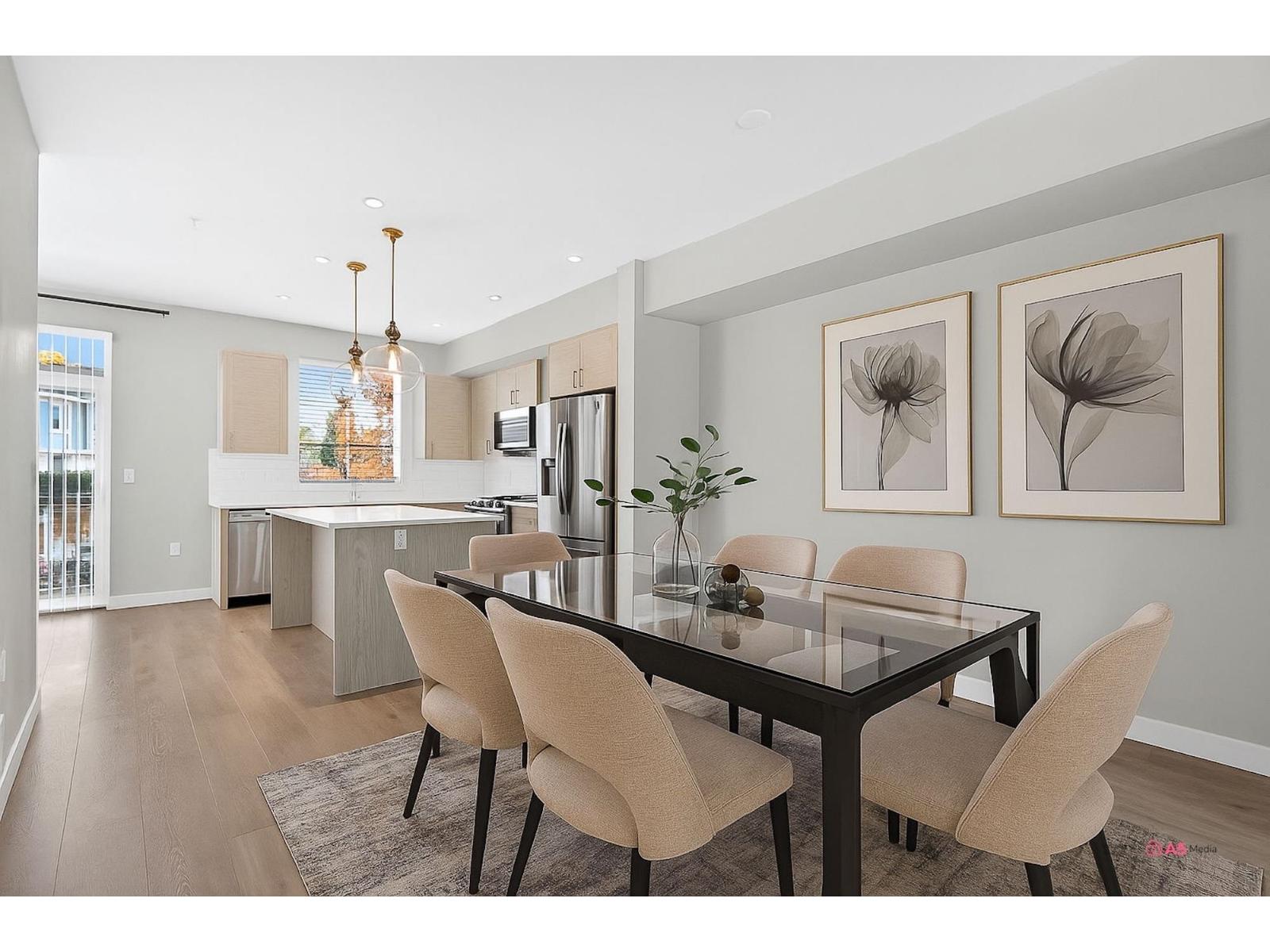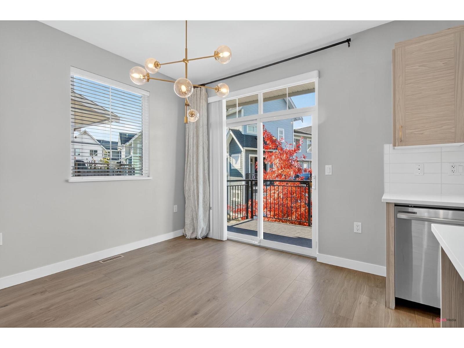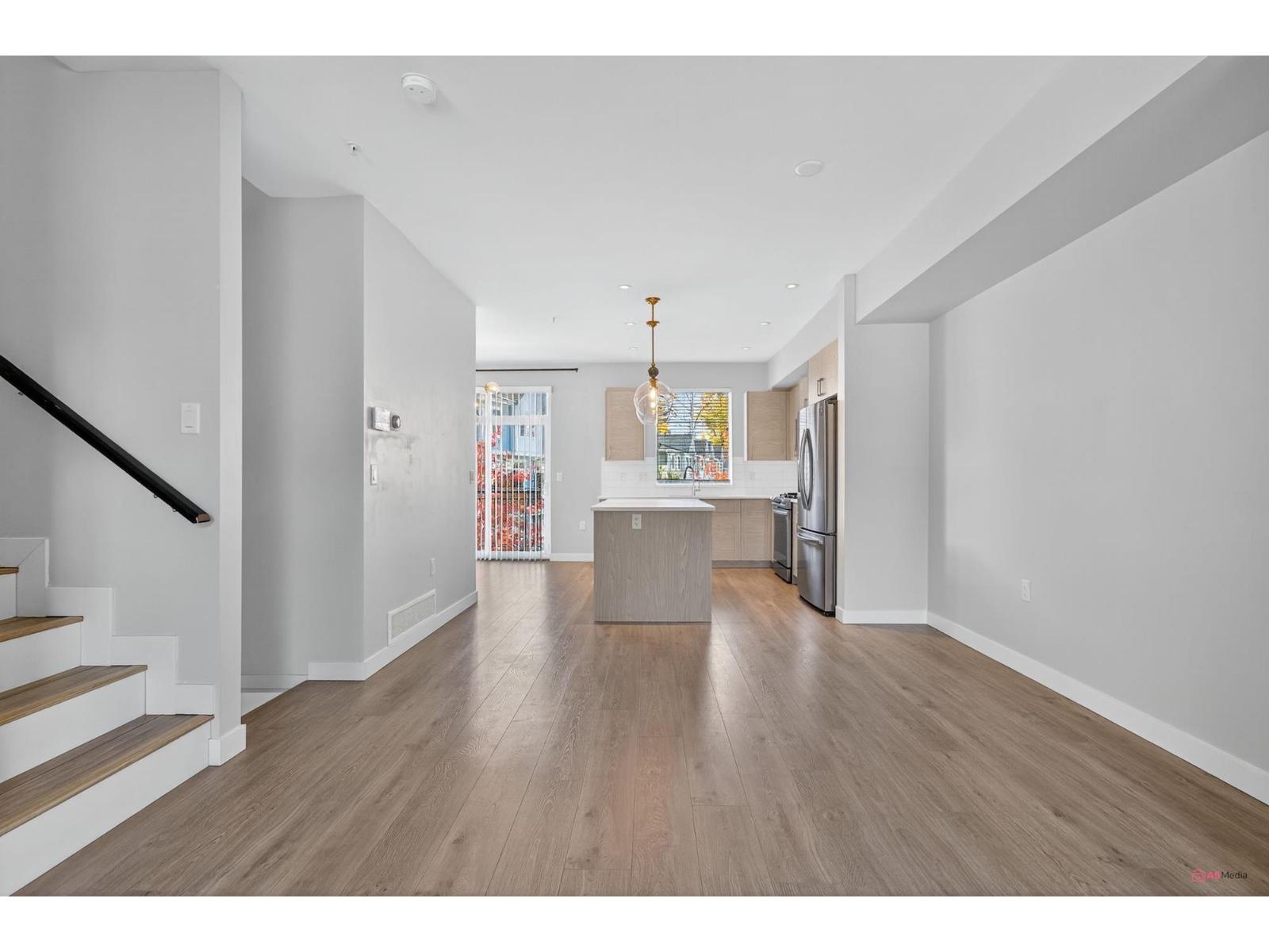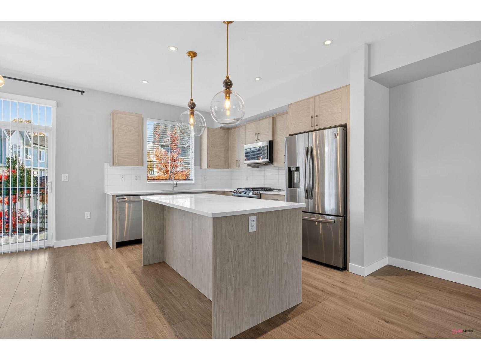 Experience modern living in this elegant 1,866 sq.ft. 3-level end-unit townhouse in desirable Willoughby. Bright and spacious, it offers 3 bedrooms, 3.5 baths, 9' ceilings, oversized windows, and natural gas forced-air heating. The main level features an open living/dining area and modern kitchen with premium finishes. Upstairs includes two bedrooms plus a luxurious primary suite with walk-in closet and ensuite. The lower level provides a flex space with full bath - ideal for an office, family room, or guest suite. AC unit (rear right) rented from Reliance. Close to top schools, parks, shops, and transit. This home has it all. Call now for private show! (32241821)